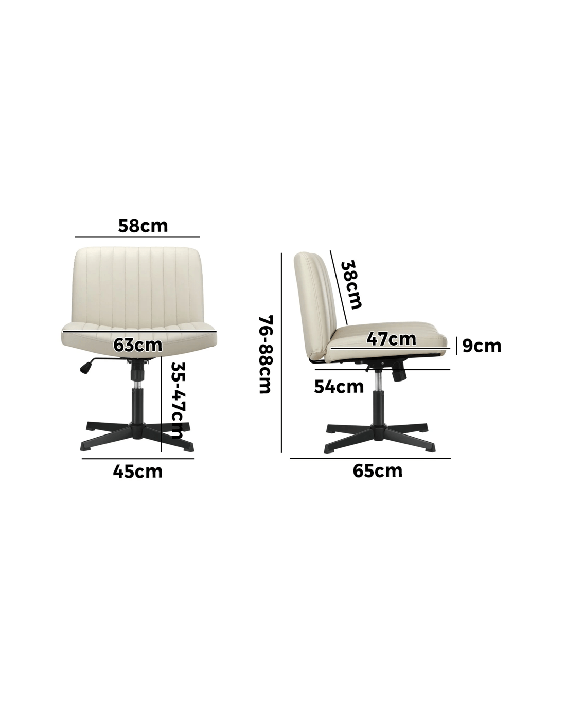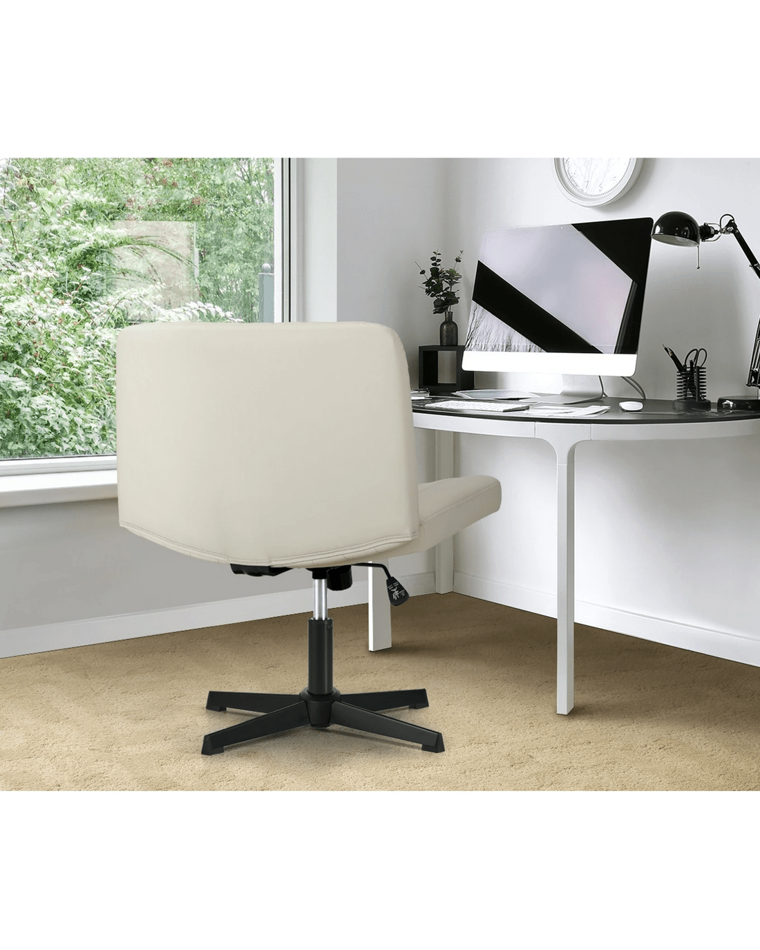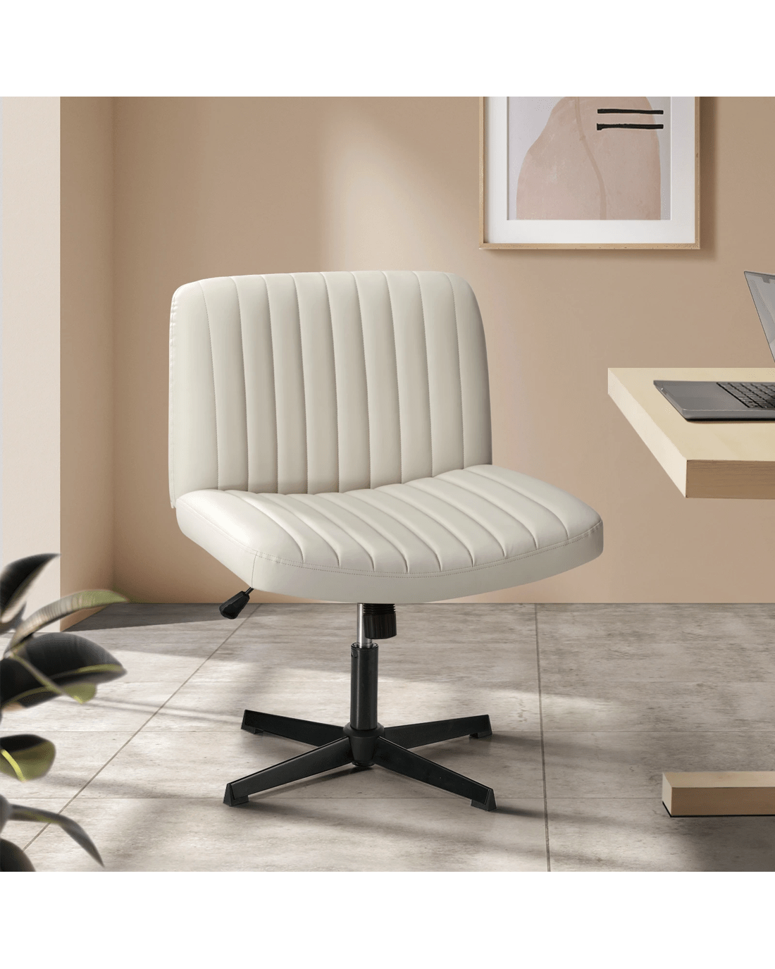 Oikiture Mid Back Armless Office Desk Chair Wide Seat Faux Leather - Beige