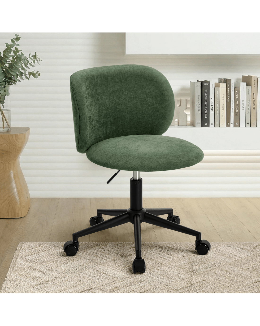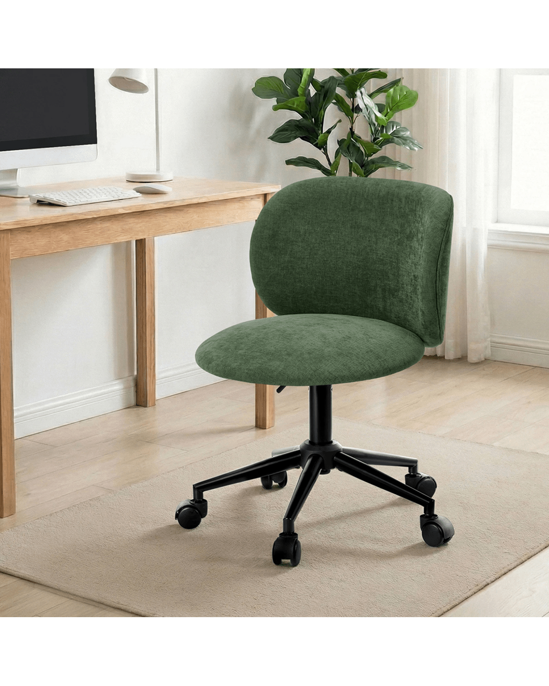 Oikiture Office Chair Swivel Armless Mid Back Ergonomic Chair Wheels - Green