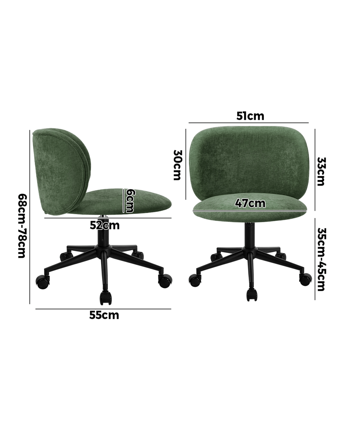 Upholstered in plush polyester linen fabric for both the seat and backrest, the office chair exudes supreme comfort with style. The contoured backrest design also ensures a better sitting experience all the time. Plus, the armless design allows the office chair to adapt to various spatial layouts, and it can be fully tucked under the desk to save more floor space.