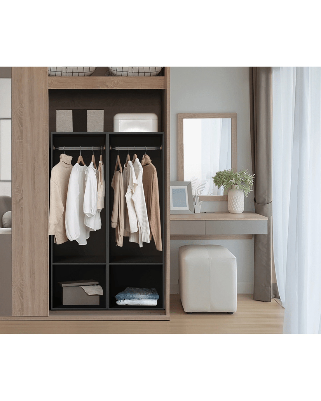 Investing in Oikiture built-in wardrobe unit is a smart choice for those who are looking for a durable, functional and stylish storage solution that will add value and convenience to their home. Upgrade your storage space with our built-in wardrobe unit today!