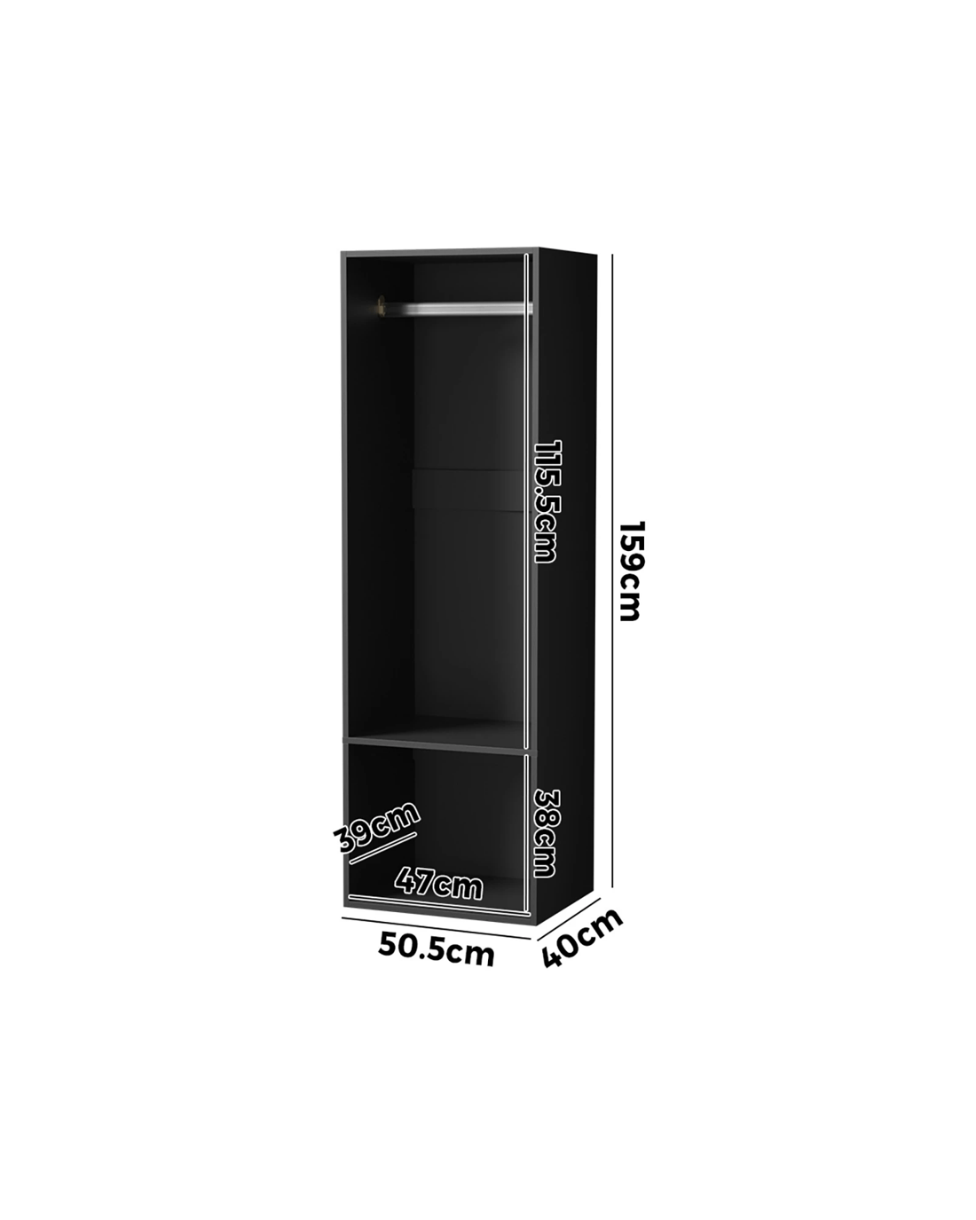 - 50.5cm x 40cm x 159cm
