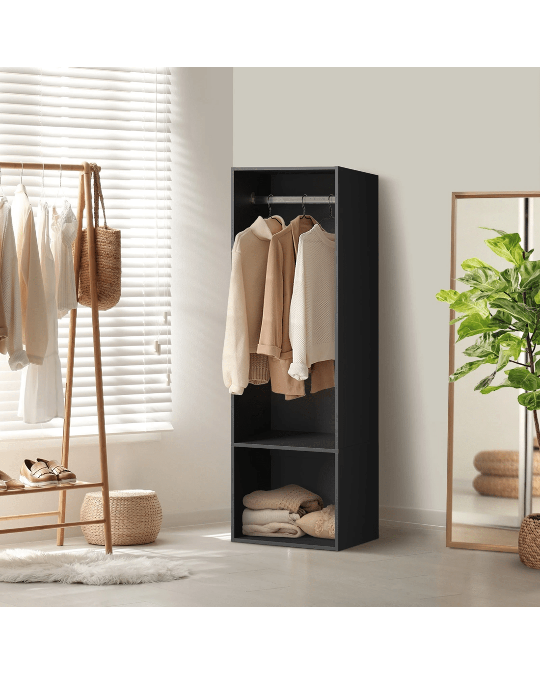 Sold by Kamprad's Oikos 1943Oikiture Open Wardrobe Shelf Unit Clothes Storage 2 Shelves Hanging Rail - Black