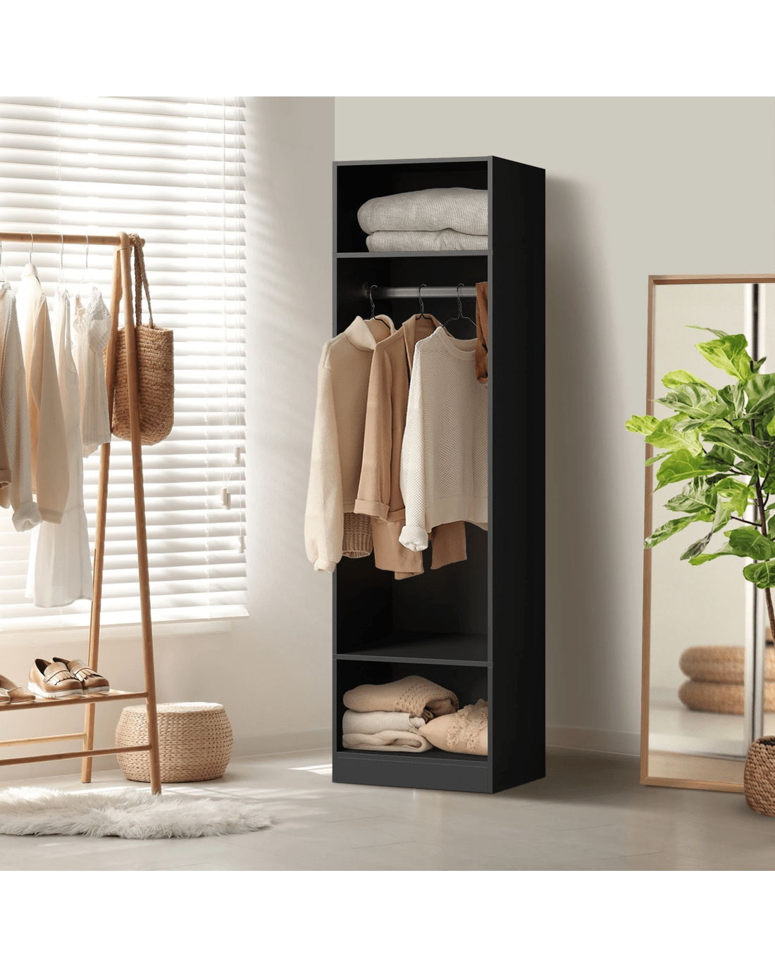 Sold by Kamprad's Oikos 1943Oikiture Open Wardrobe Shelf Unit Clothes Storage 3 Shelves Hanging Rail - Black