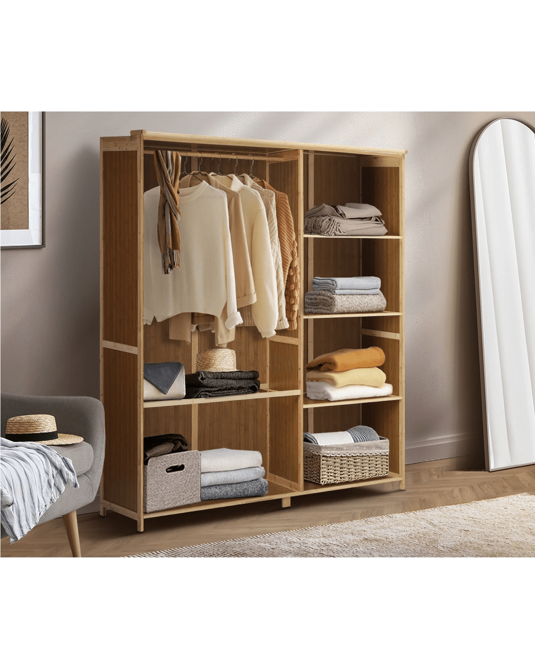Looking for a wardrobe with some natural vibes? Then you have to fix your eyes on the Oikiture Bamboo Wardrobe. Crafted from responsibly sourced bamboo, this wardrobe represents eco-conscious living and style. Aesthetically pleasing and naturally calming.