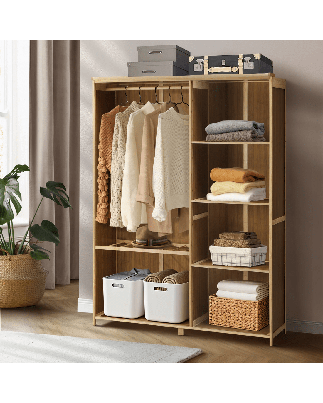And never again do you have to turn the wardrobe inside out to find that favourite piece of clothing. Its open concept means that everything is in plain sight. And the included dust-proof cloth curtain certainly comes in handy in keeping thing more private and out of sight when necessary.