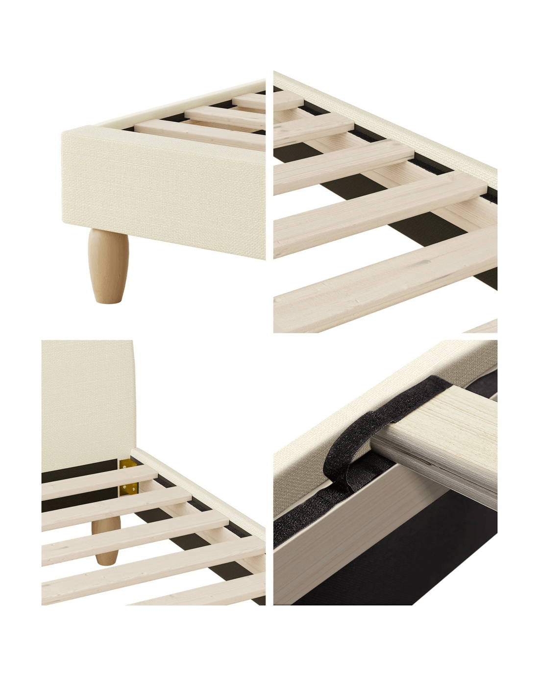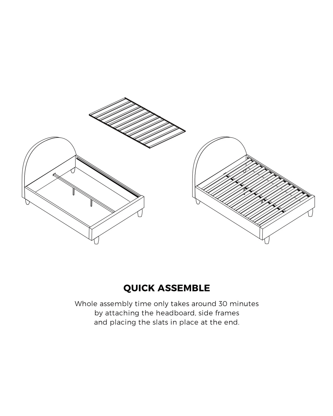 Finished in distinct fabric appearance, the bedhead and frame are fitted with premium material that is gentle to touch. You can lean against the headboard and feel the foam cushioned while reading a book or watching TV on your bed.