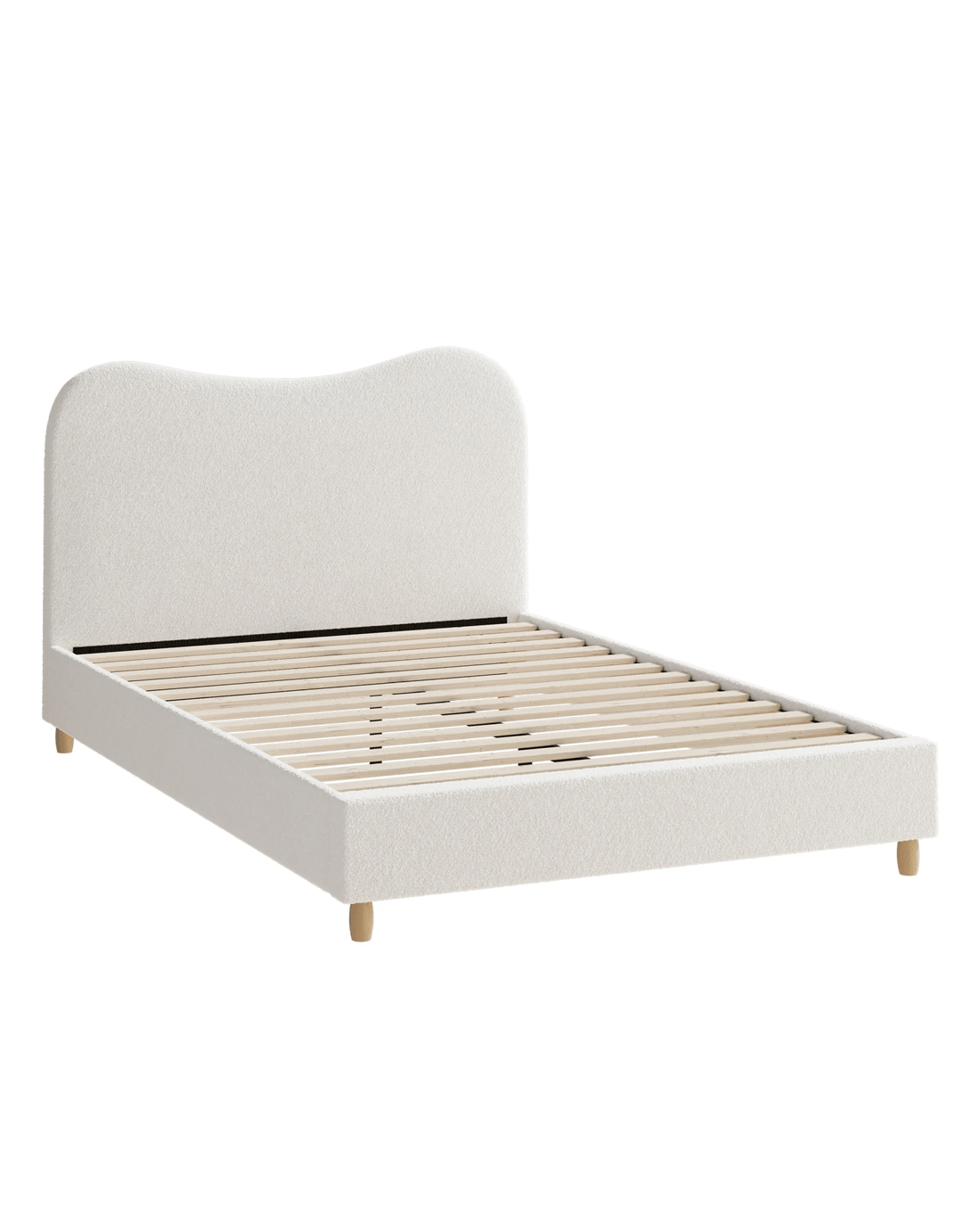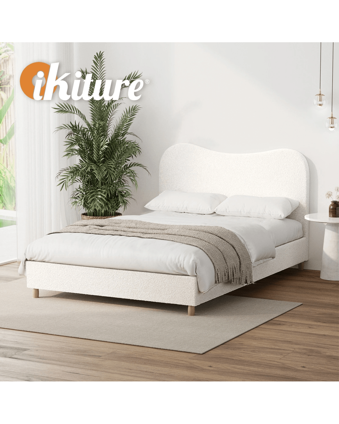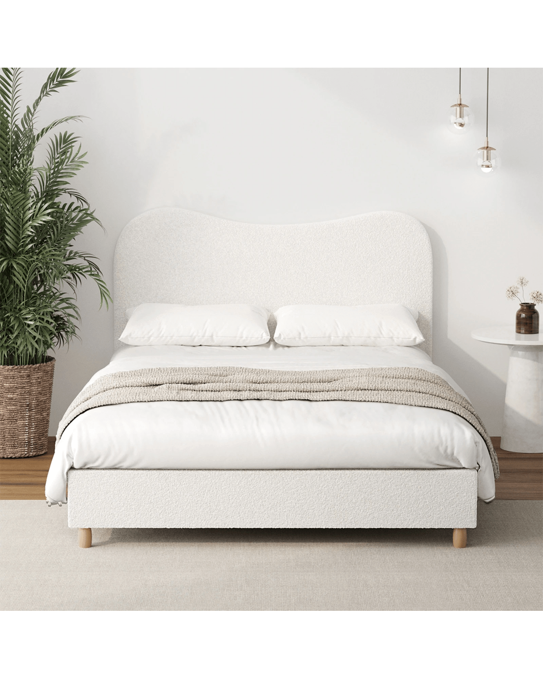 Sold by Kamprad's Oikos 1943Oikiture Queen Bed Frame Boucle Cloud Shape Headboard - White