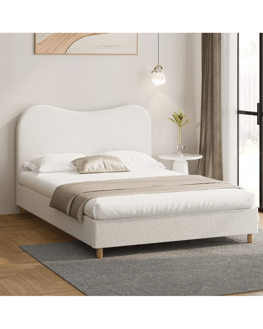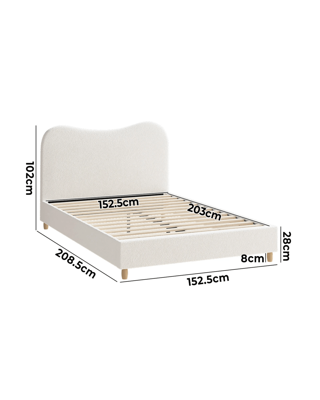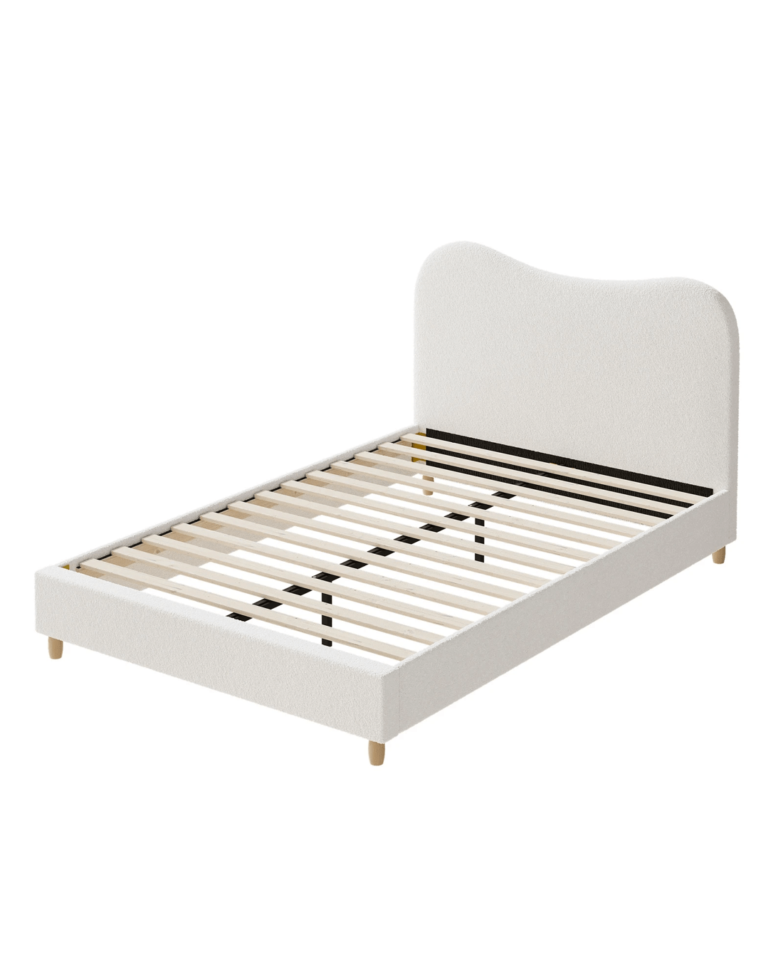 Sold by Kamprad's Oikos 1943Oikiture Queen Bed Frame Boucle Cloud Shape Headboard - White