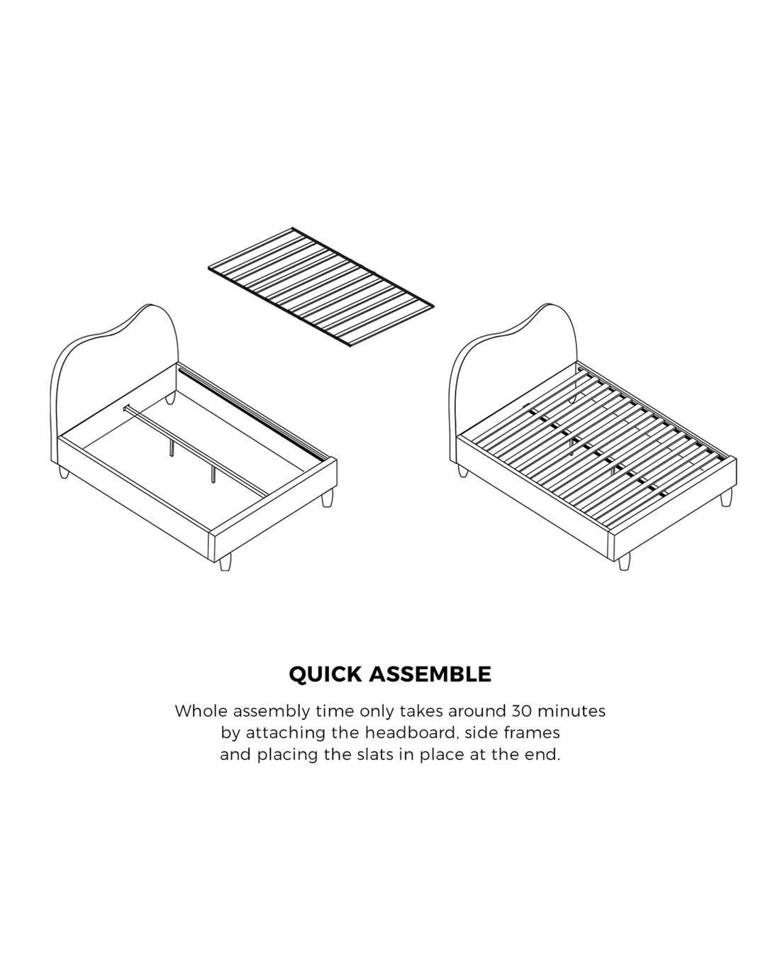 Crafted with precision and durability in mind, the sturdy construction of the Boucle Bed Frame ensures a solid foundation for restful nights. This bed frame is not just a stylish addition but a reliable source of support, promising both longevity and a sense of security.