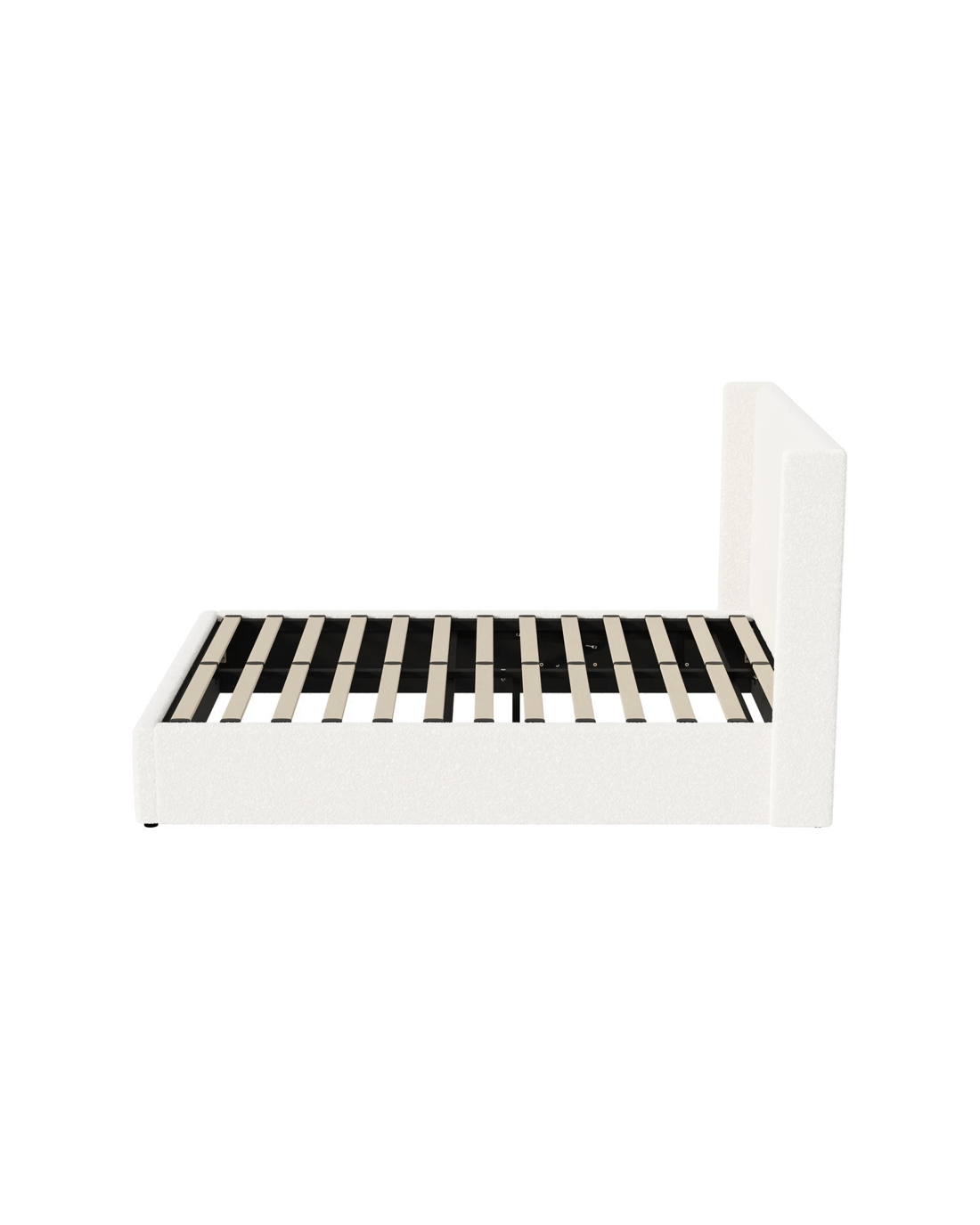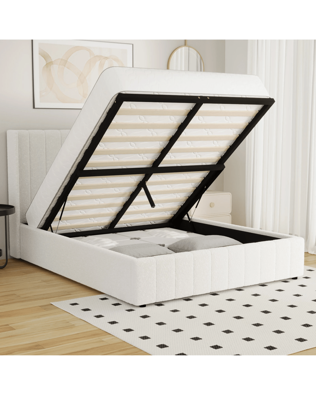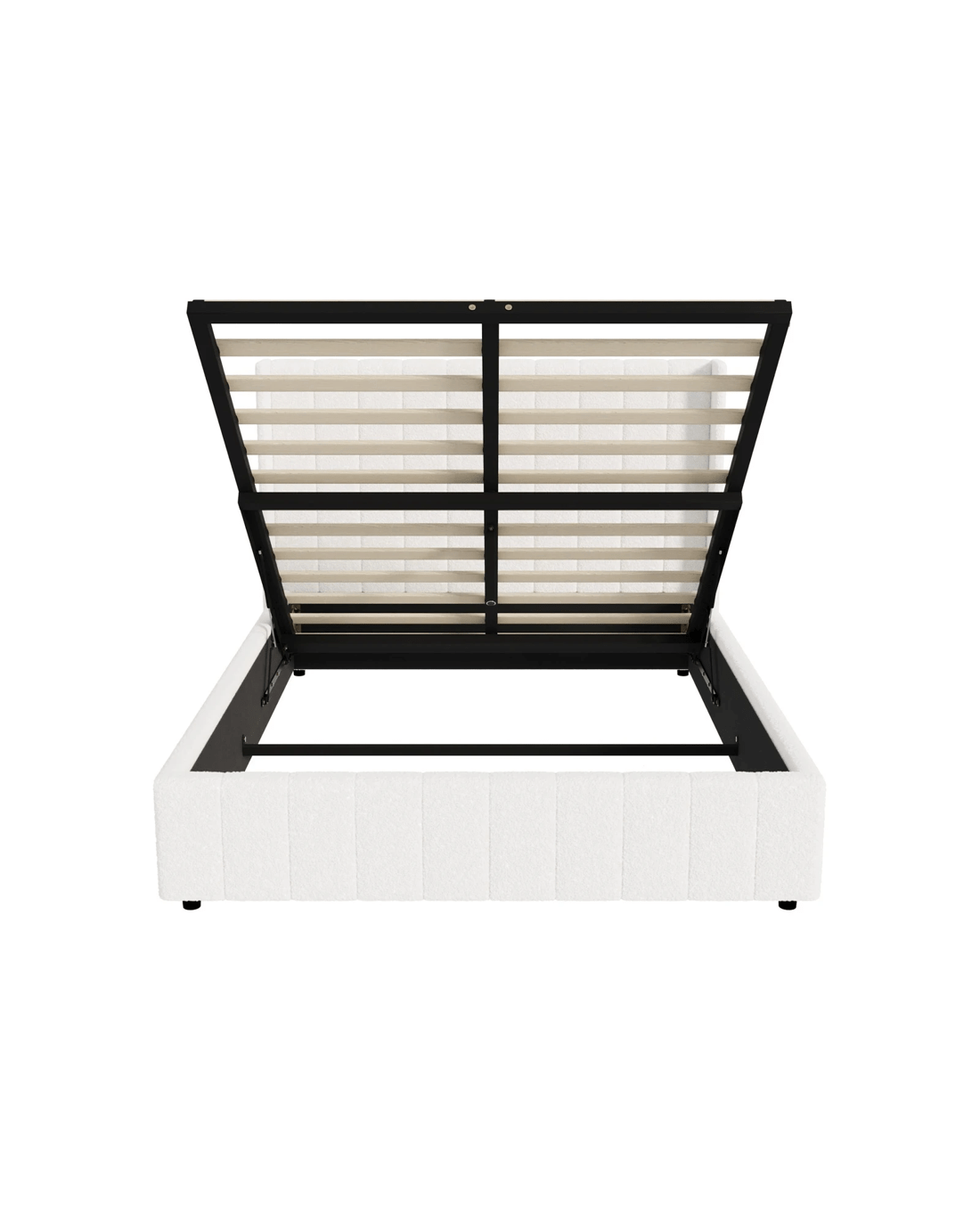 Sold by Kamprad's Oikos 1943Oikiture Queen Bed Frame Gas Lift Base With Storage Boucle Fabric - White