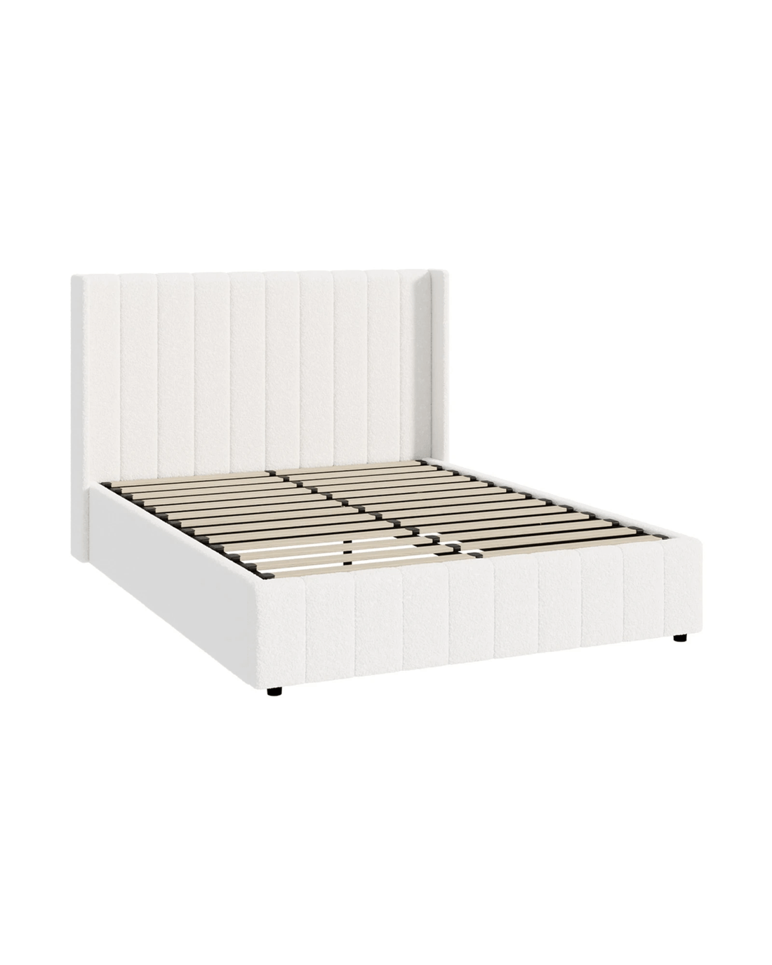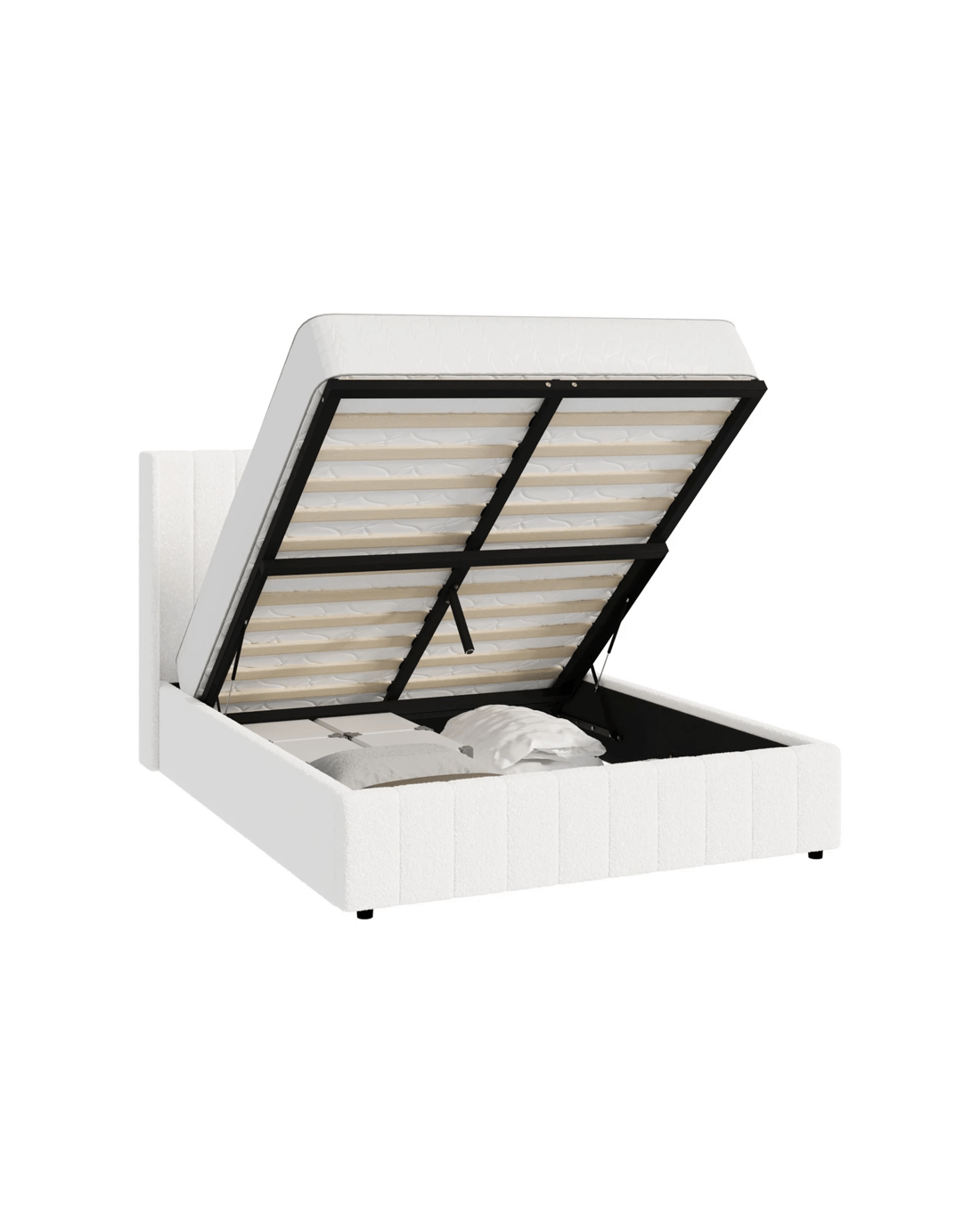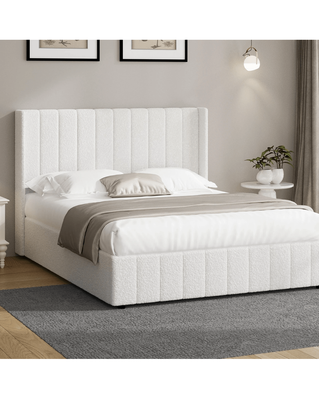 Sold by Kamprad's Oikos 1943Oikiture Queen Bed Frame Gas Lift Base With Storage Boucle Fabric - White