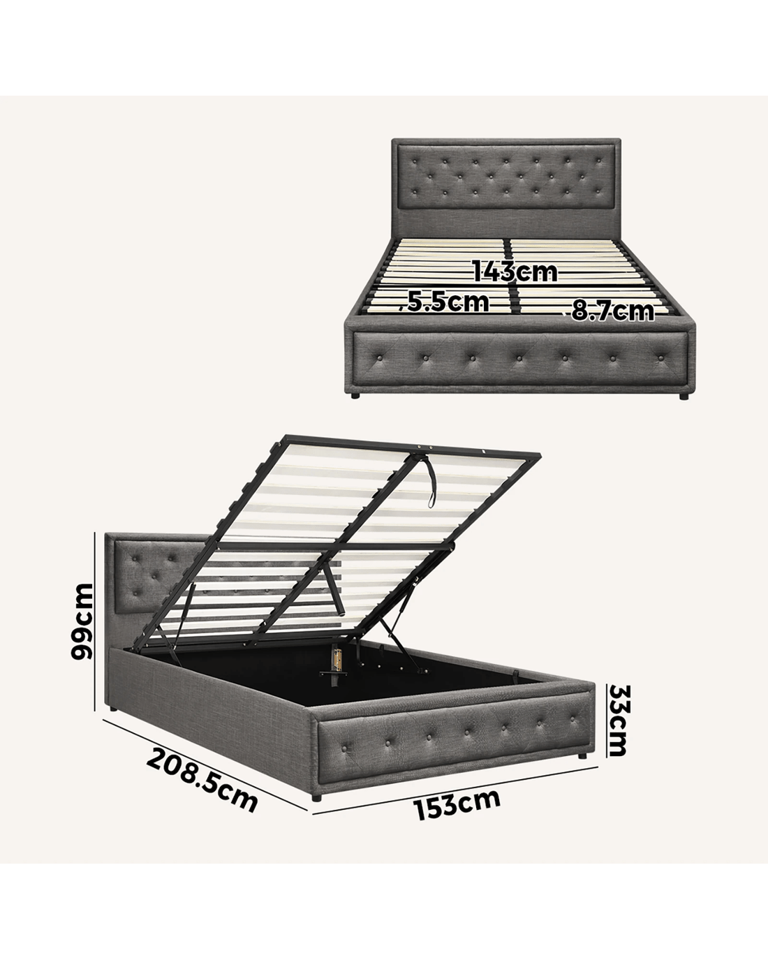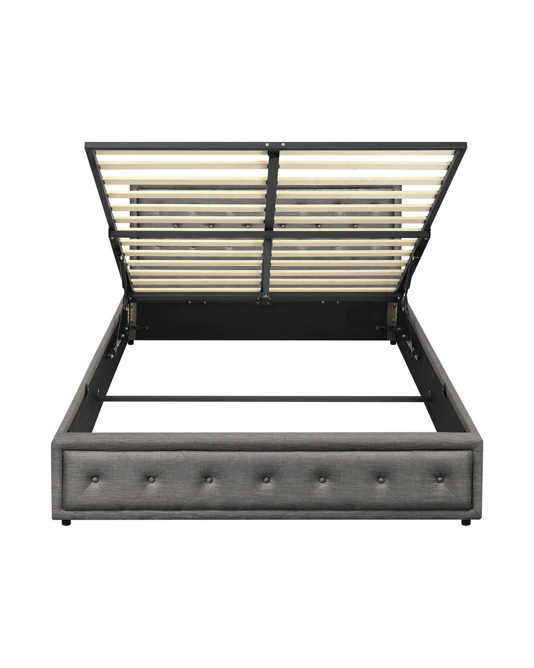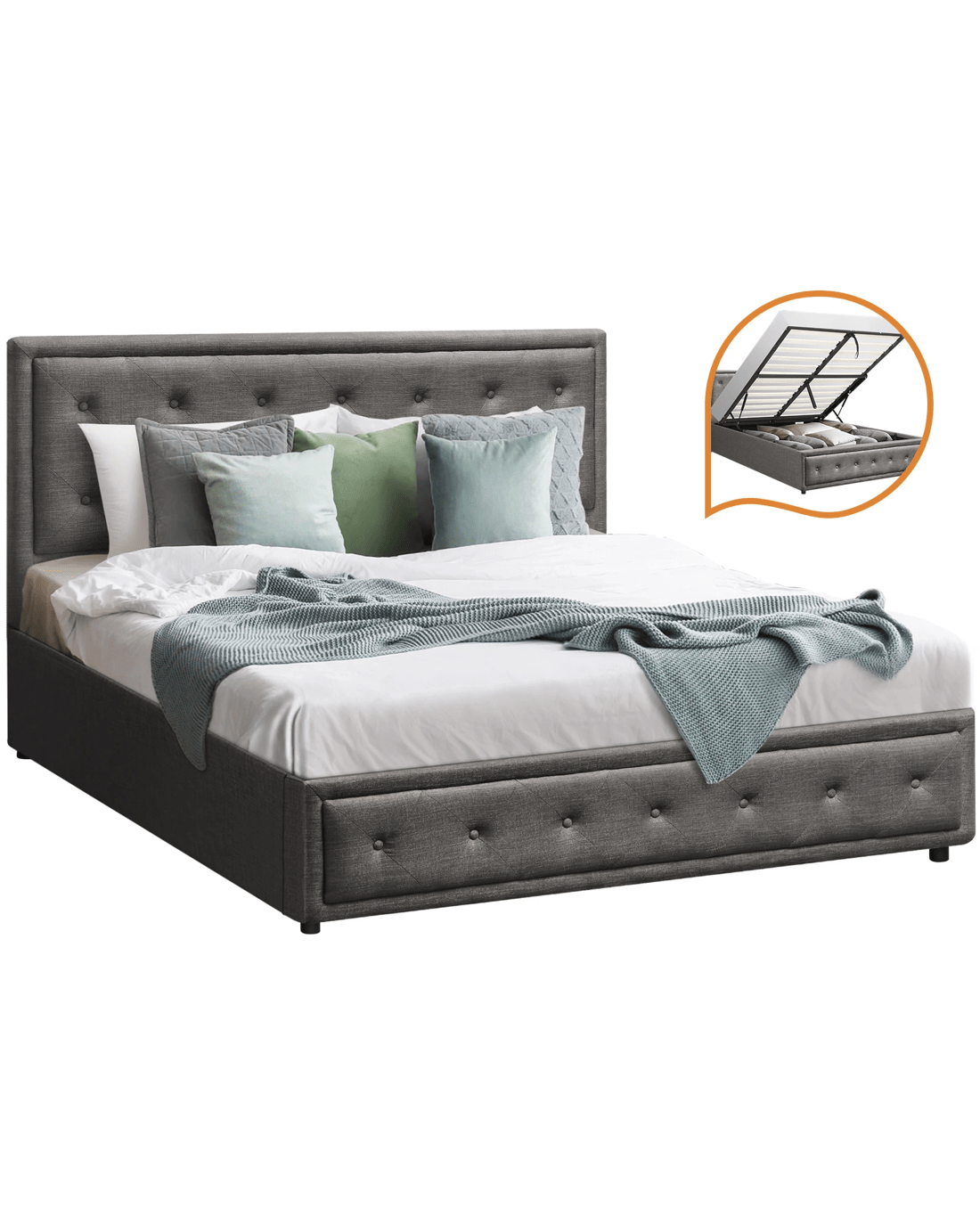 Sold by Kamprad's Oikos 1943Oikiture Queen Bed Frame Gas Lift Base With Storage Enzo - Grey