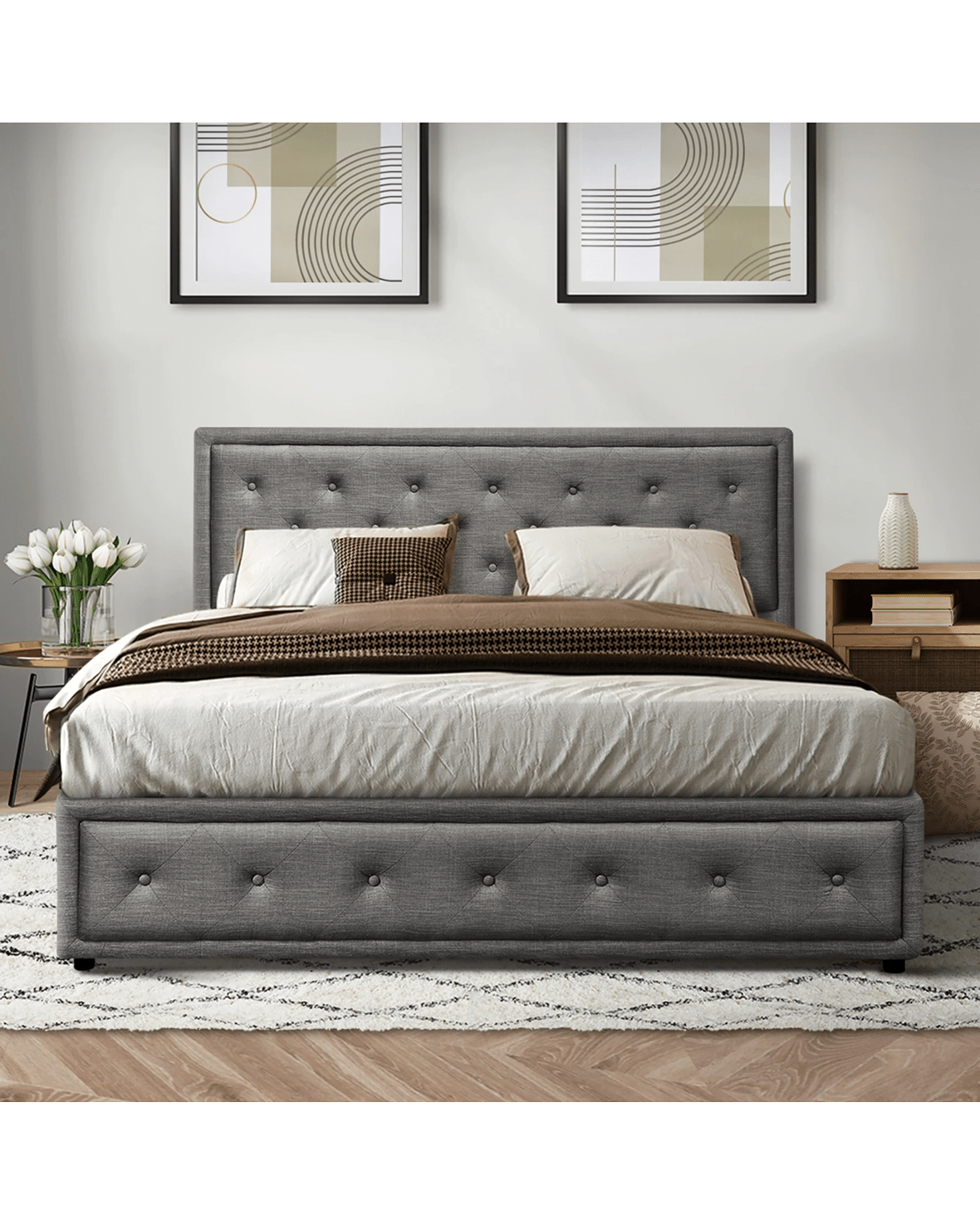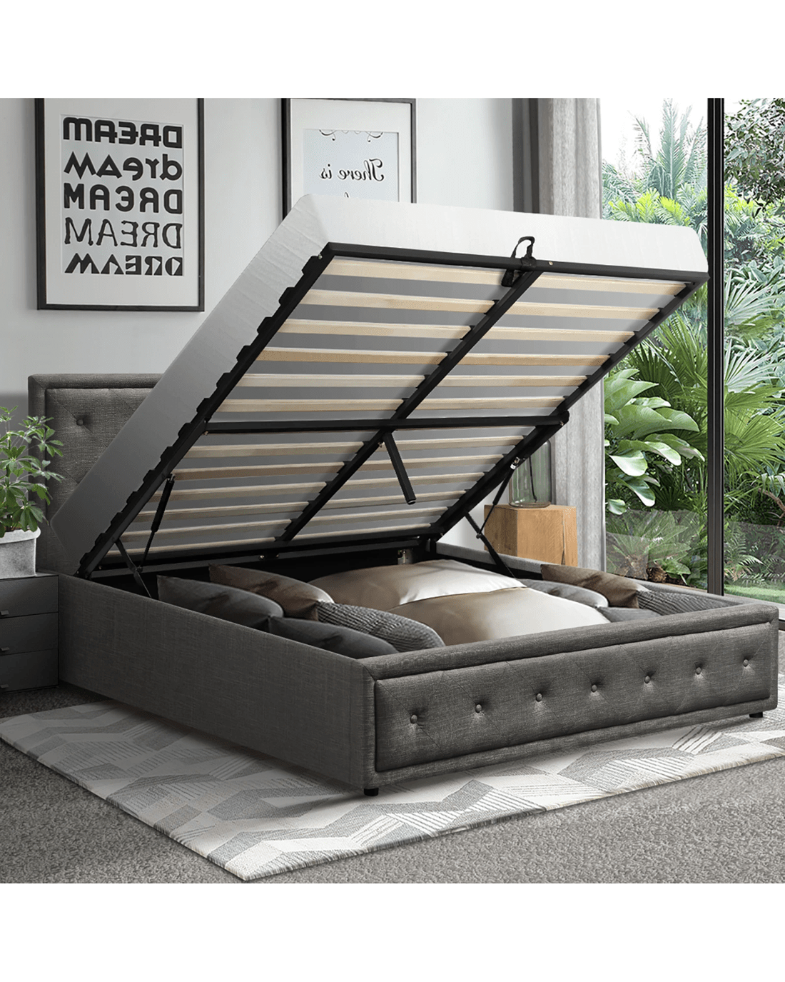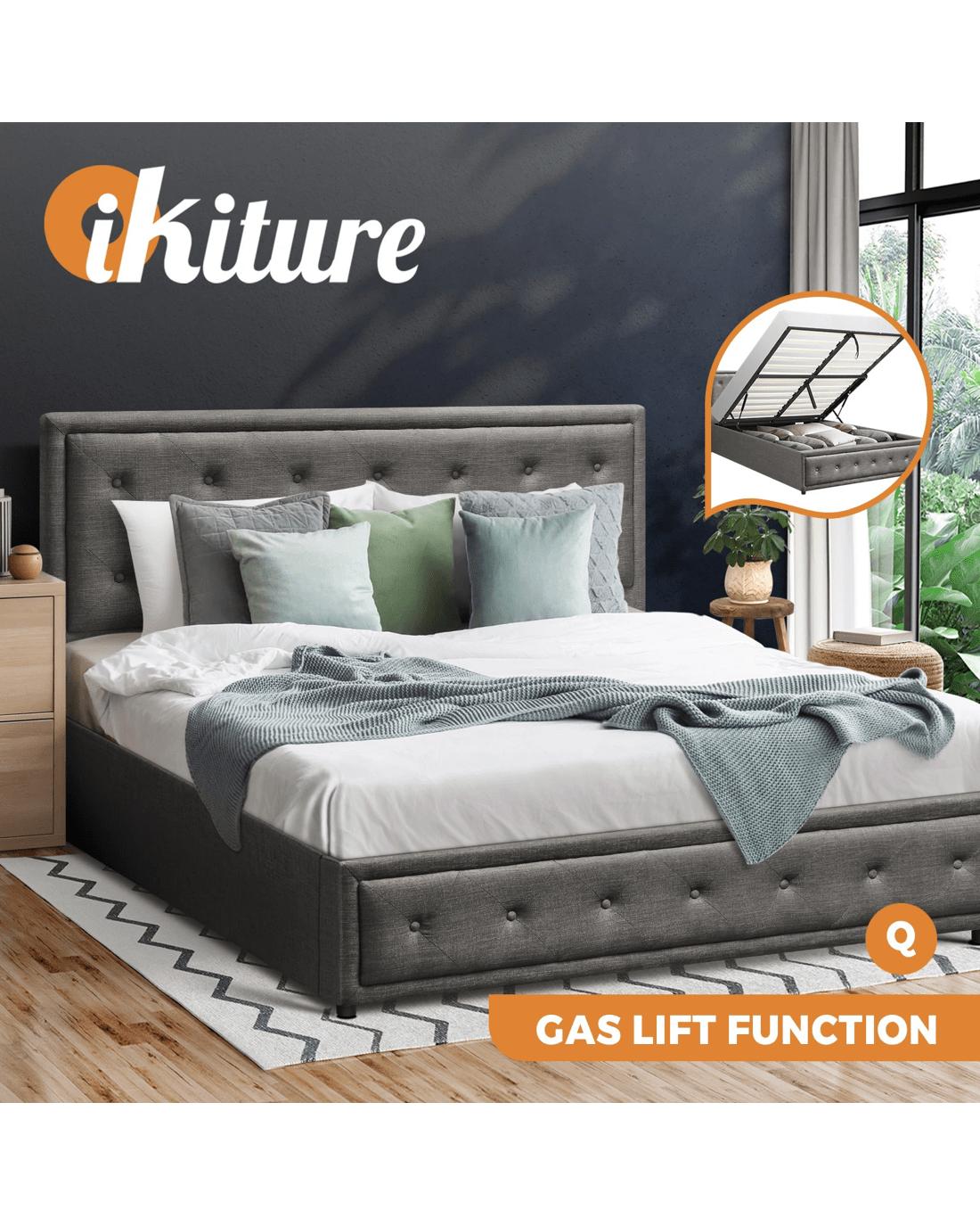 Get the ultimate space saver with Oikiture Gas Lift Bed Frame that is a contemporary and classic piece that gives you room an instant lift of elegance and style. Upholstered with premium fabric and great attention to detail, it's going for the perfect designer look.