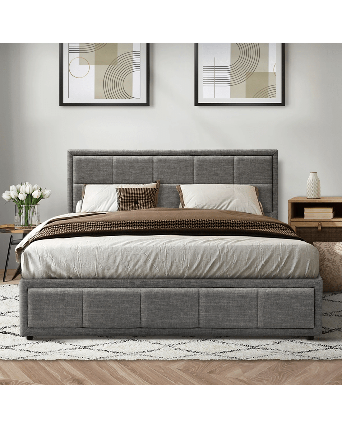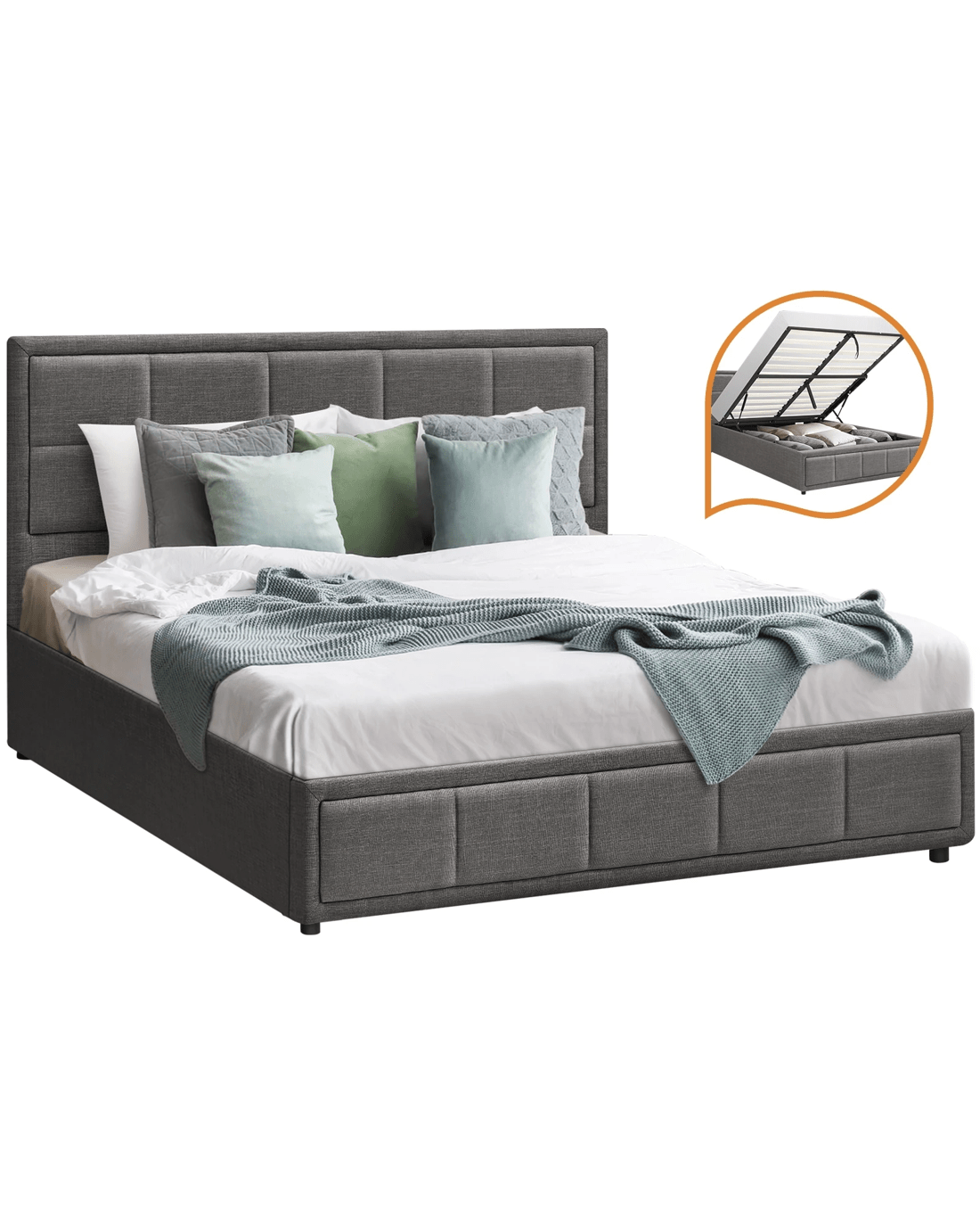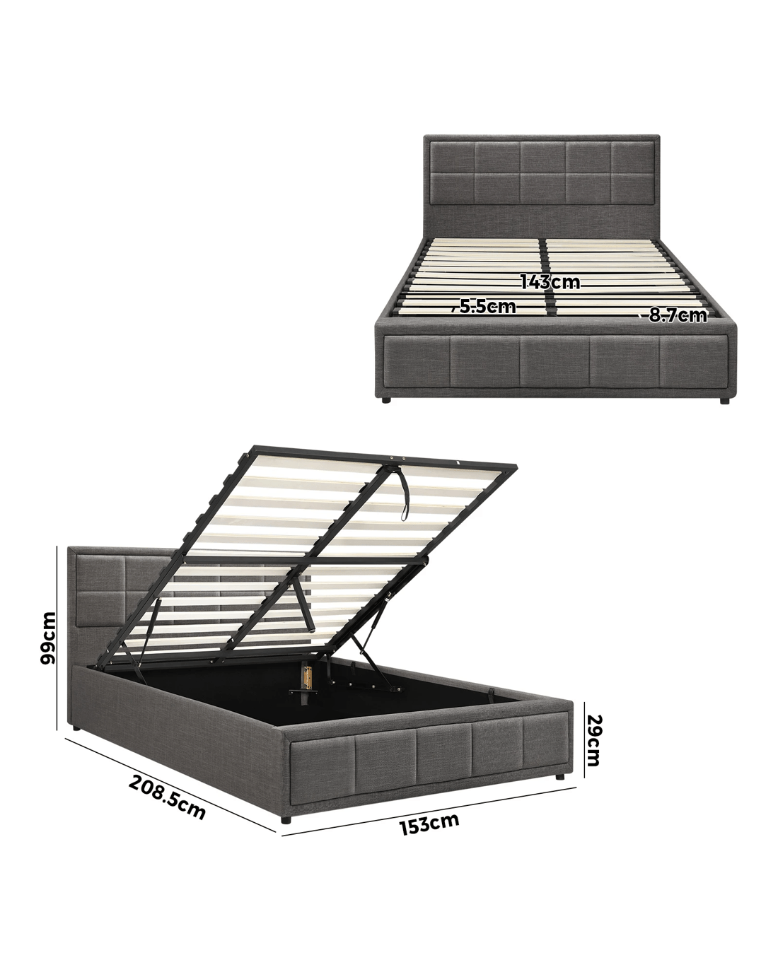 Sold by Kamprad's Oikos 1943Oikiture Queen Bed Frame Gas Lift Storage Base - Grey
