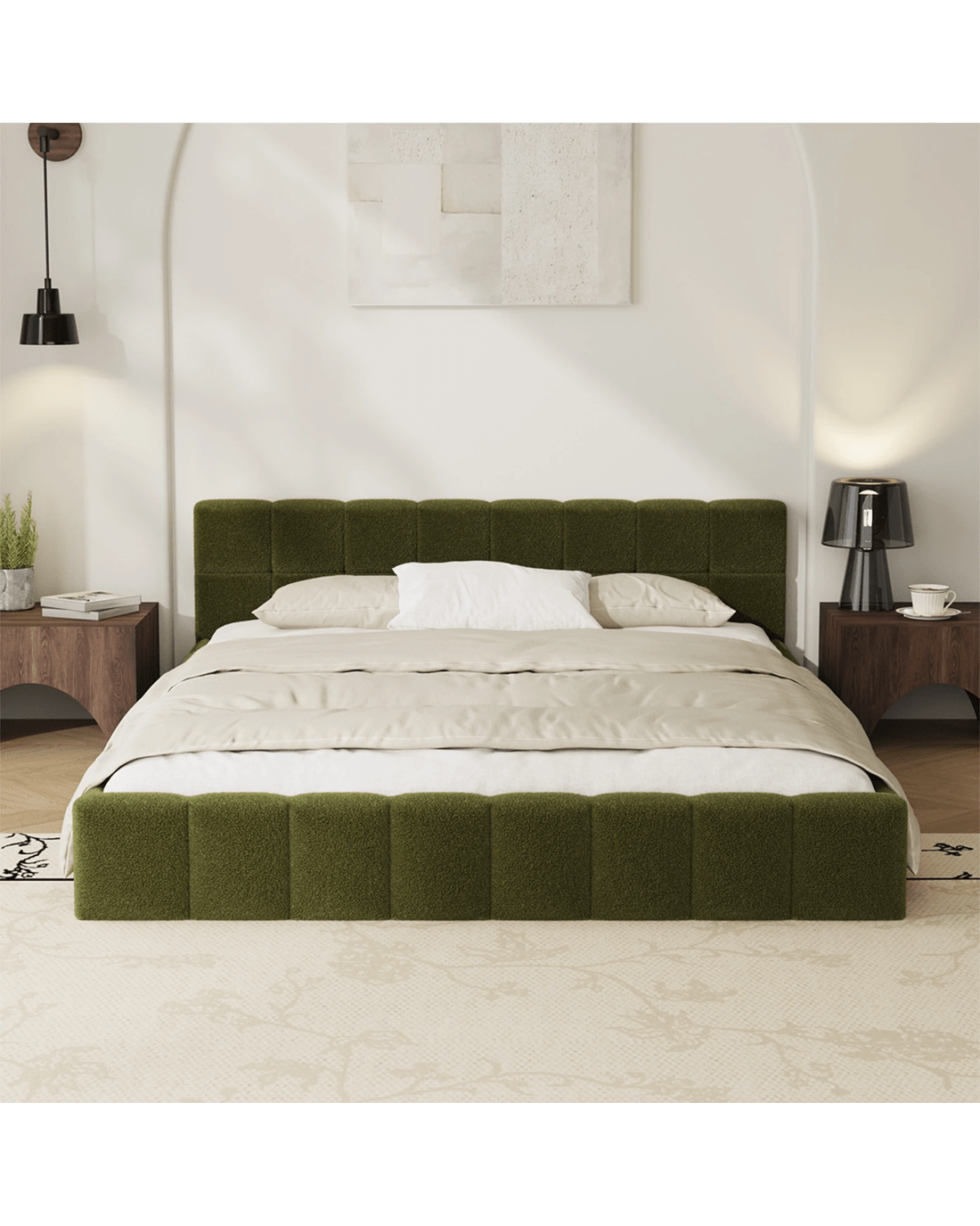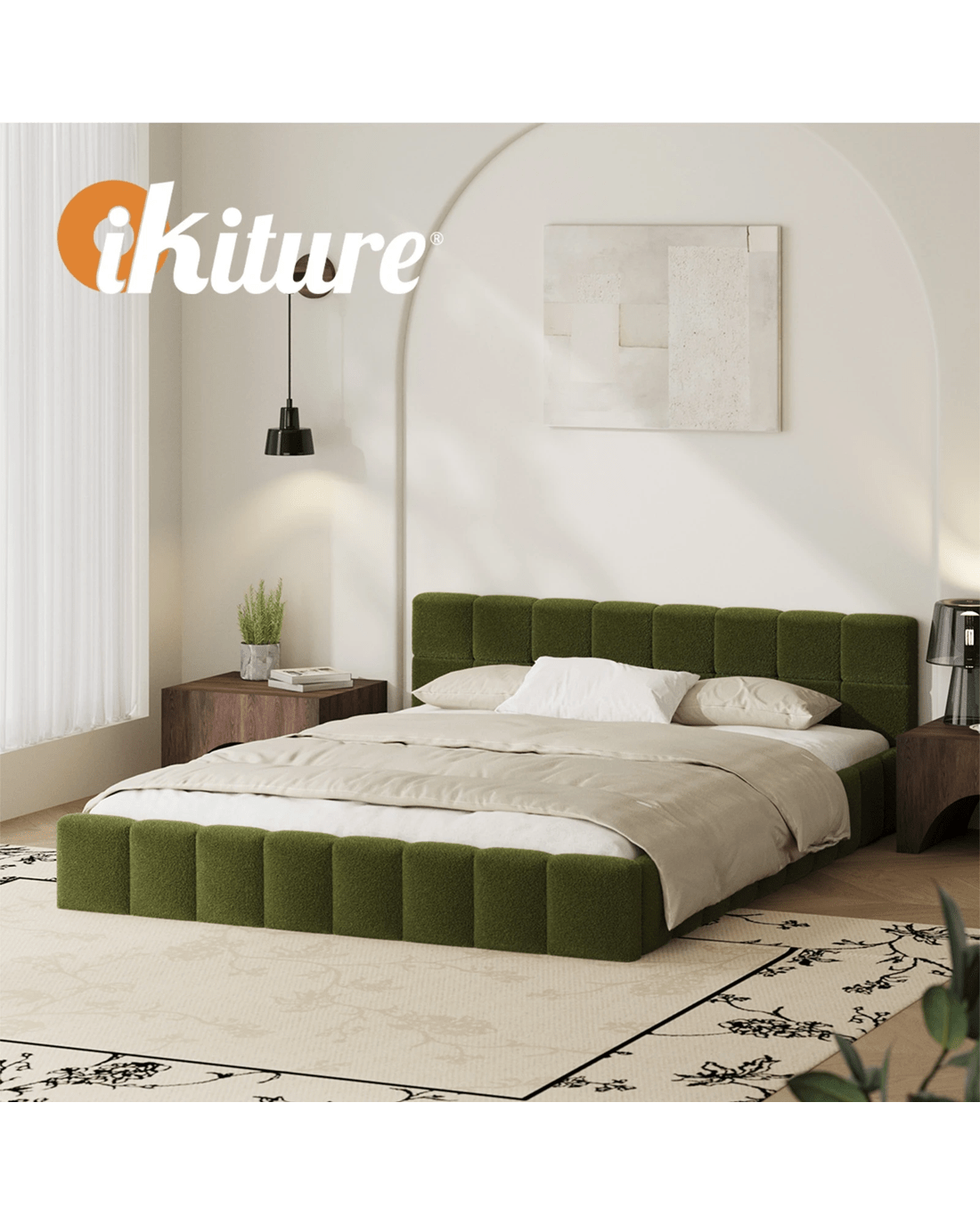 Sold by Kamprad's Oikos 1943Oikiture Bed Frame Queen Size Tufted Headboard Boucle - Green