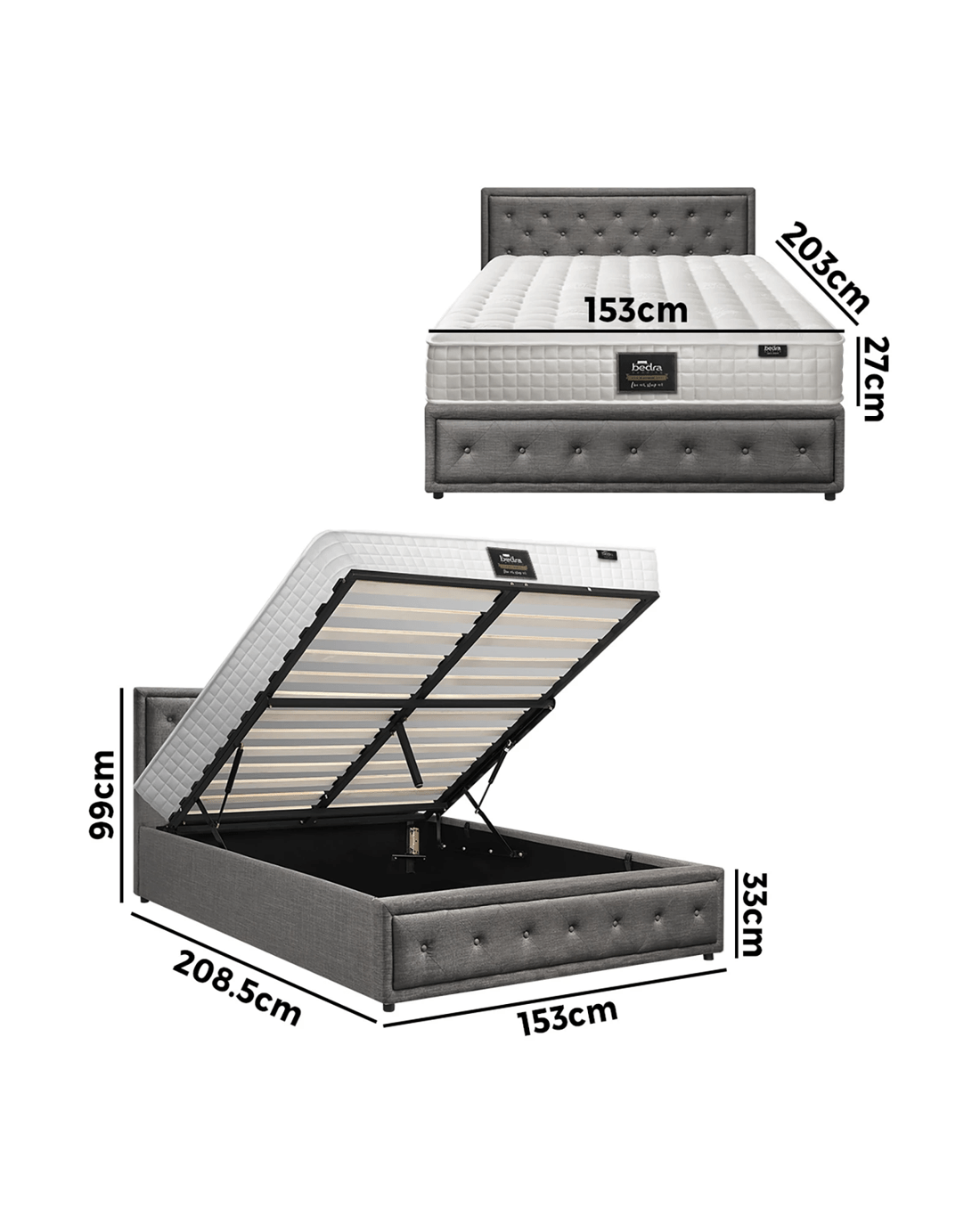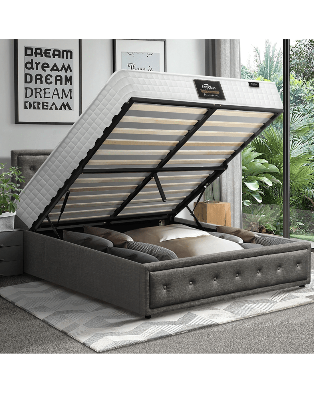 Sold by Kamprad's Oikos 1943Oikiture Queen Bed Gas Lift Storage Base With Mattress Set - Grey