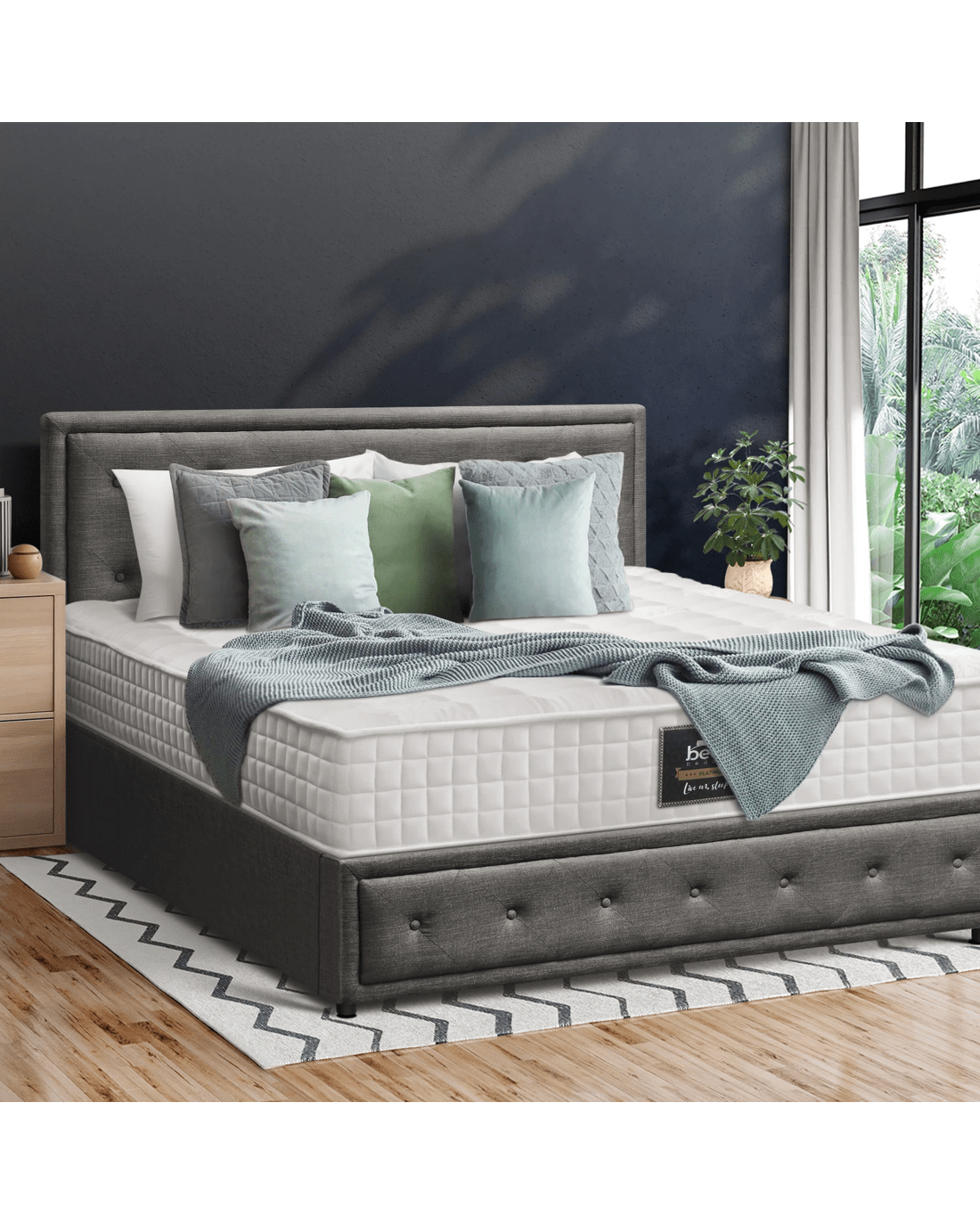 Best of all, the stylish bed frame also includes a comfortable Bedra Bedding Pocket Springs mattress to complete the set. This high-quality spring mattress comprises an 8-layer construction with all the benefits of an independent pocket springs system that provides motion isolation, anti-disturbance and full body support. Naturally, the highly breathable mattress complies with all required standards and certification and is hygienically safe from top to bottom and everything else in between. The Oikiture Gas Lift Bed Frame. Made it yours to enjoy.