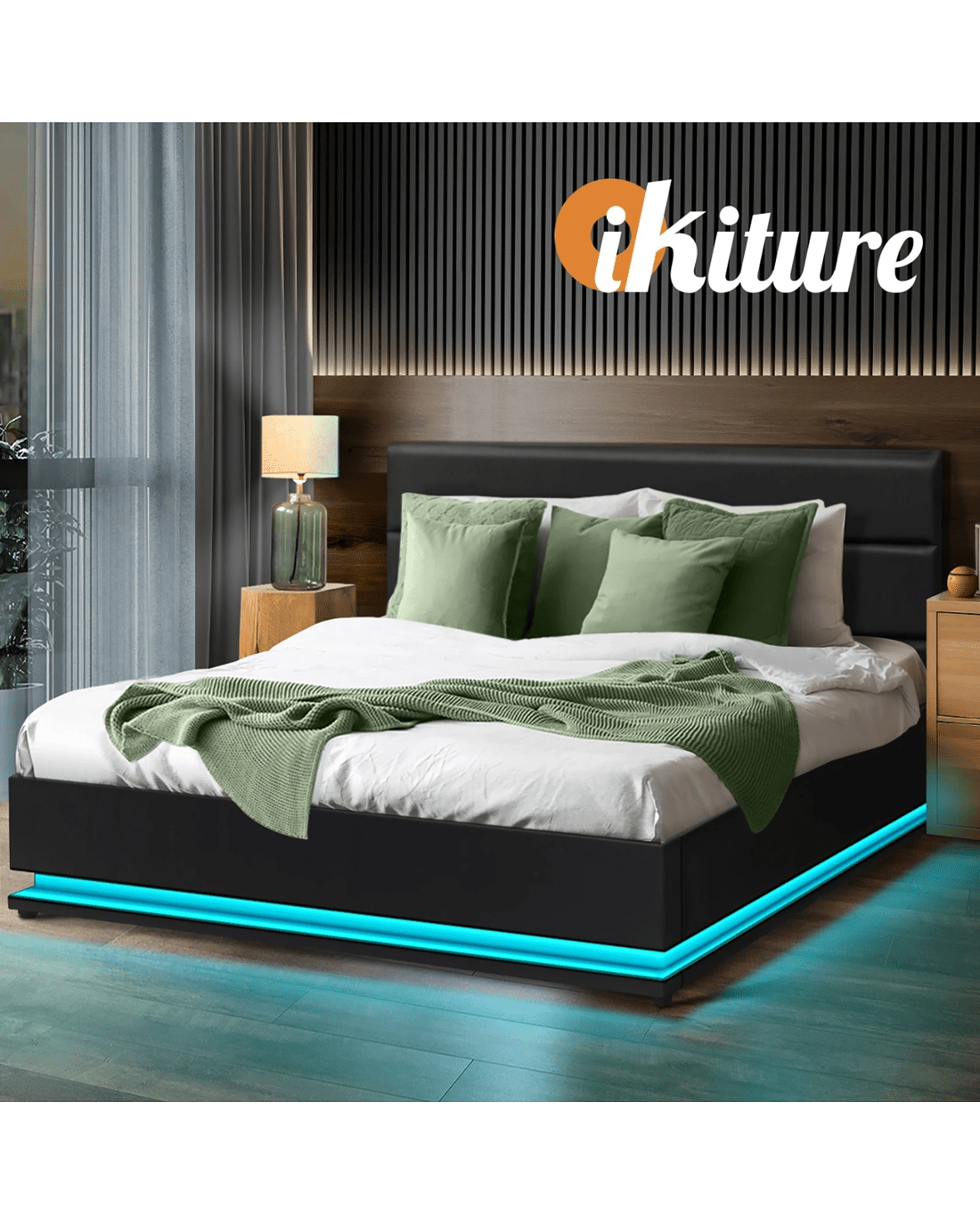 Sold by Kamprad's Oikos 1943Oikiture Rgb Led Queen Bed Frame Gas Lift Base With Storage - Black