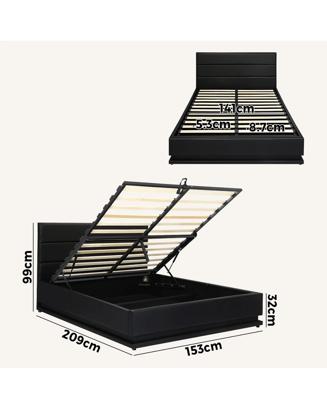 With a hidden storage area that is easily accessed by simple gas lift function, you'll find ample amounts of space to store away items that you do not use daily. Built with plywood slats and base, it offers excellent support for the perfect night's sleep.