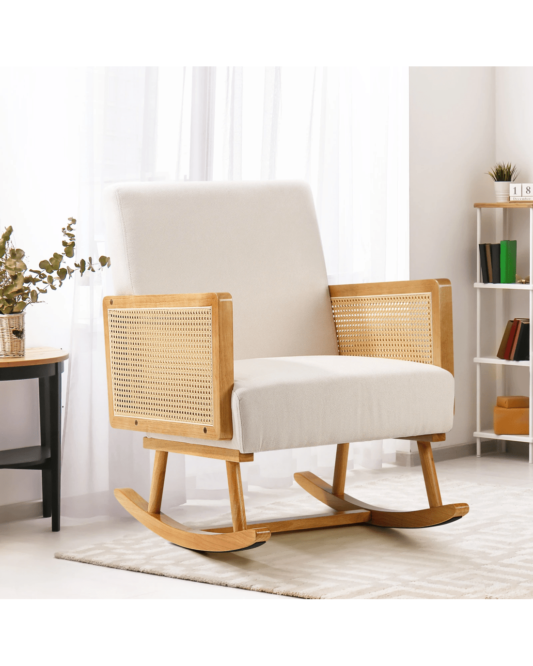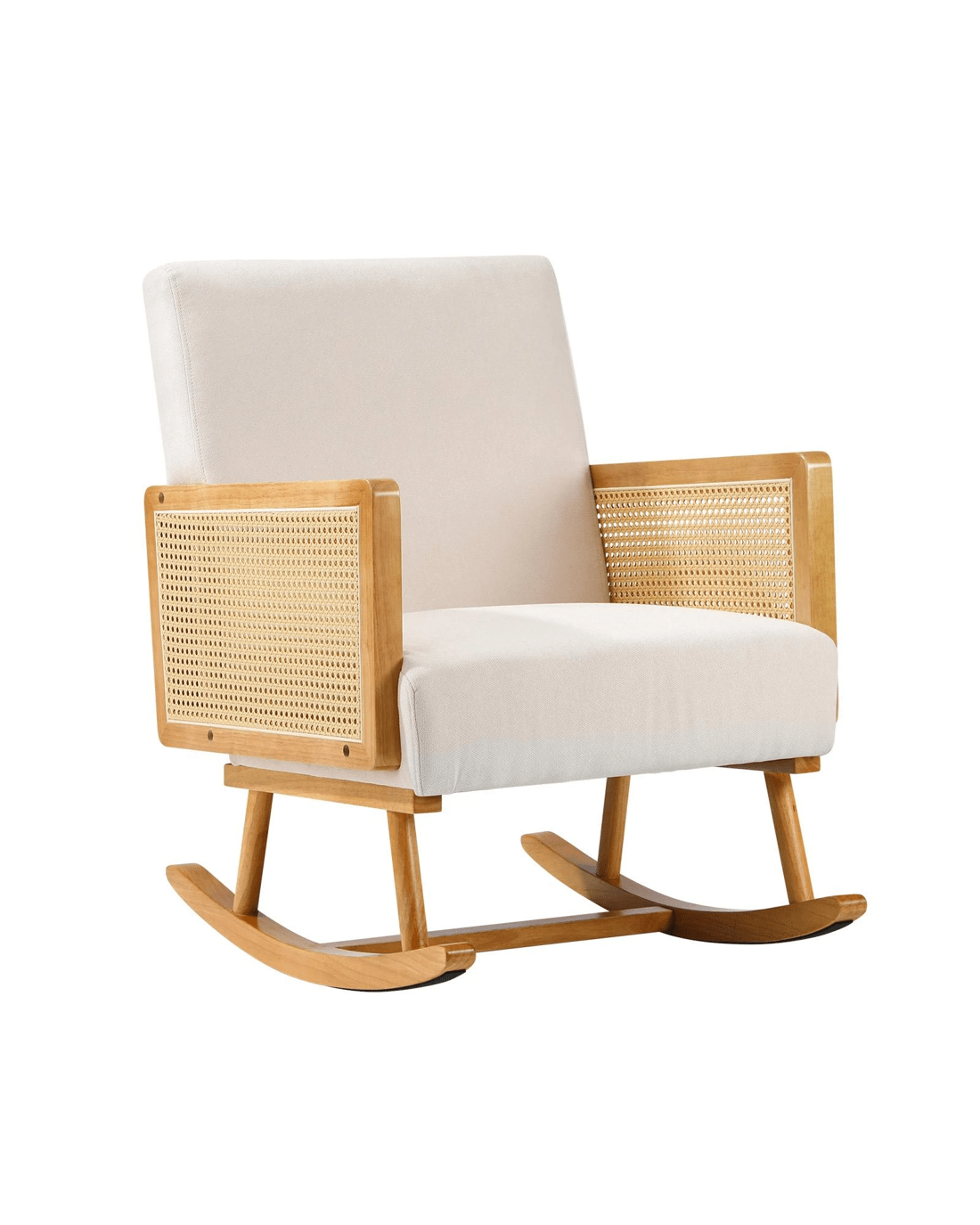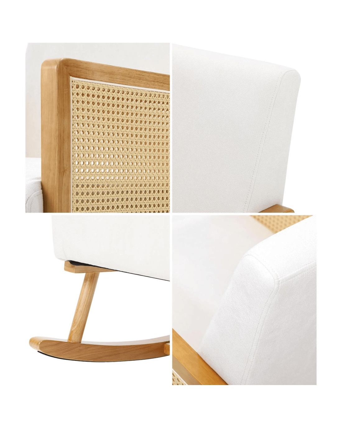 Oikiture Rocking Chair Nursing Armchair Linen Accent Chairs Pe Rattan - Beige