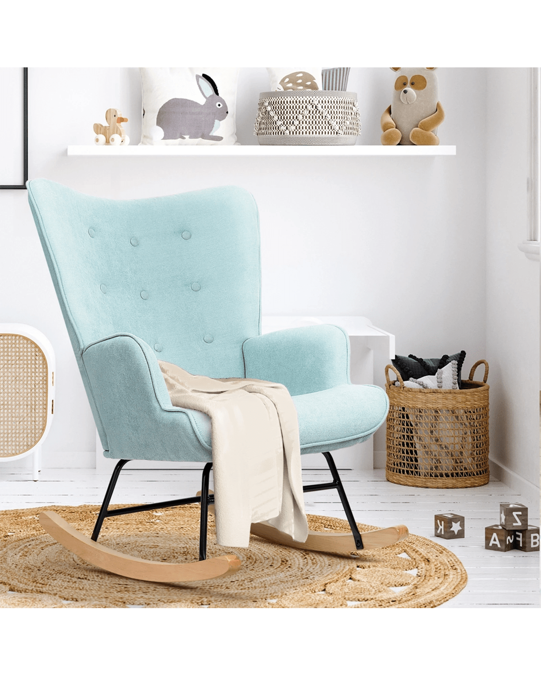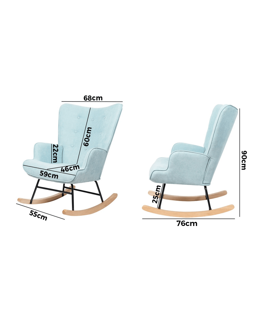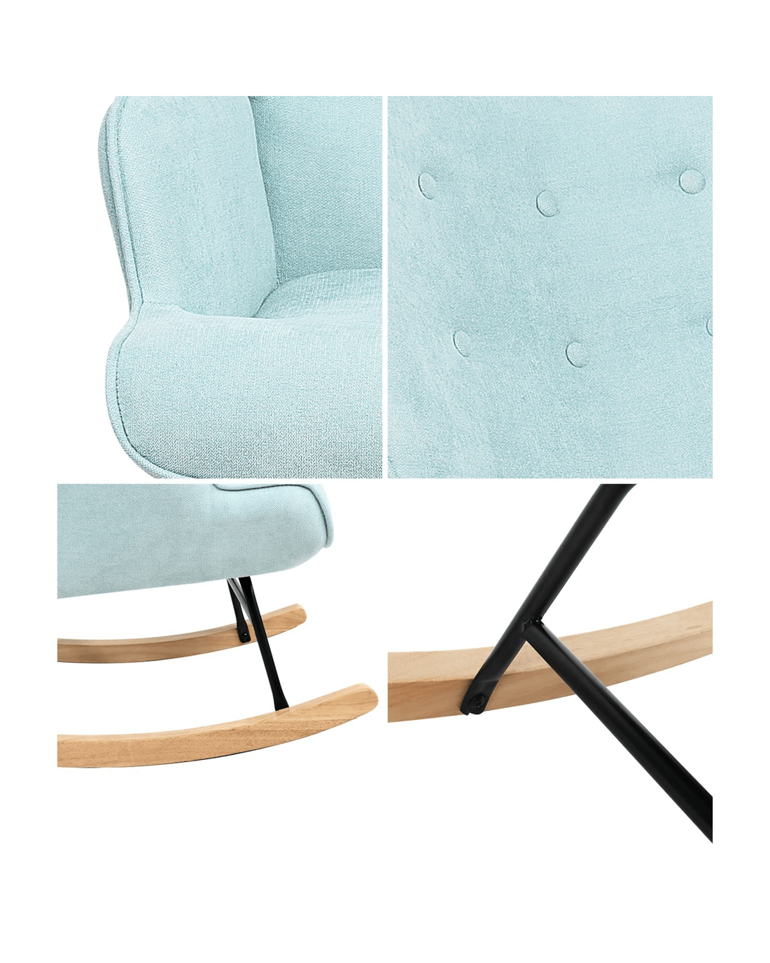 Oikiture Rocking Chair Nursing Armchair Linen Accent Chairs Upholstered - Blue