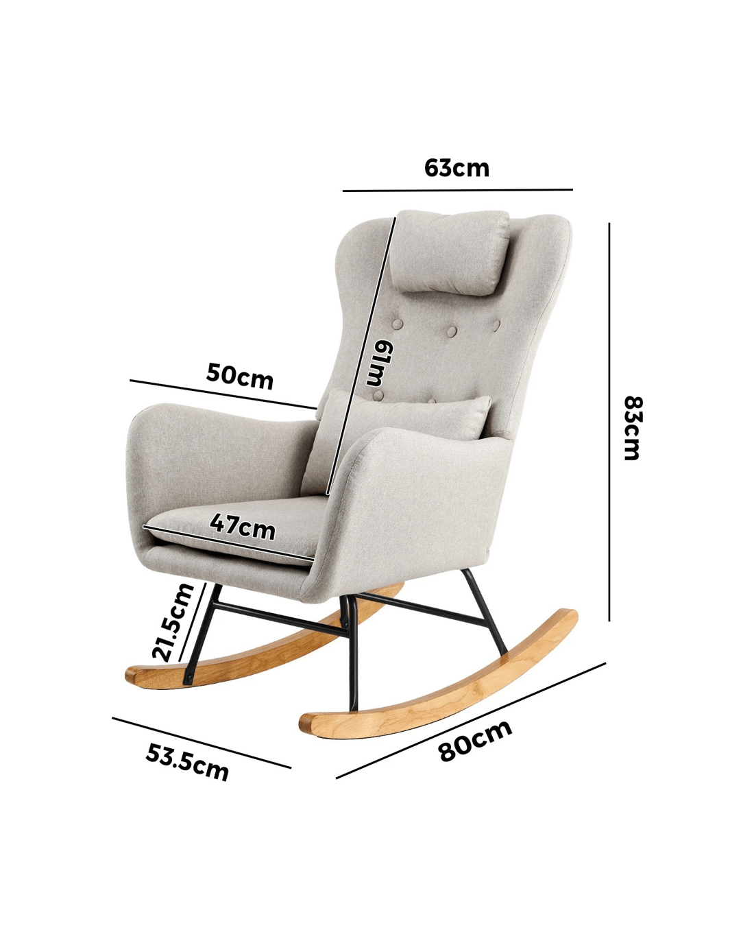 Upgrade your home decor with our Oikiture Rocking Armchair, a stylish and comfortable addition that doesn't break the bank. Its timeless design, durable construction, and the added support of the headrest and bolster pillow make it the perfect choice for those seeking an affordable yet elegant rocking chair solution. Make this rocking armchair a part of your living space, and elevate both your comfort and style as you relax and gently rock your cares away.