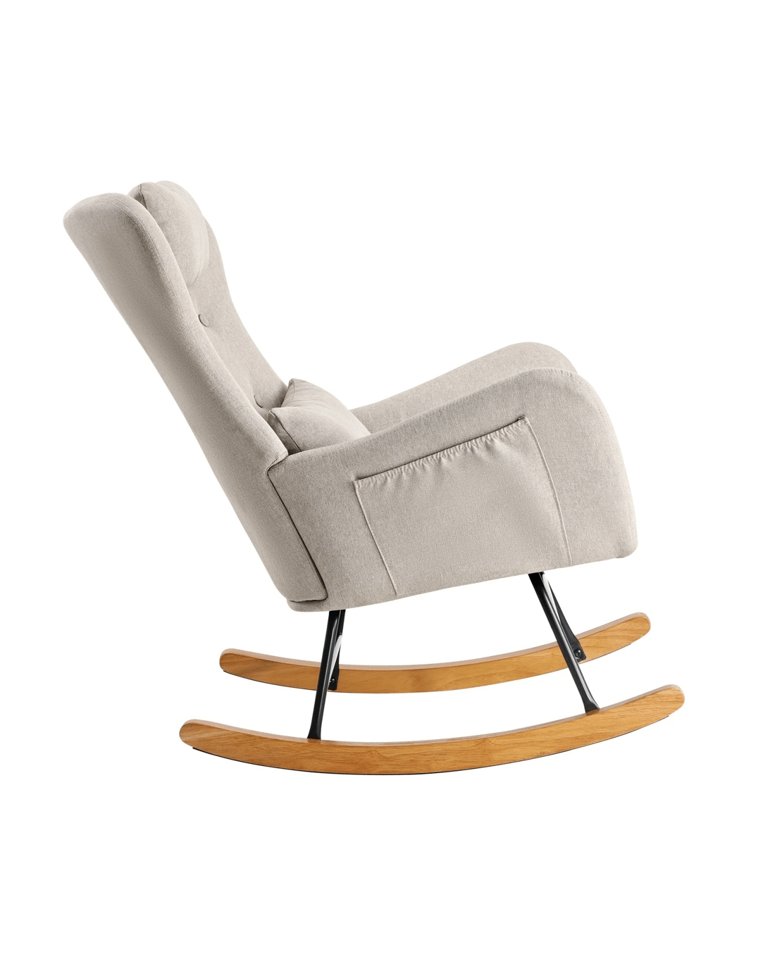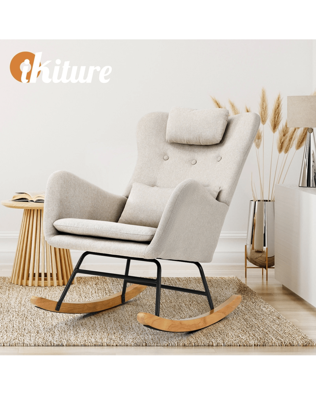 Oikiture Rocking Chair Nursing Armchair Linen Accent Chairs With 2 Pillow - Beige