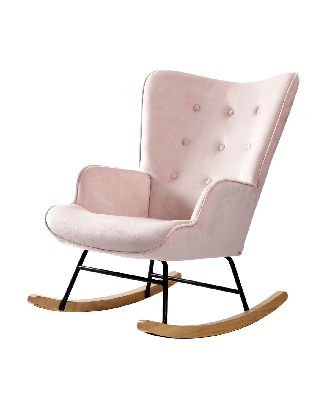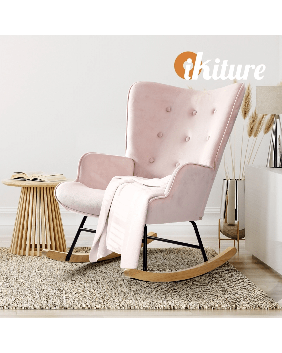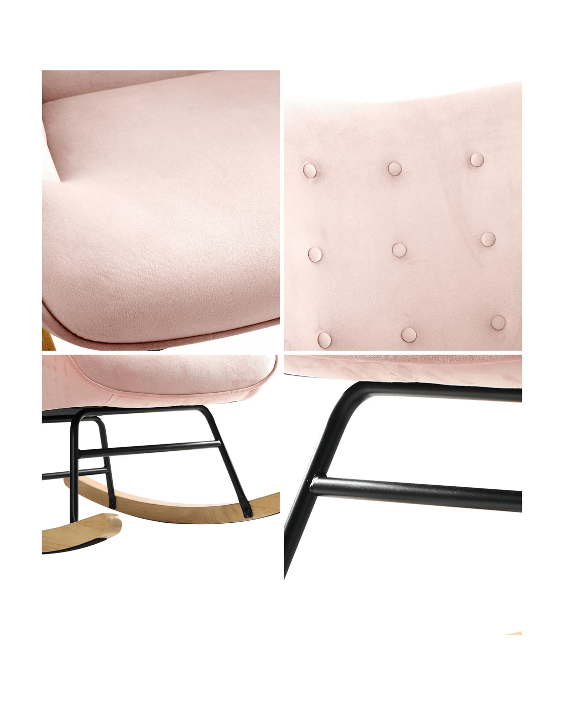 Oikiture Rocking Chair Nursing Armchair Velvet Accent Chairs Upholstered - Pink