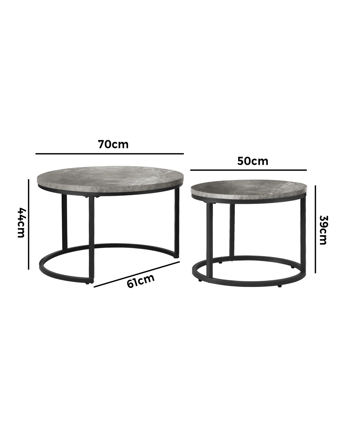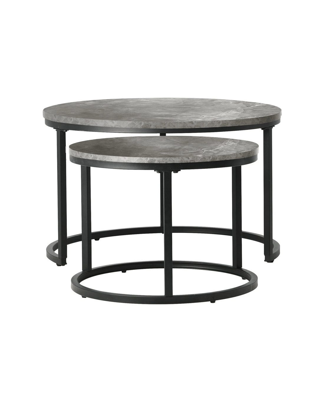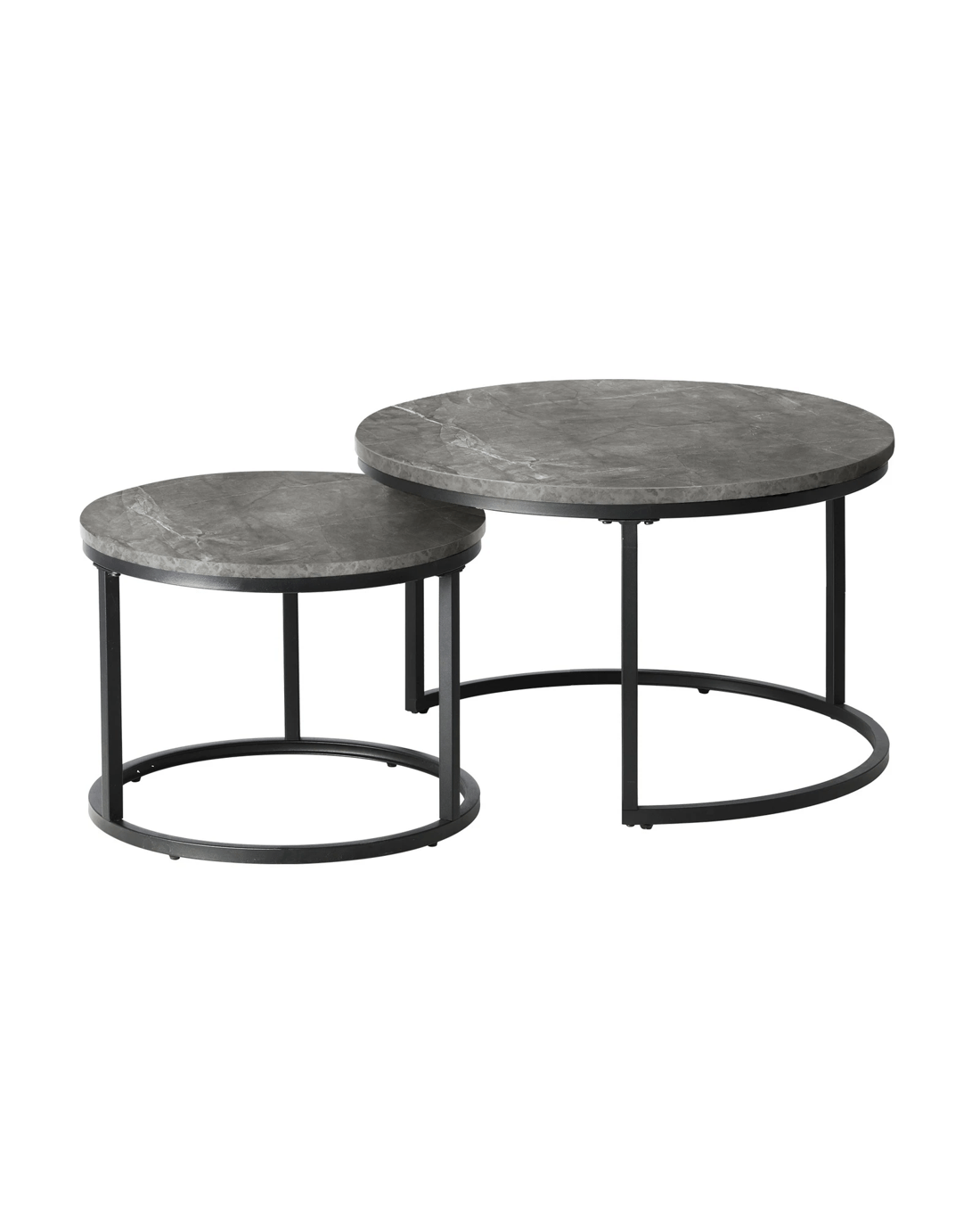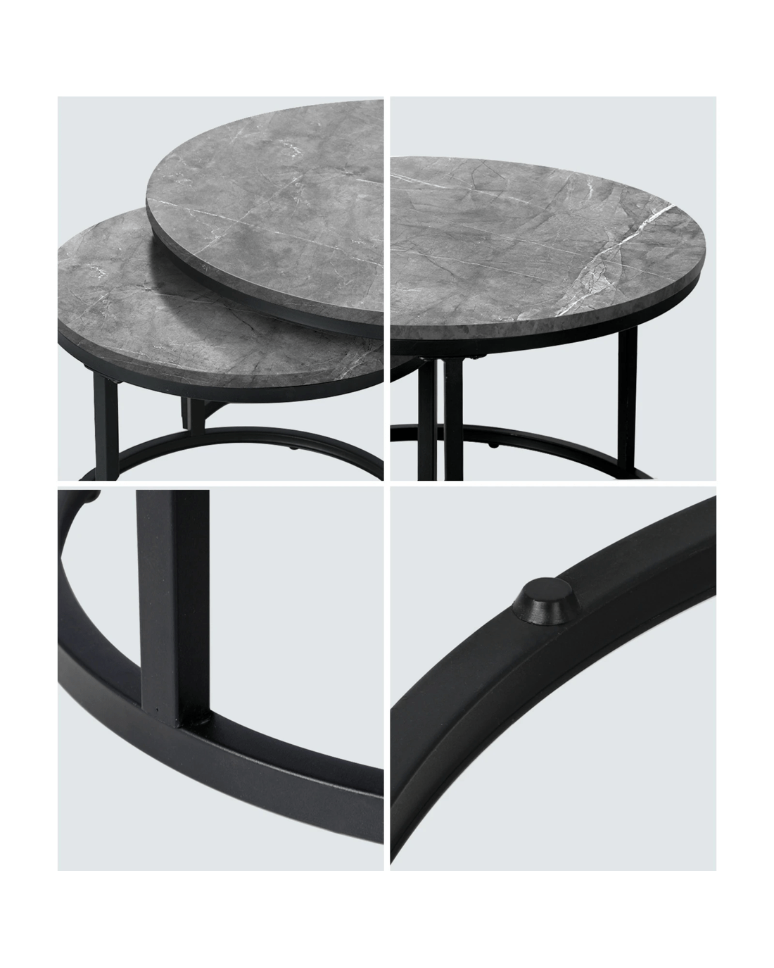 Sold by Kamprad's Oikos 1943Oikiture Set Of 2 Coffee Table Round Marble-like Nesting Side Tables - Grey