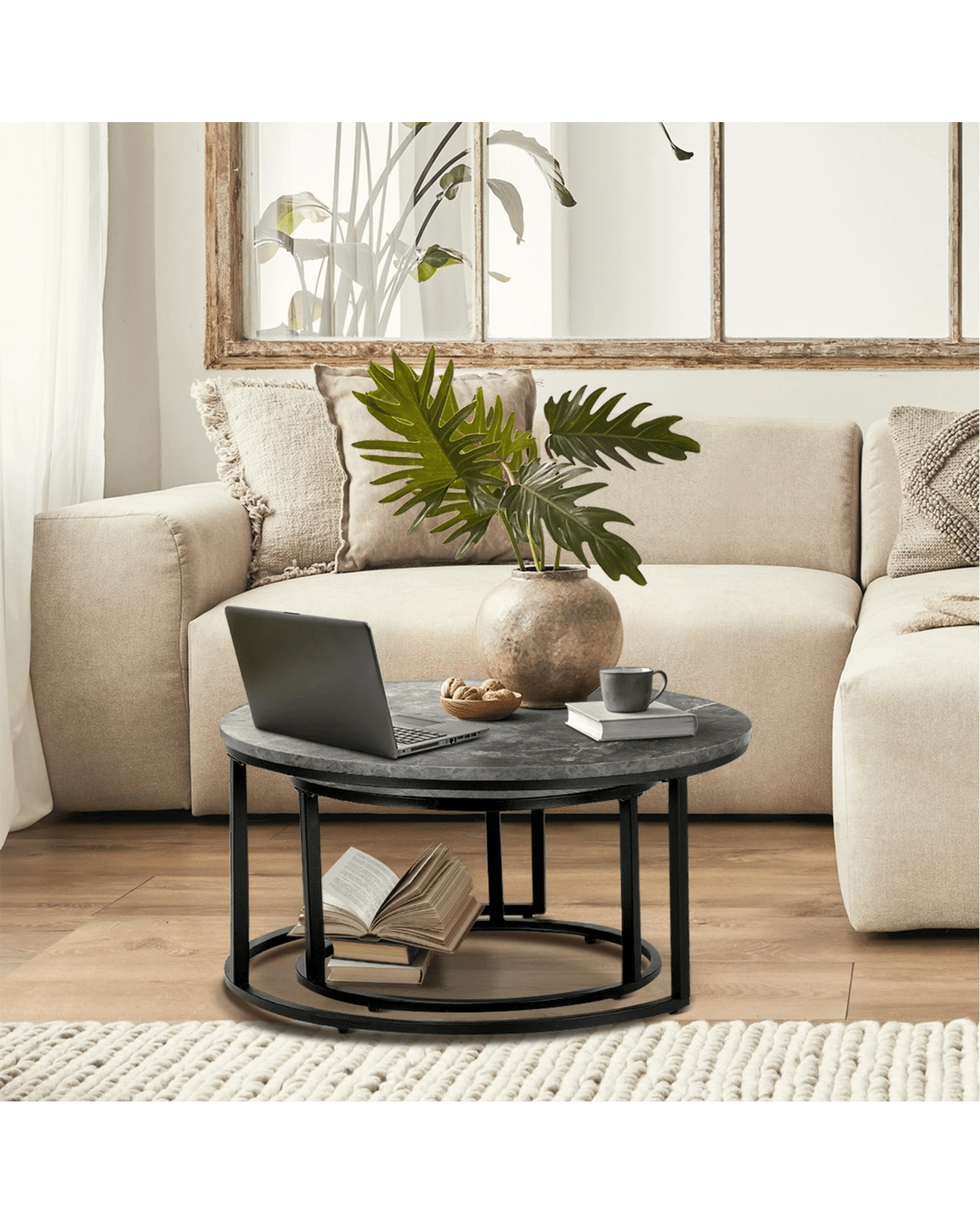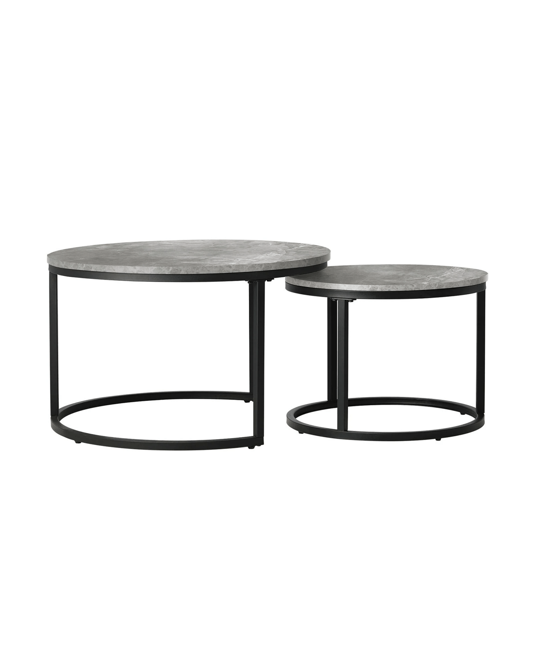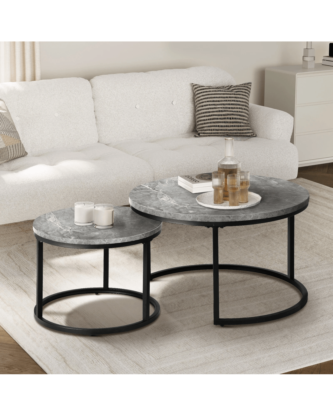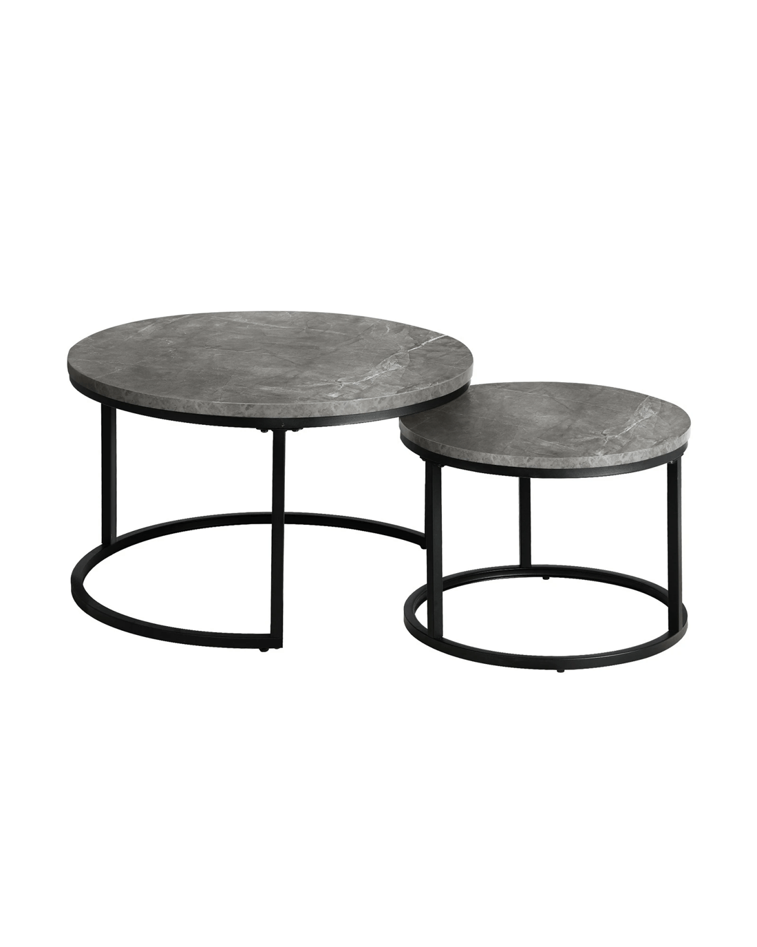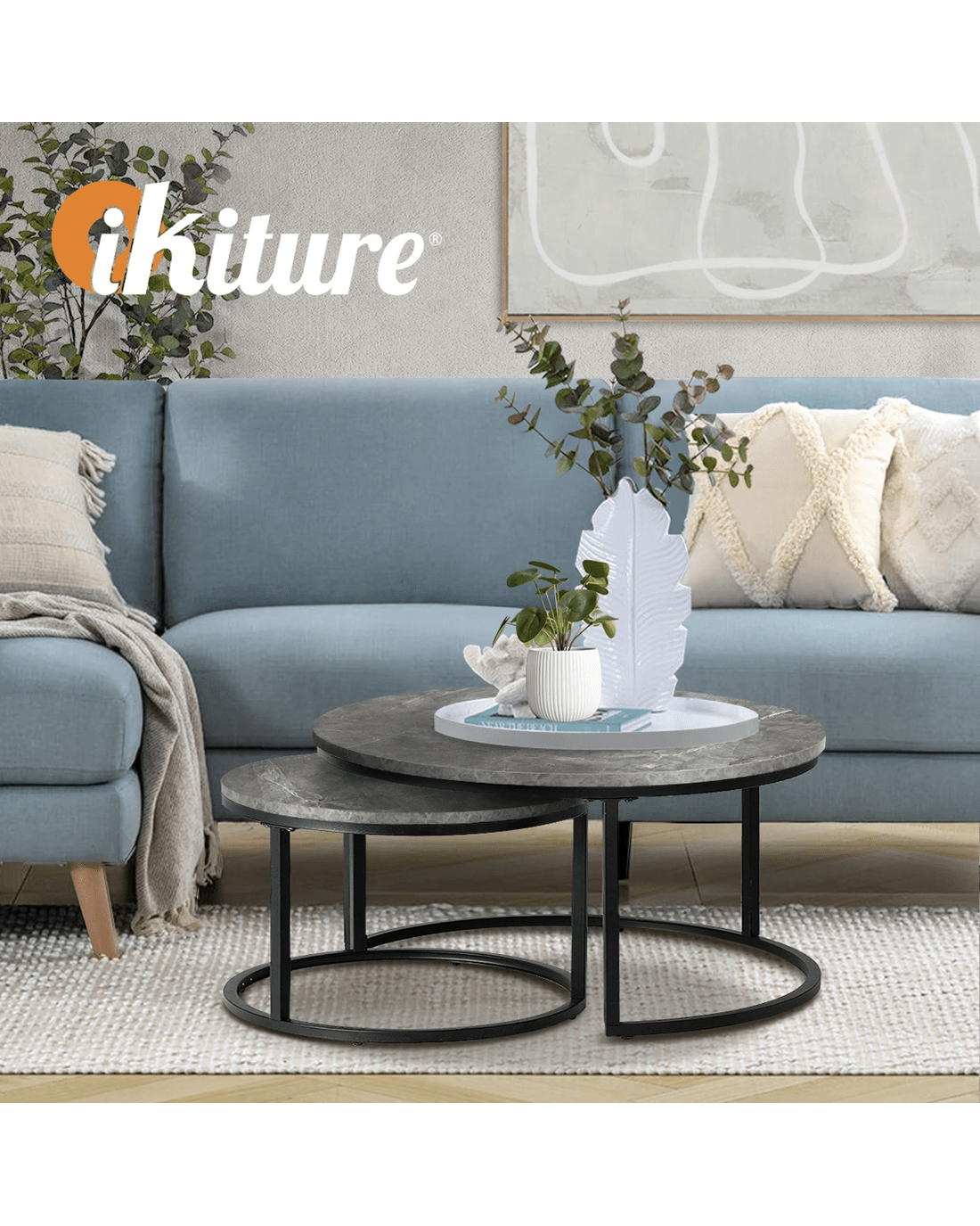 Sold by Kamprad's Oikos 1943Oikiture Set Of 2 Coffee Table Round Marble-like Nesting Side Tables - Grey