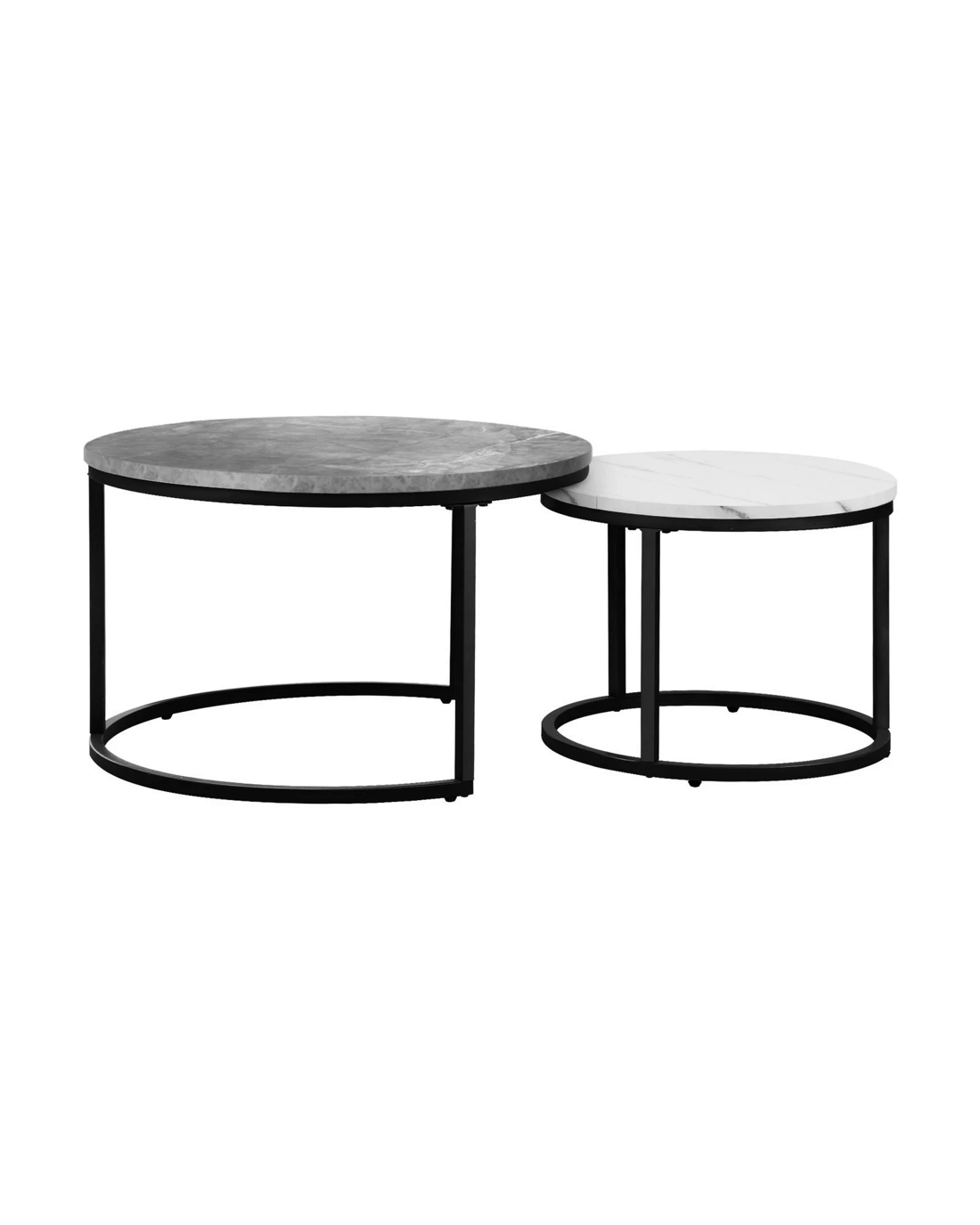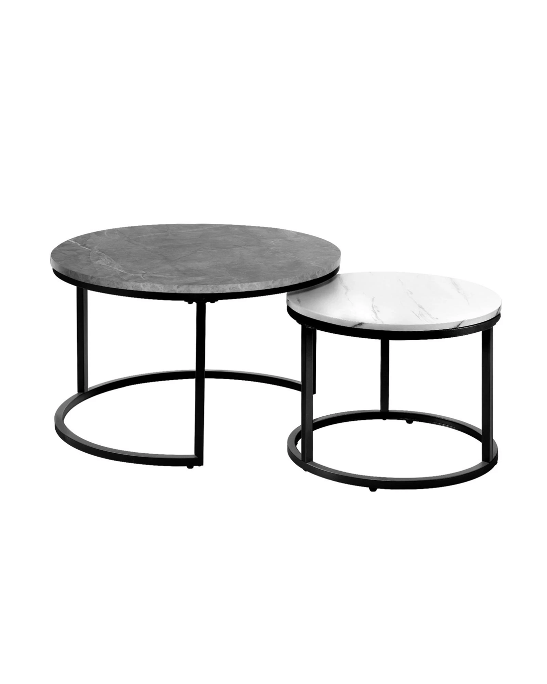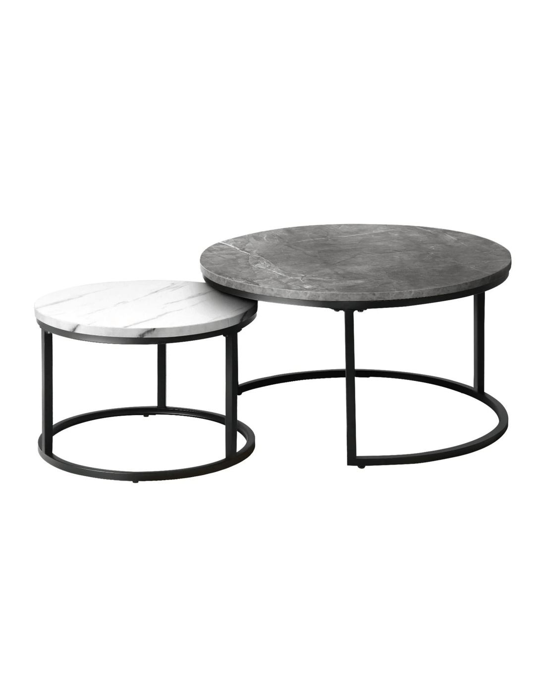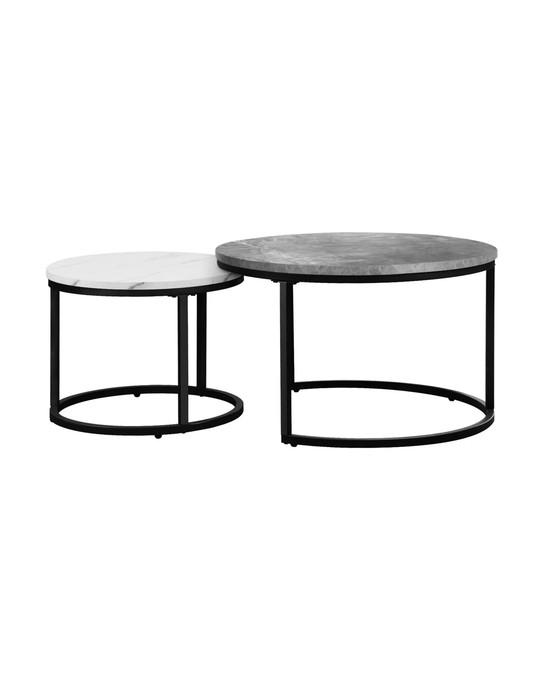 Oikiture Set Of 2 Coffee Table Round Marble-like Nesting Side Tables - Multi