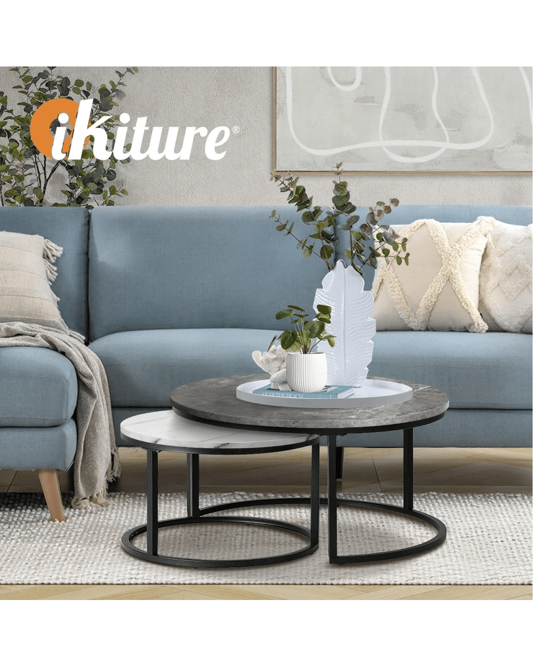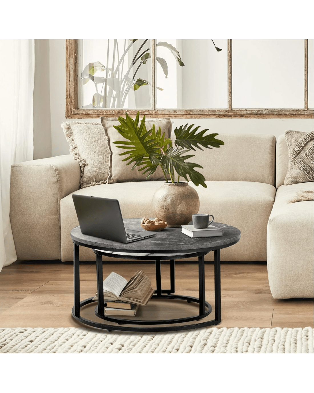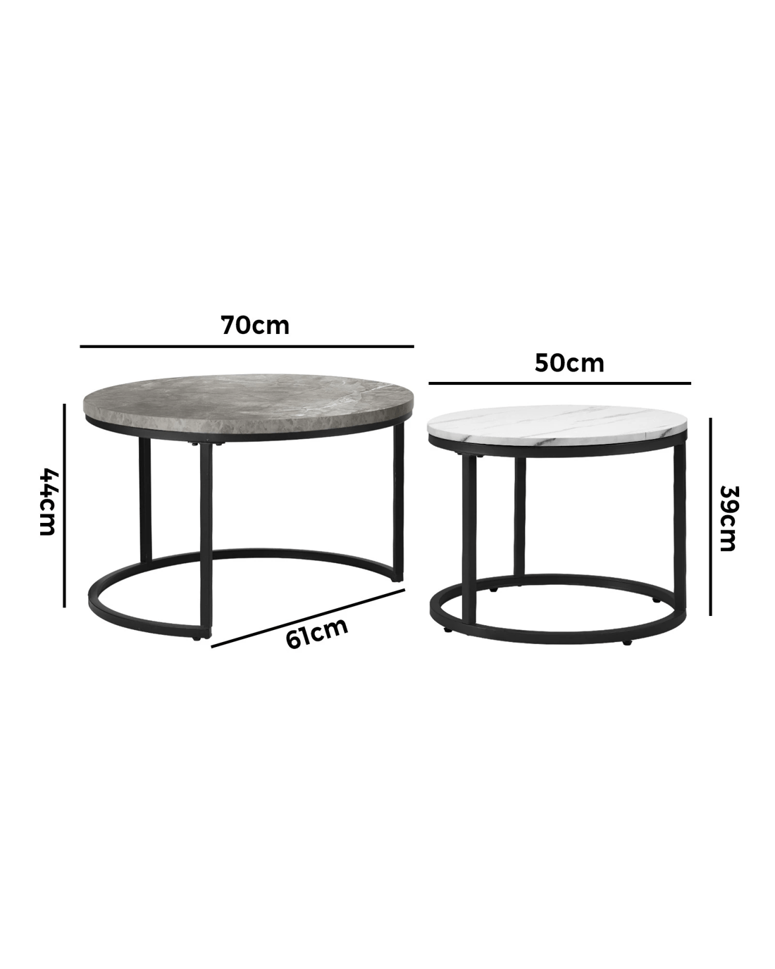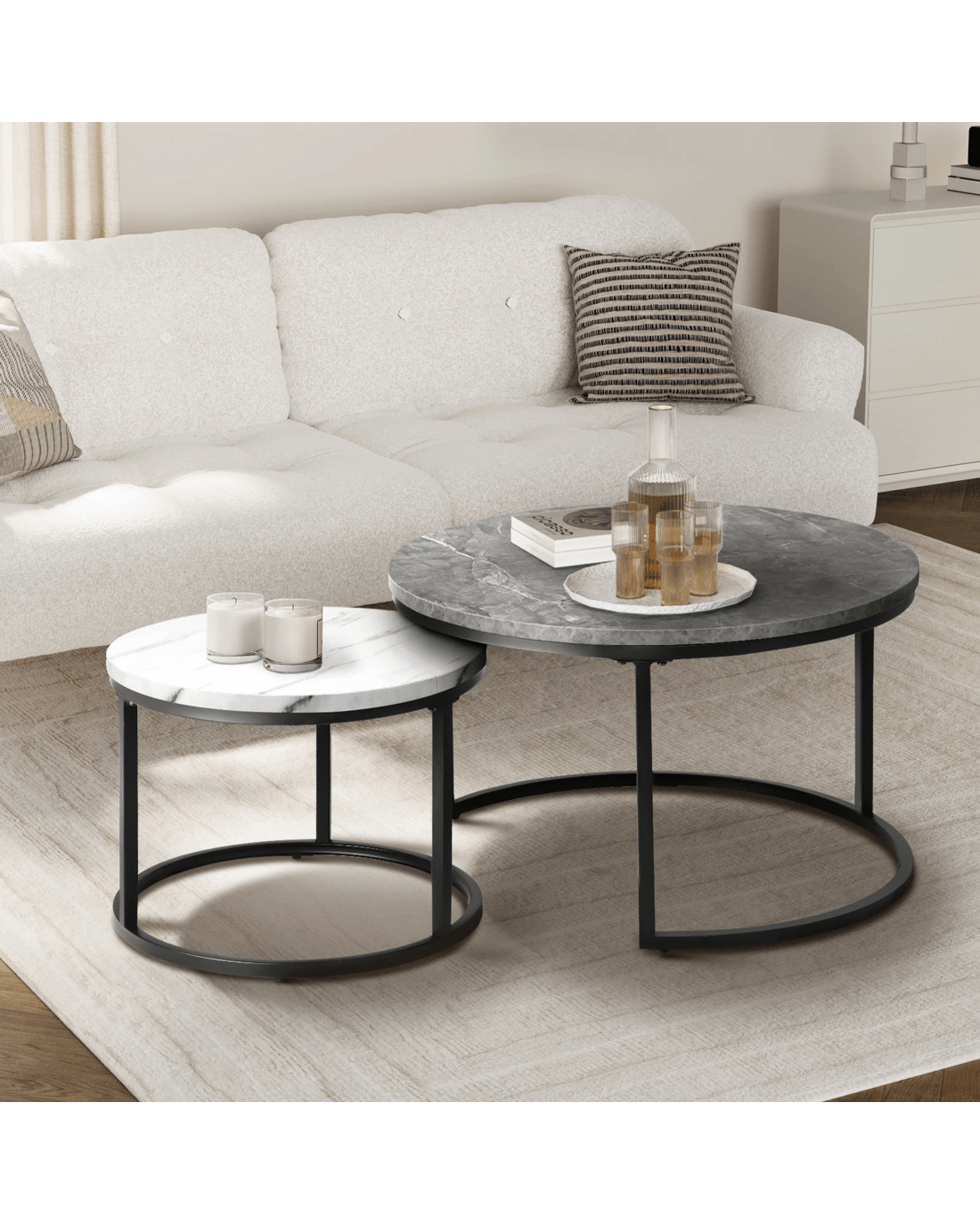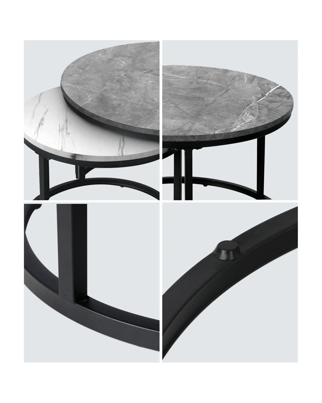 Oikiture Set Of 2 Coffee Table Round Marble-like Nesting Side Tables - Multi