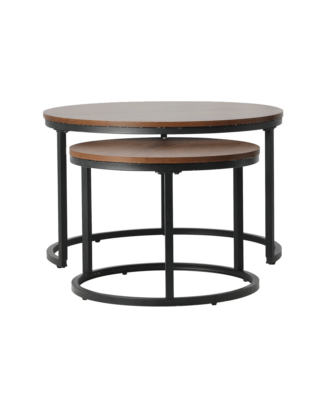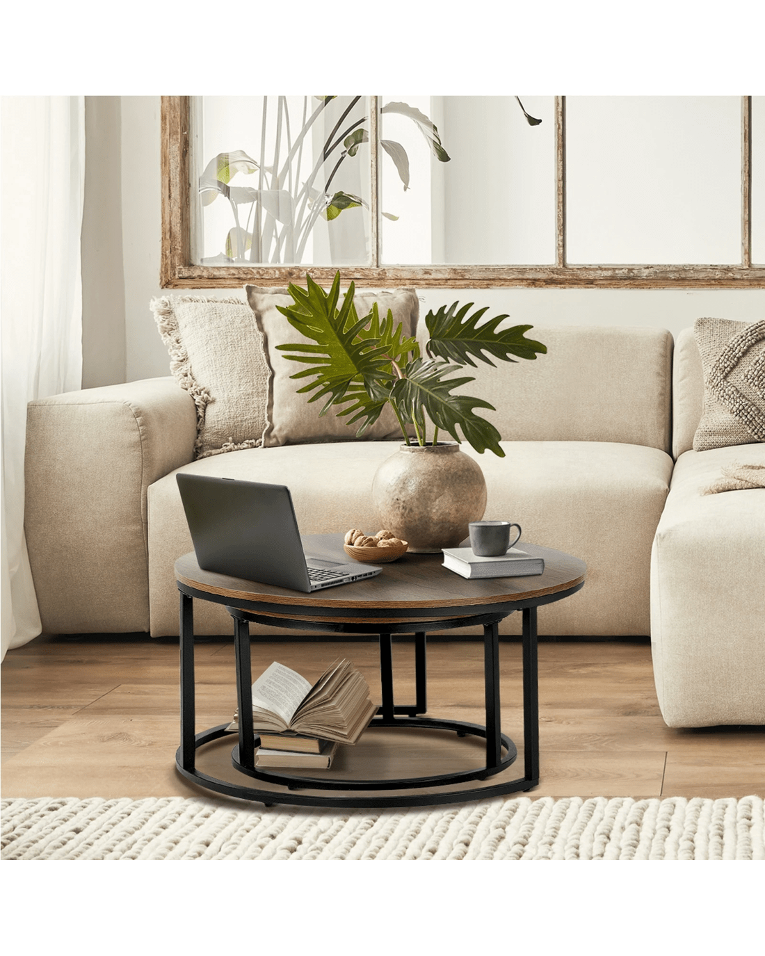 Oikiture Set Of 2 Coffee Table Round Nesting Side End Table - Brown