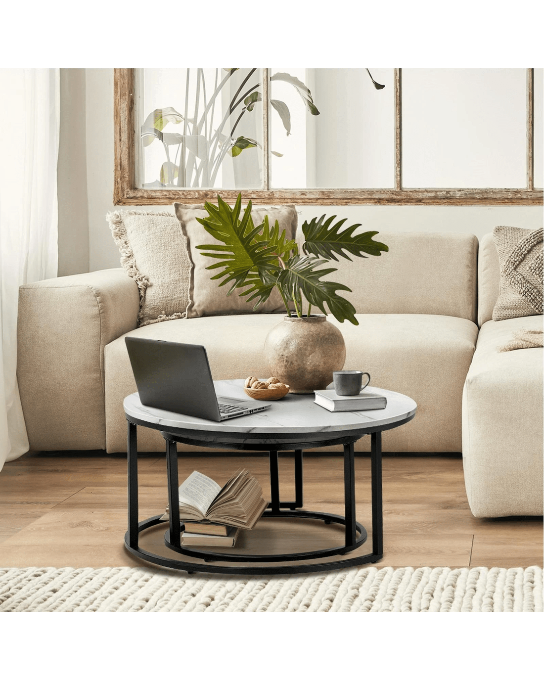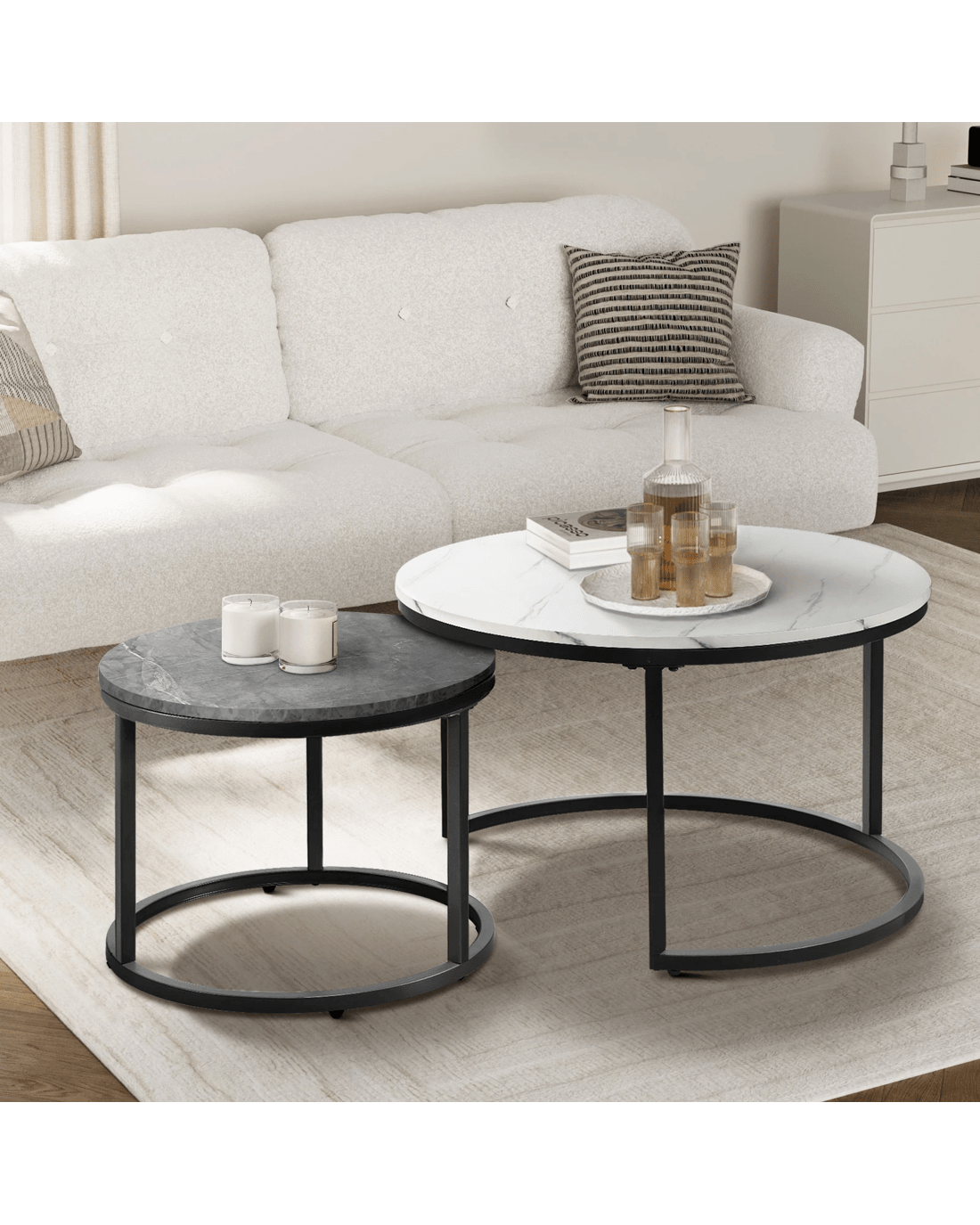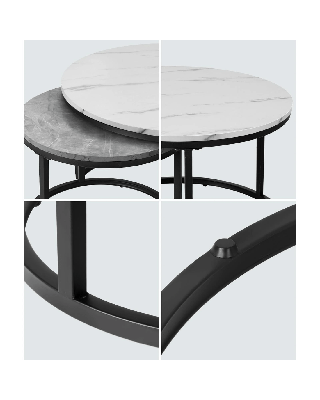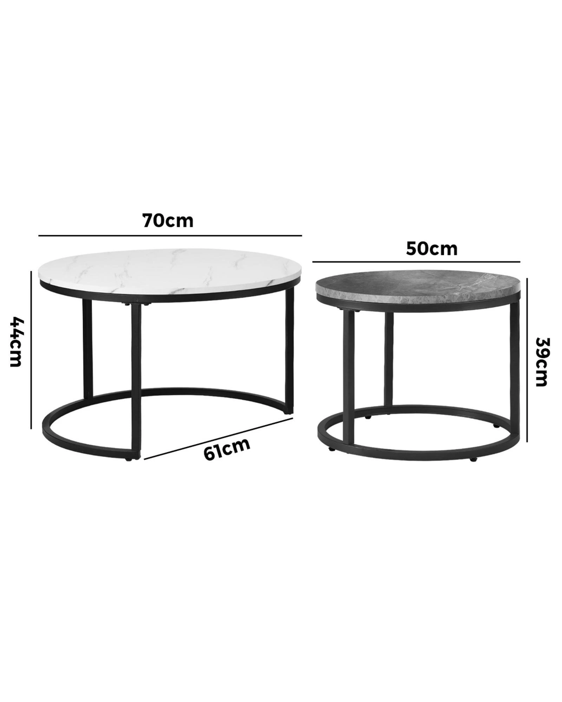 With the ability to choose between the 70cm and 50cm diameter tabletops, the nesting coffee table would be a highly versatile furniture piece for use in any room. Assembly is simple with the easy-to-follow instructions.