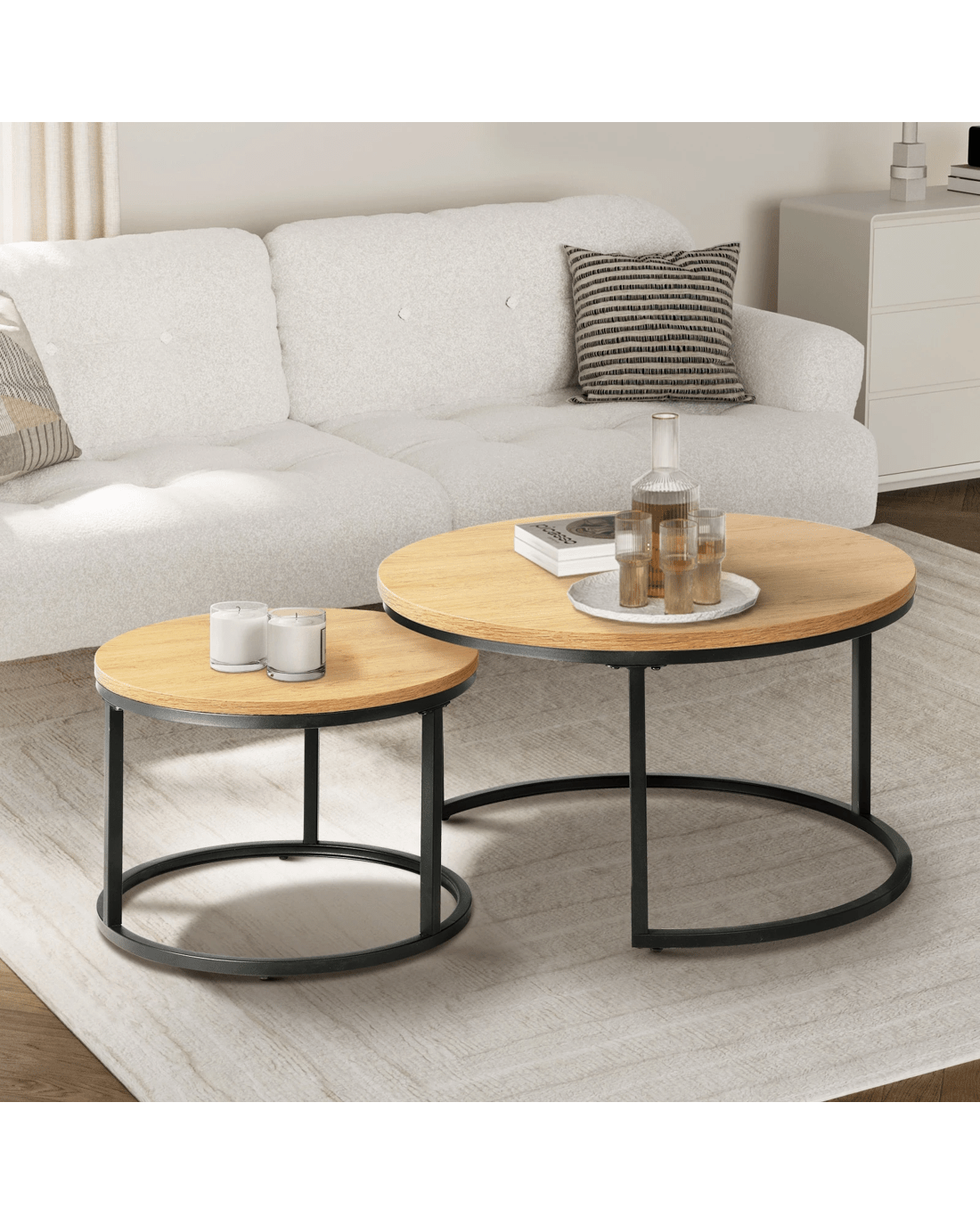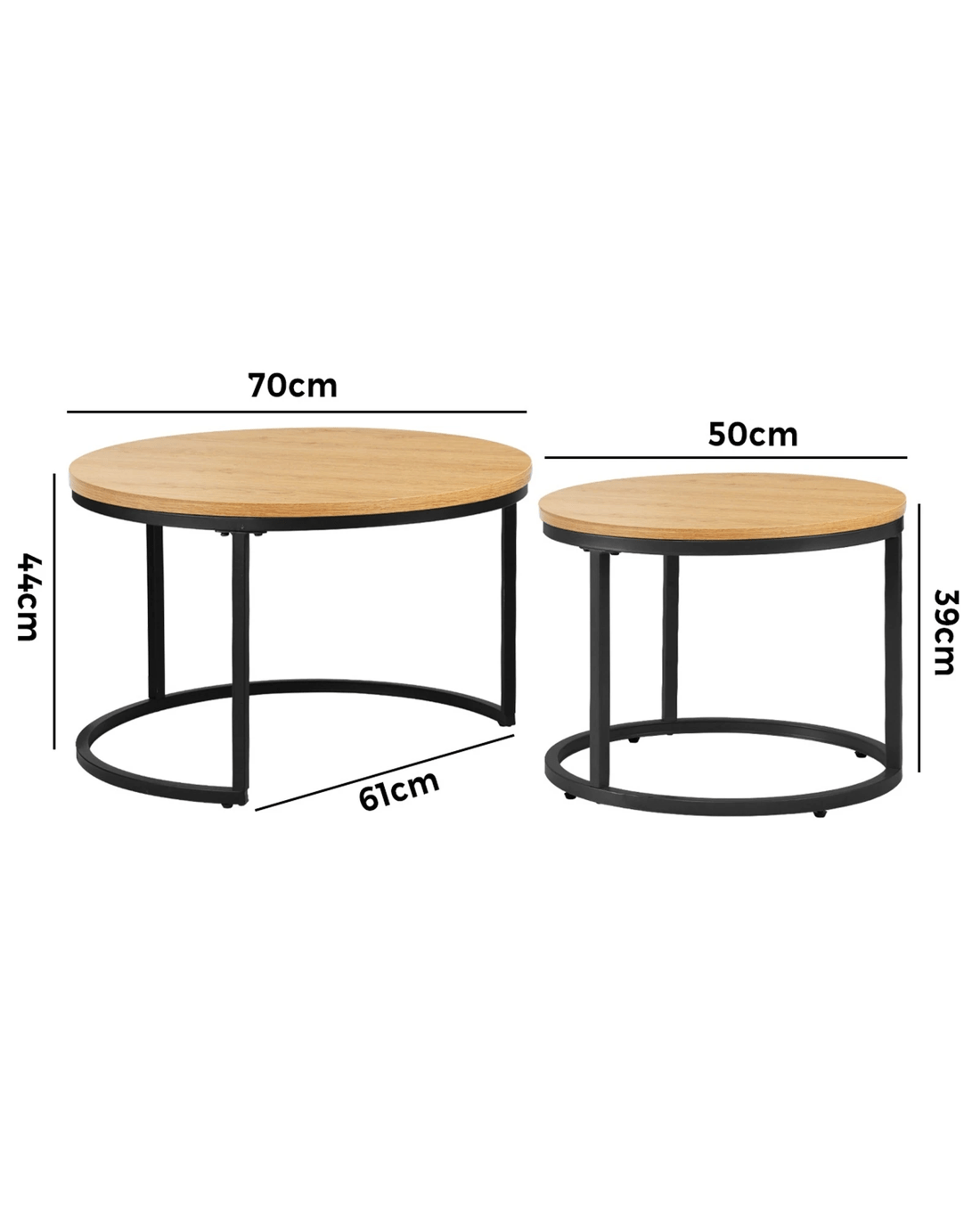 With the ability to choose between the 70cm and 50cm diameter tabletops, the nesting coffee table would be a highly versatile furniture piece for use in any room. Assembly is simple with the easy-to-follow instructions.