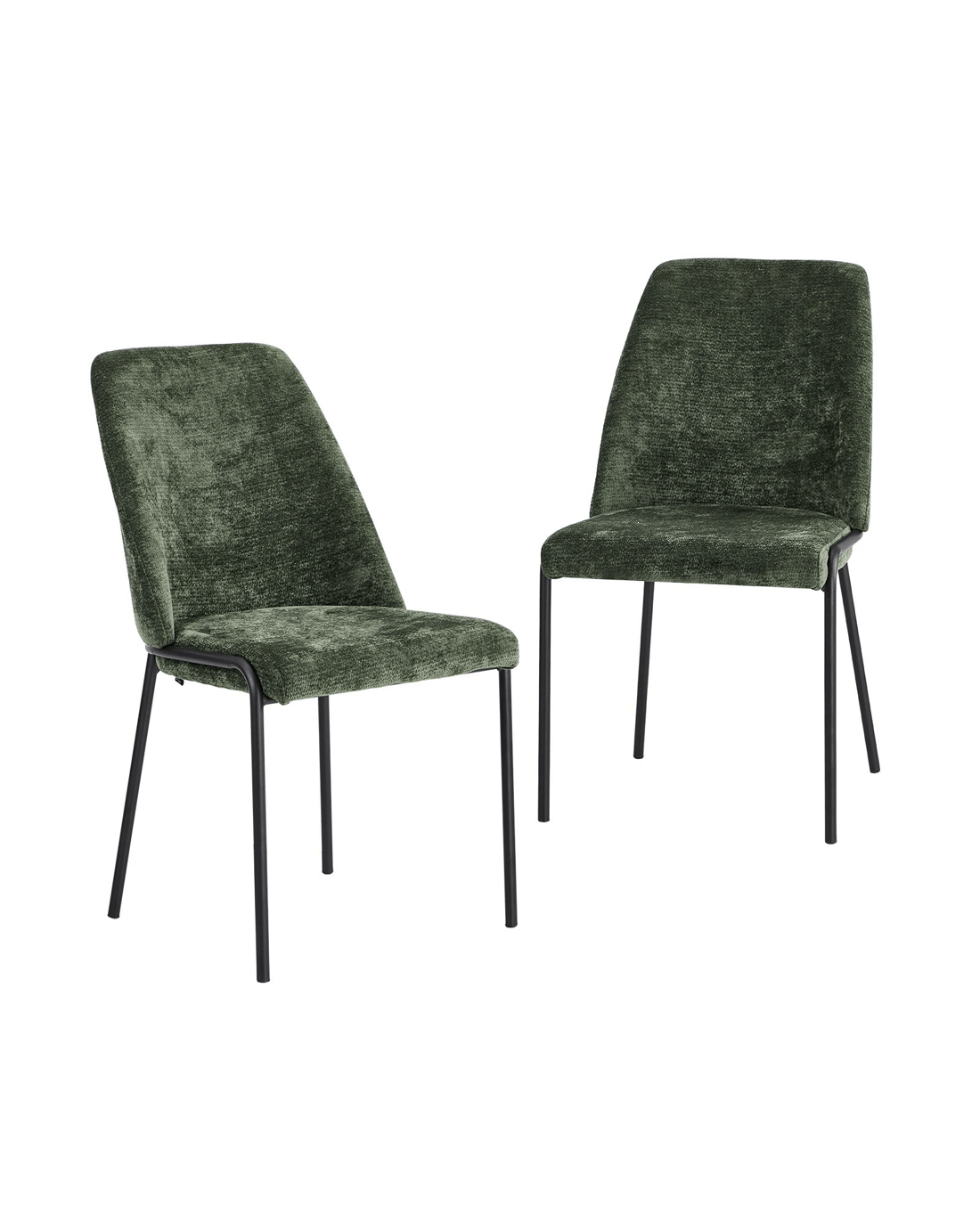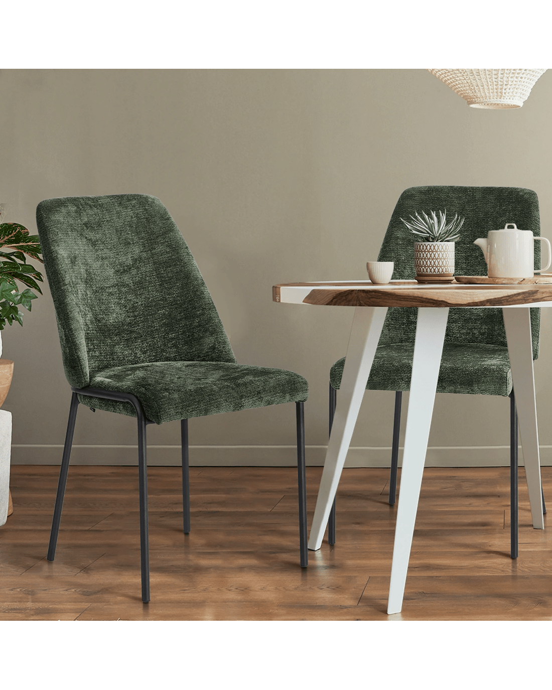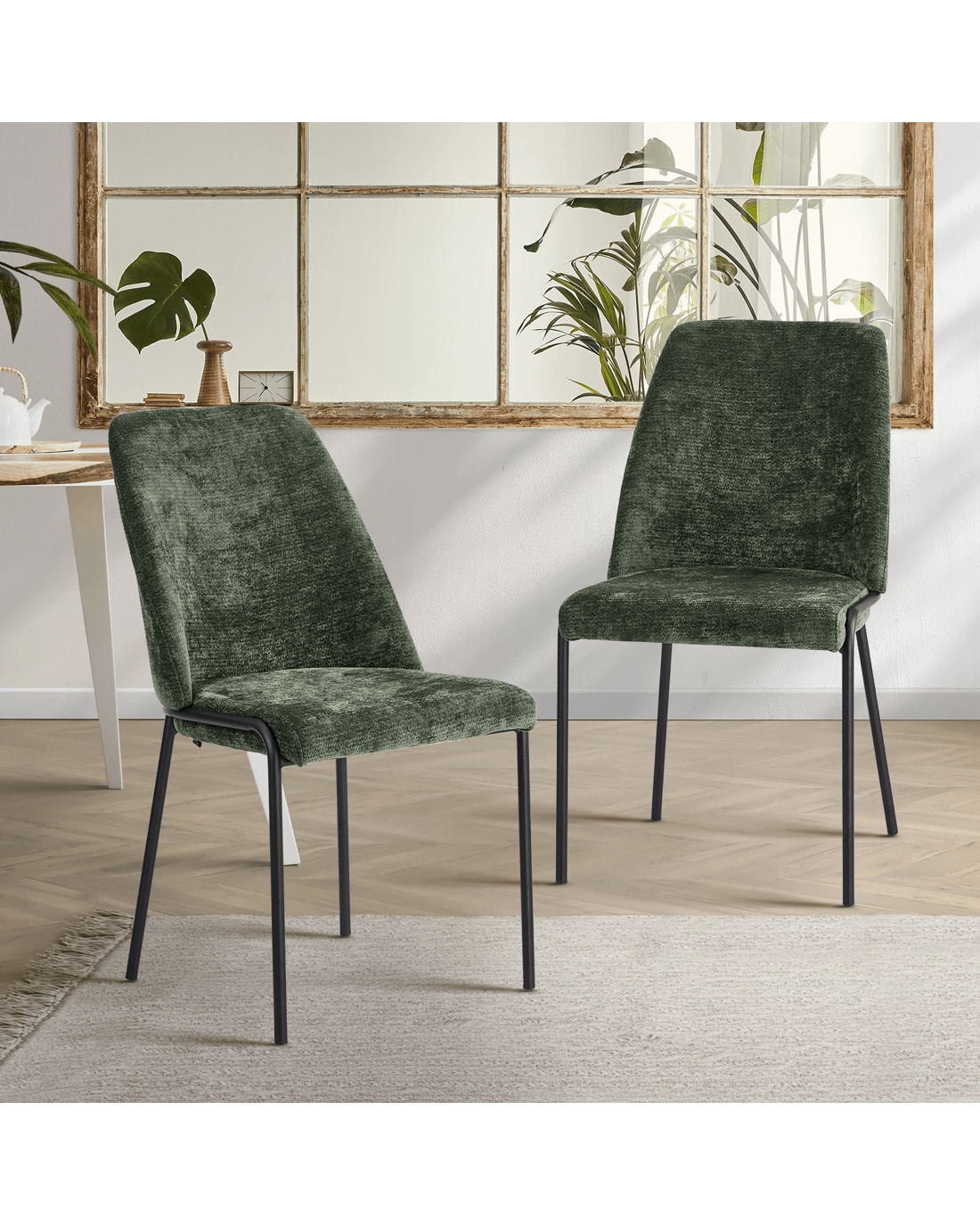 Oikiture Set of 2 Dining Chairs Chenille Fabric Kitchen Chair Padded Seat - Green