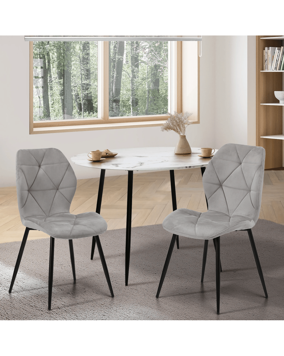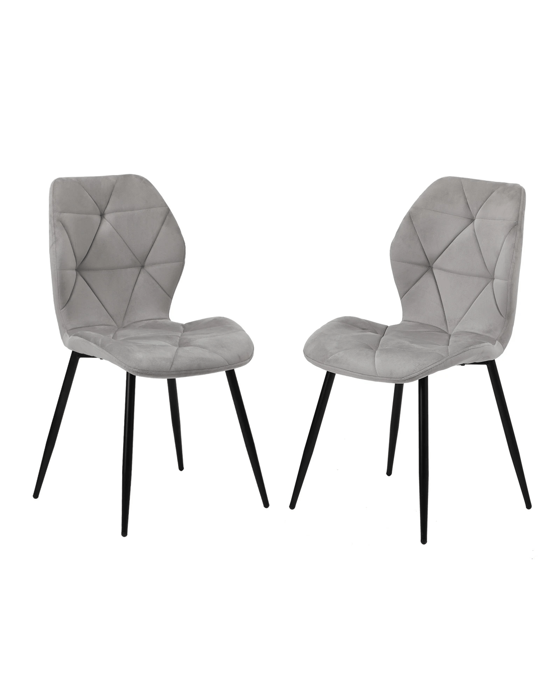 Oikiture Set of 2 Dining Chairs Kitchen Chair Padded Seat High Back Velvet - Grey