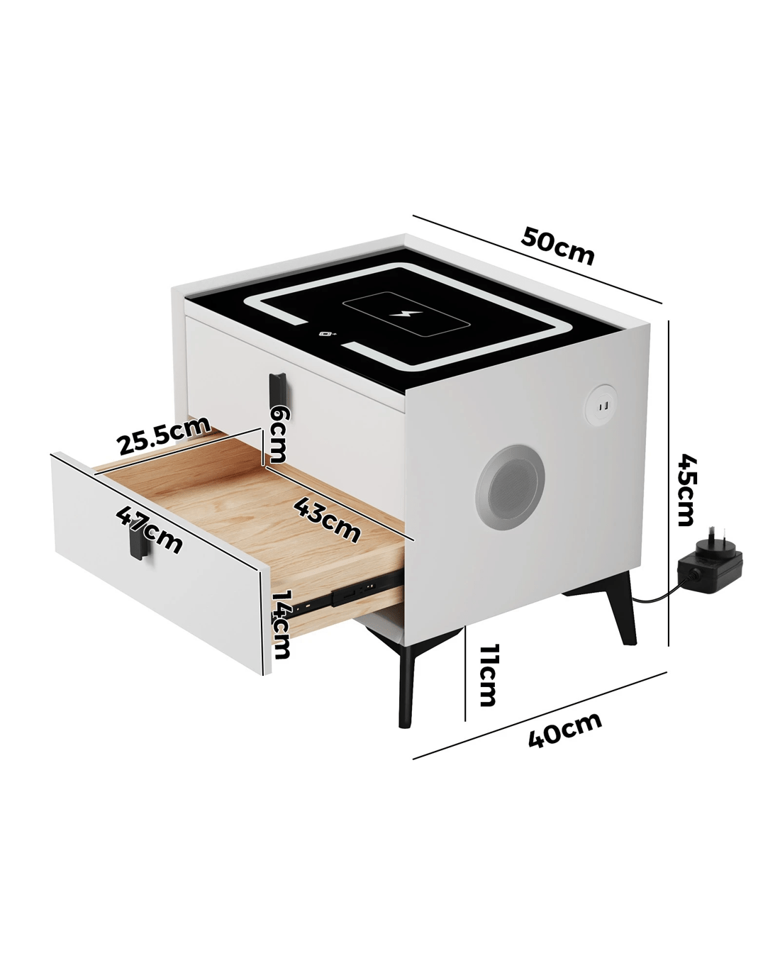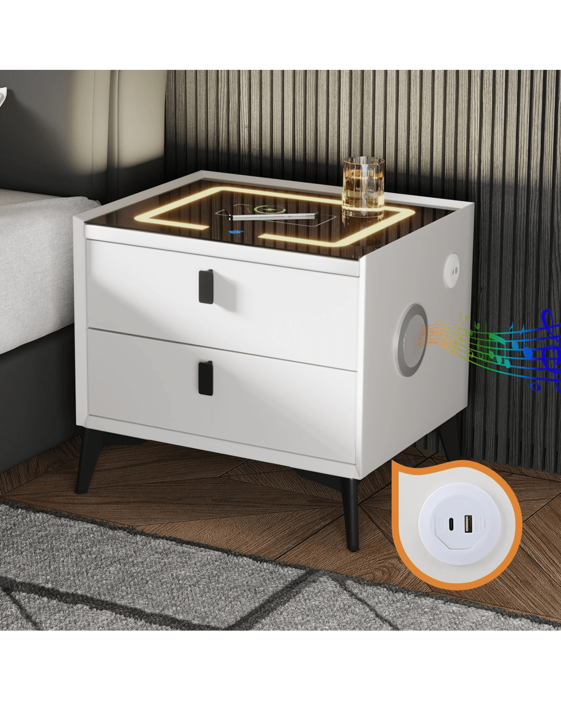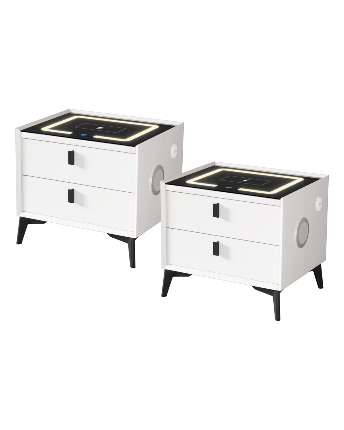 Oikiture Set of 2 Smart Bedside Tables LED Wireless Charging Nightstand - White