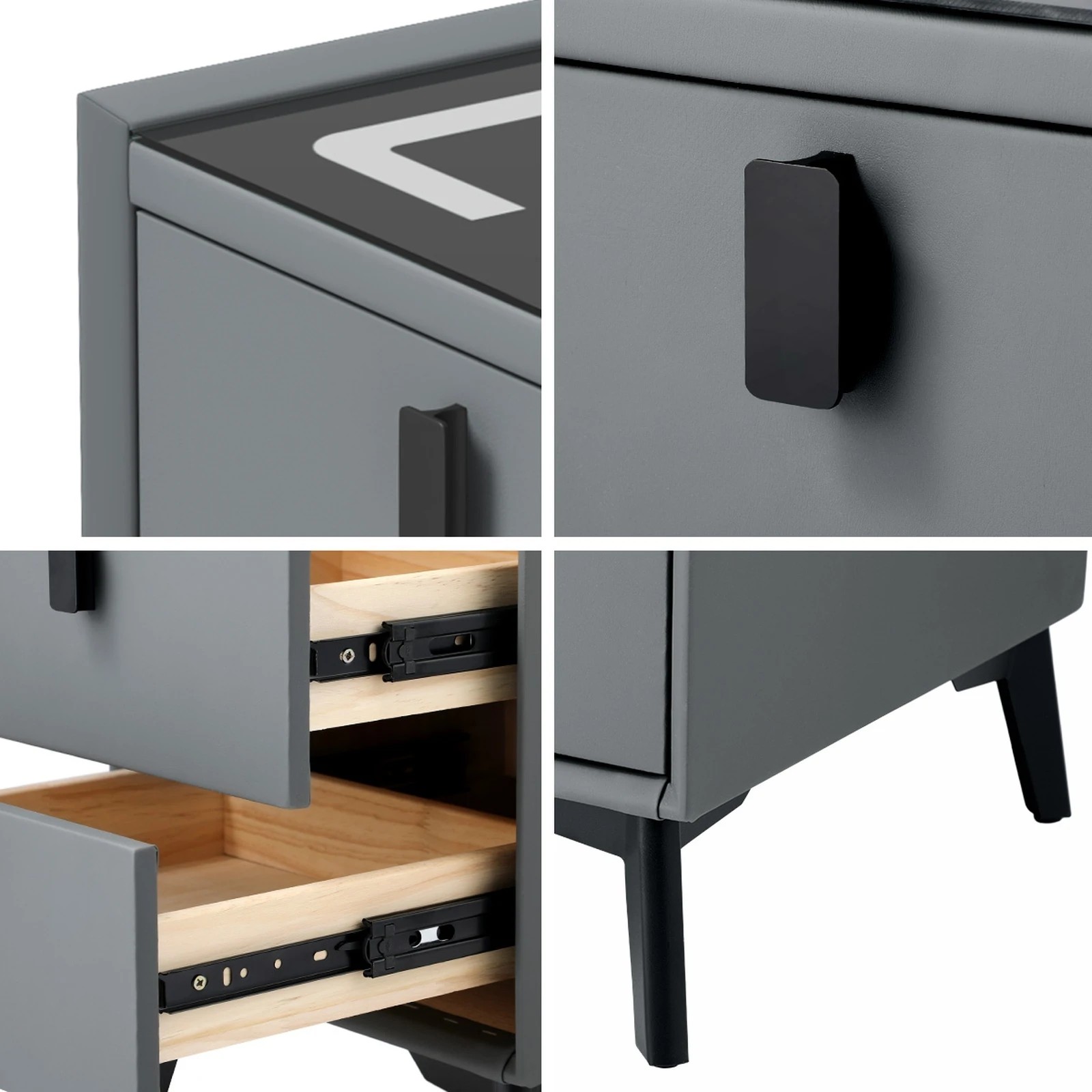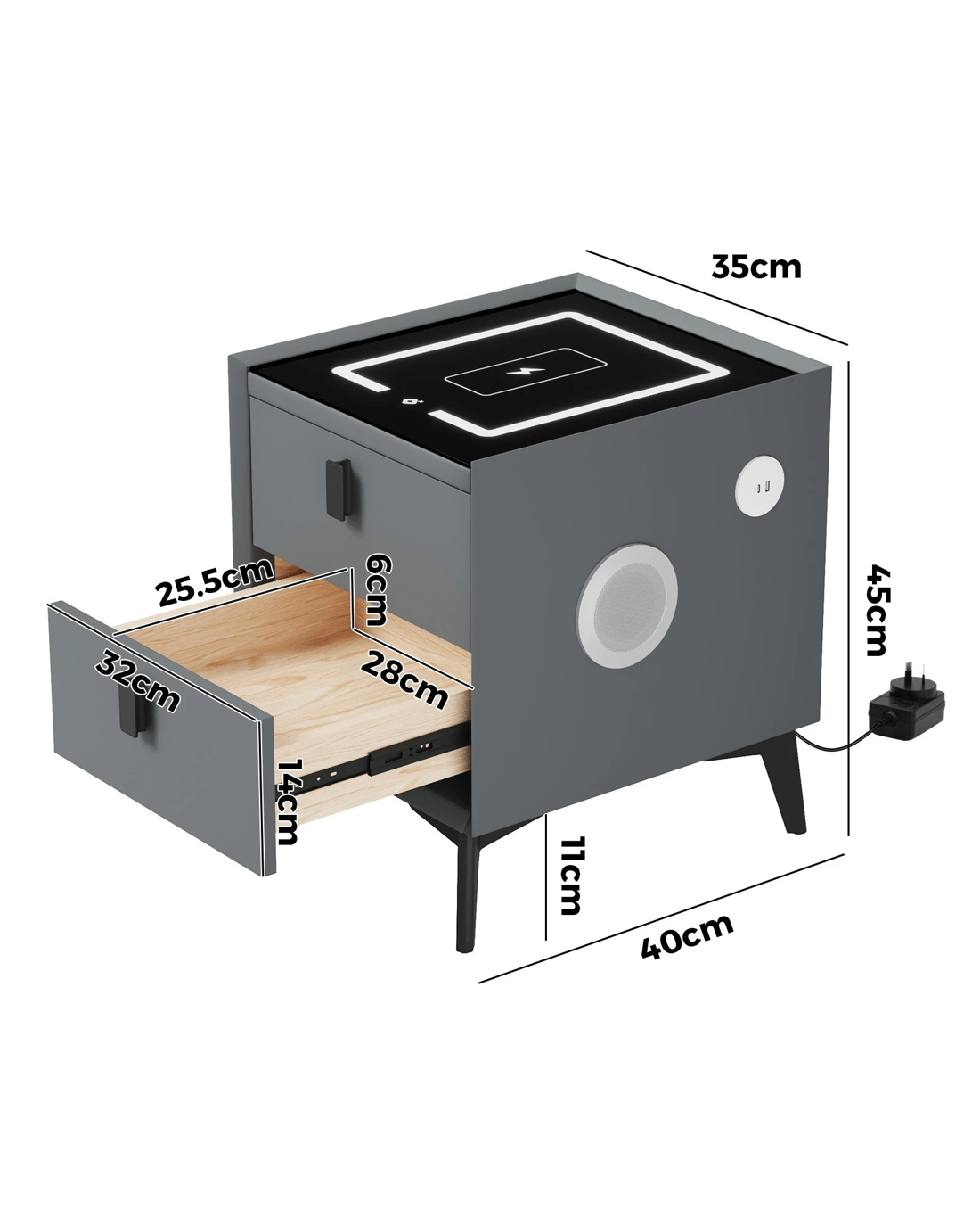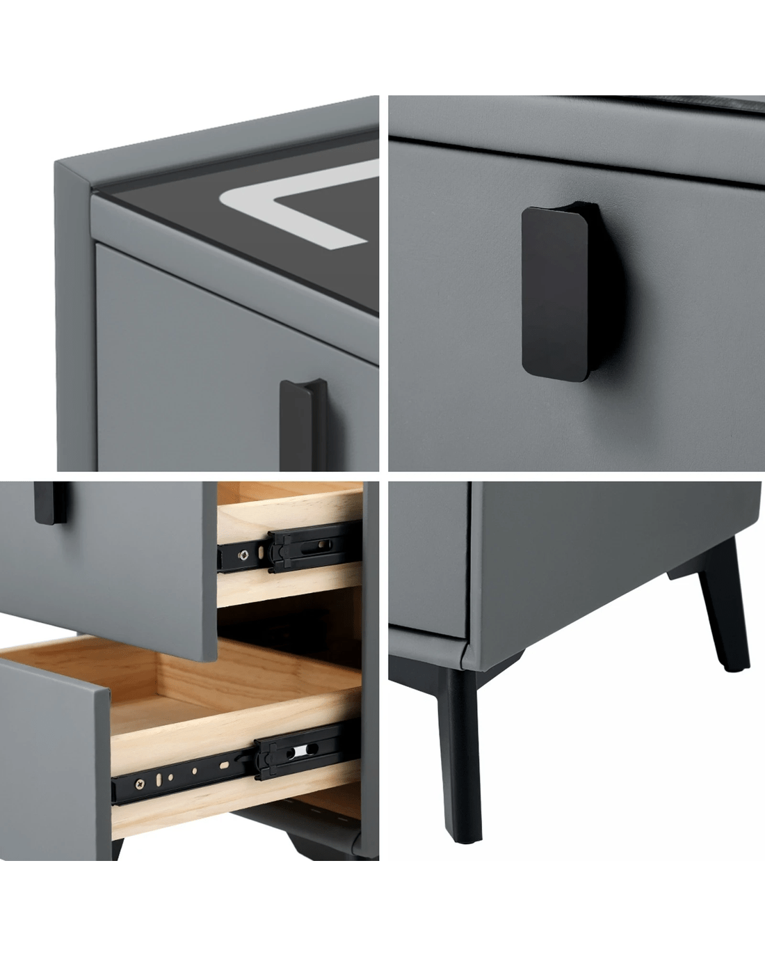 Oikiture Set of 2 Smart Bedside Tables Wireless Charging LED Nightstand Drawers - Grey