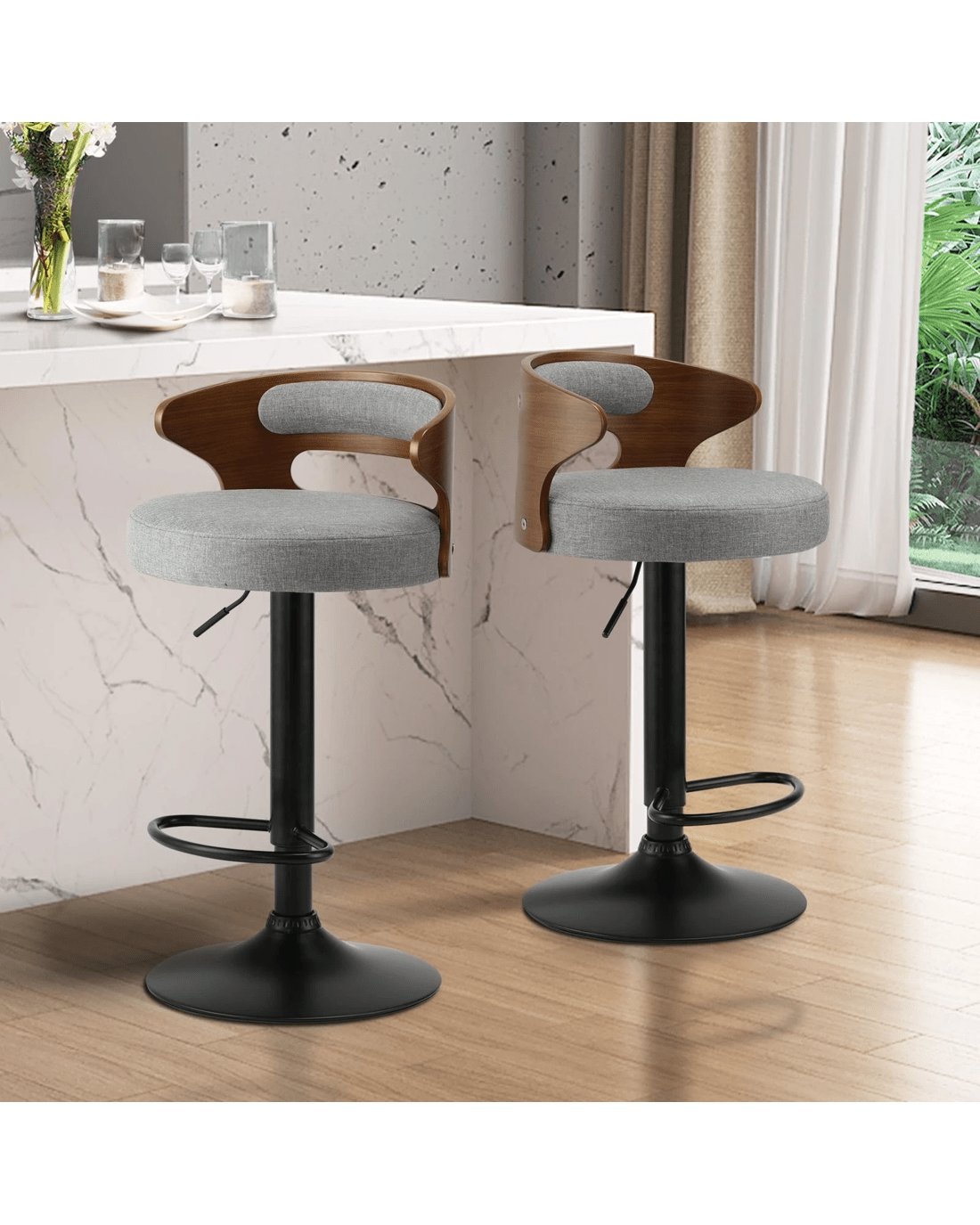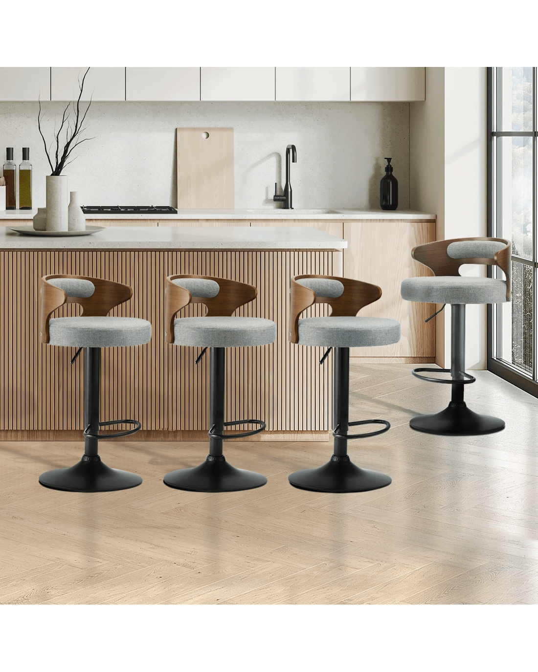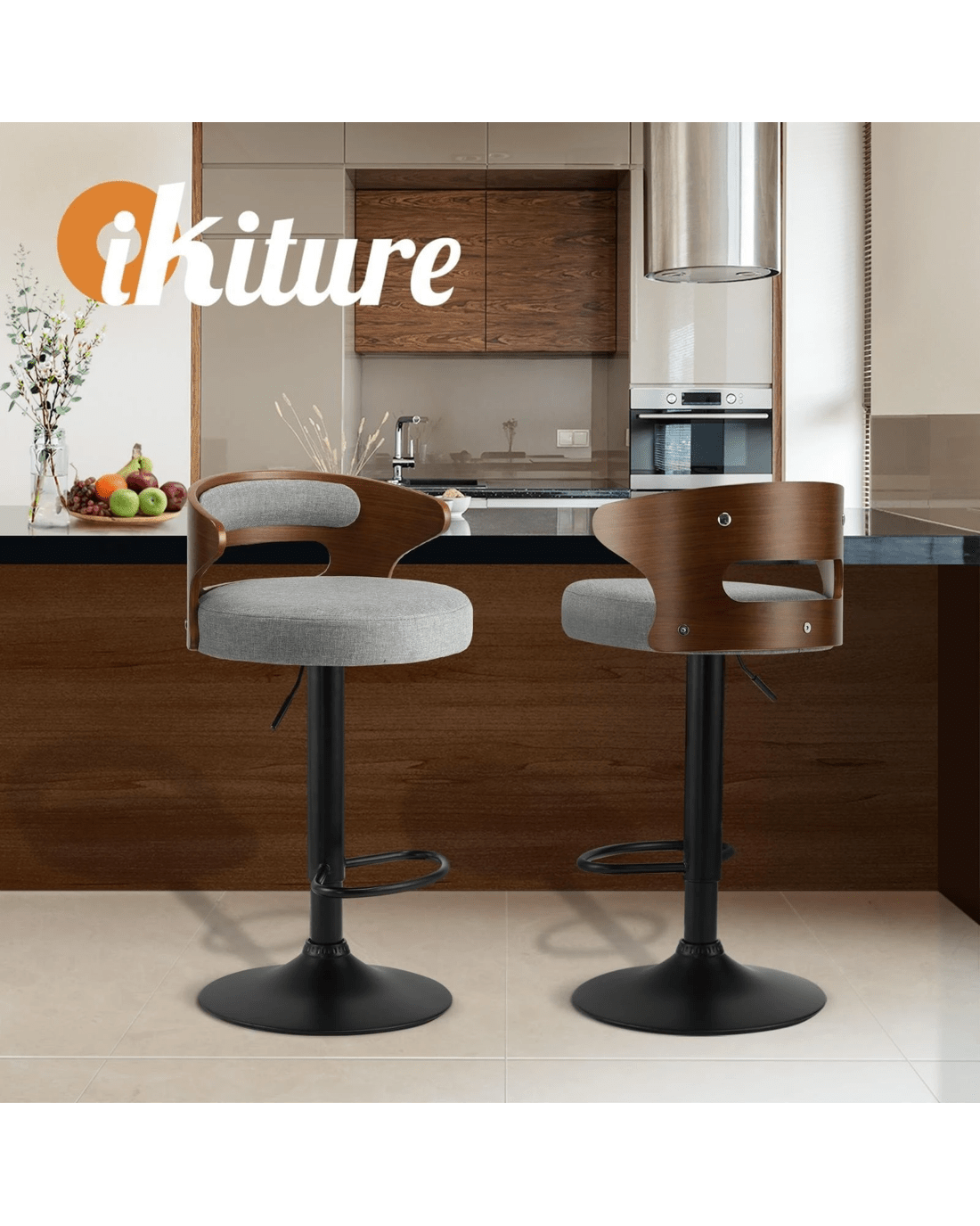 Sold by Kamprad's Oikos 1943Oikiture Set Of 4 Bar Stools Kitchen Gas Lift Swivel Chairs Stool Barstool - Grey