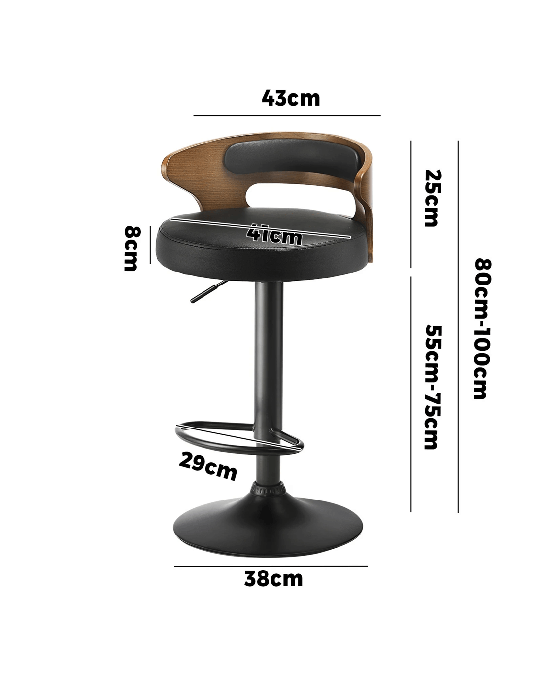 - Solid bentwood, Steel, PU Leather