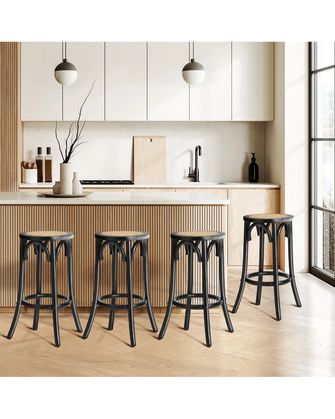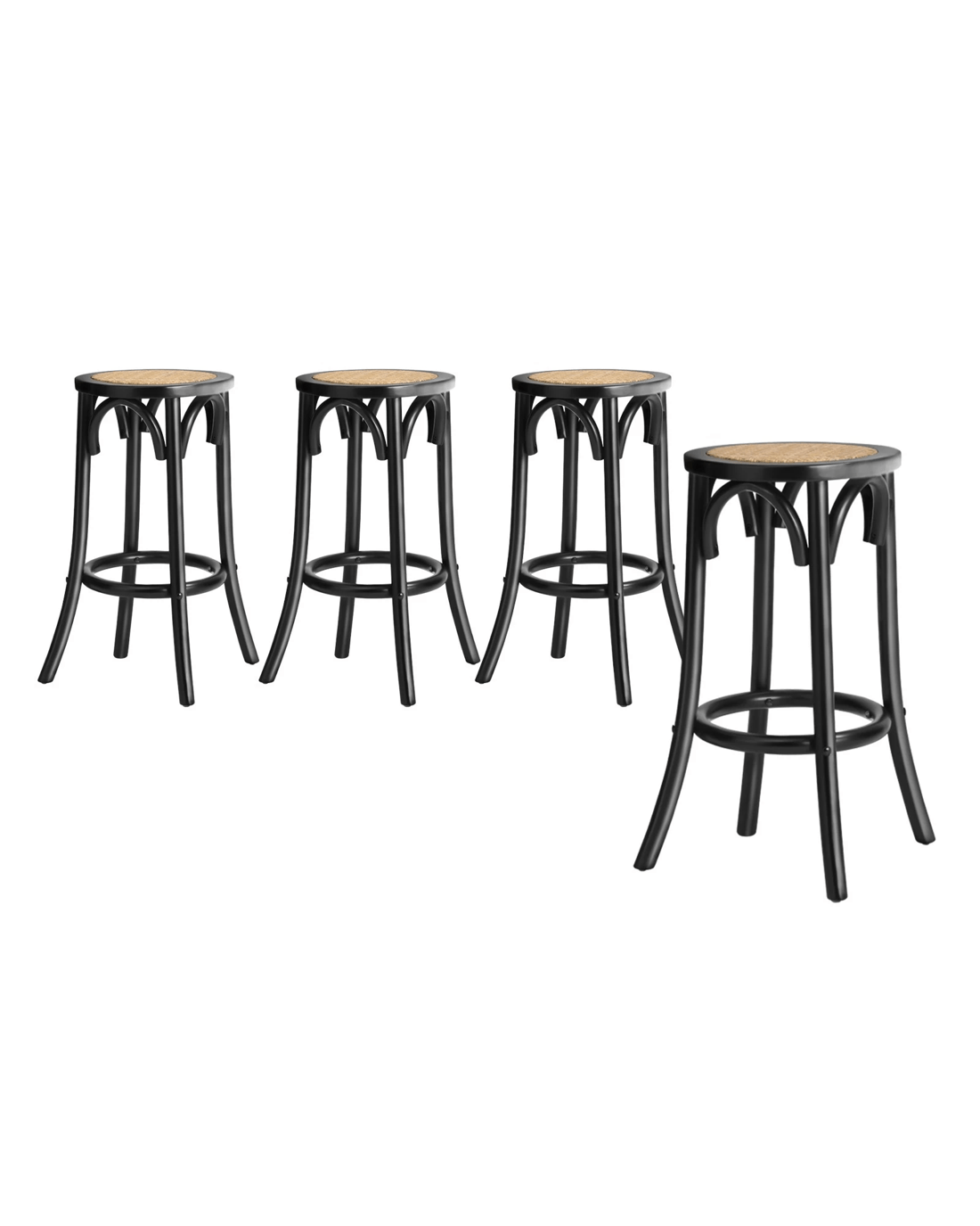 Oikiture Set Of 4 Bar Stools Kitchen Vintage Dining Chair Rattan Seat - Black