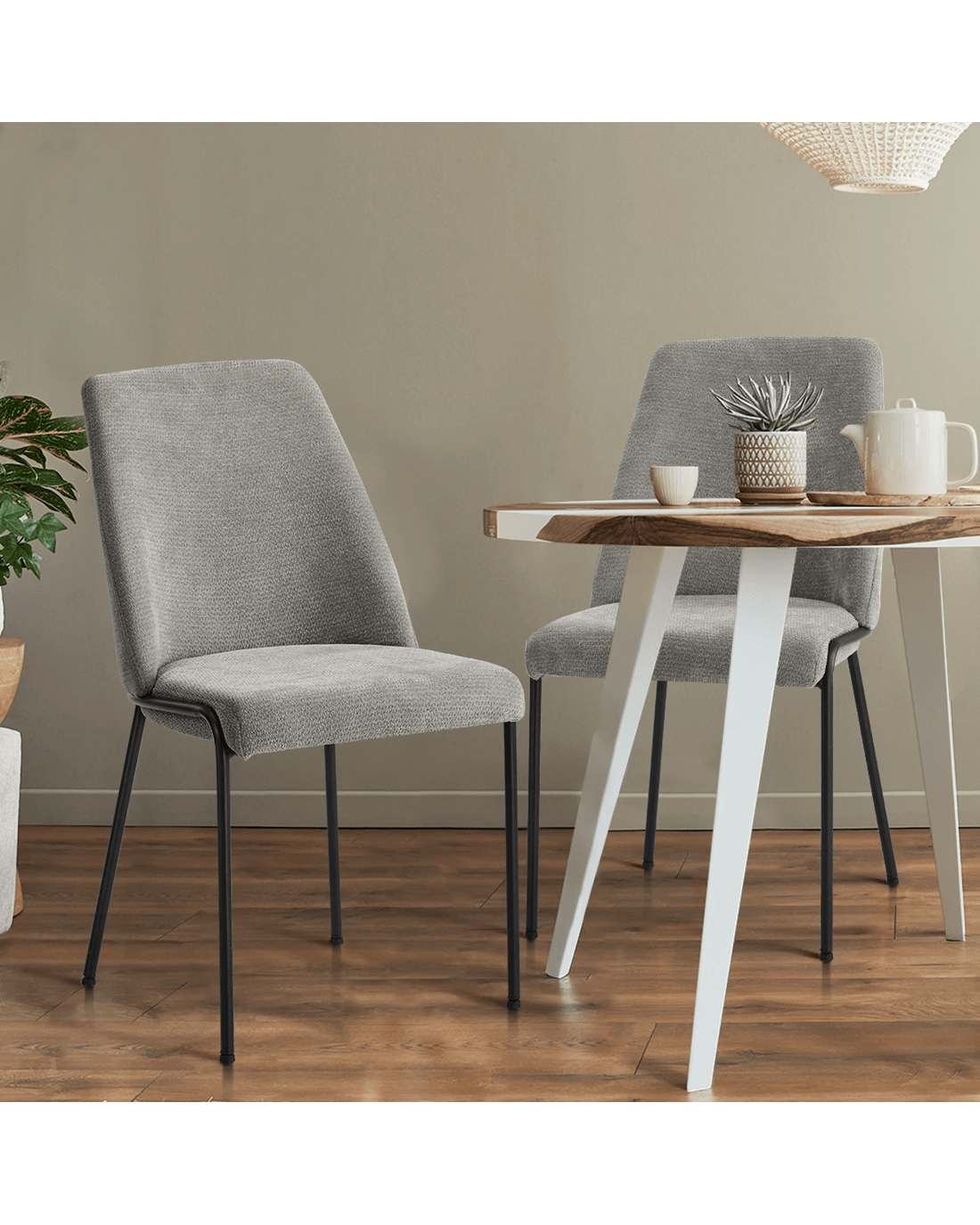 Sold by Kamprad's Oikos 1943Oikiture Set of 4 Dining Chairs Chenille Fabric Kitchen Chair Padded Seat - Grey