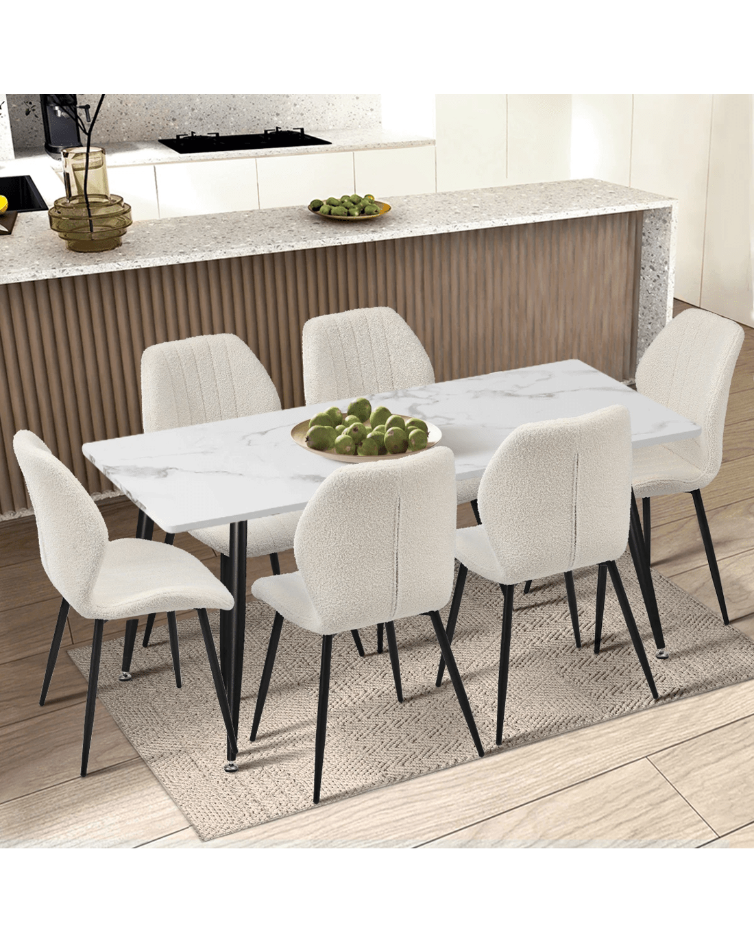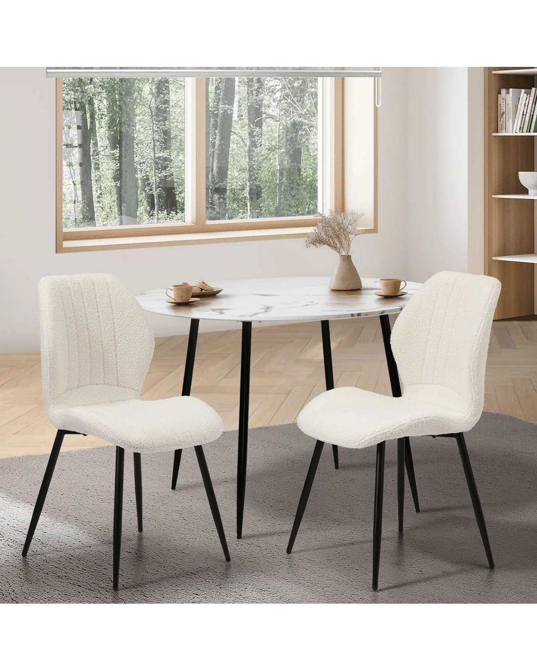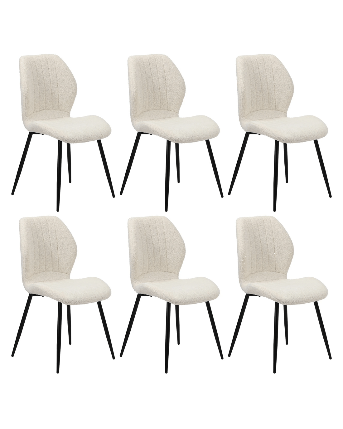 Oikiture Set Of 6 Dining Chairs Kitchen Lounge Padded Seat Armless Boucle - White
