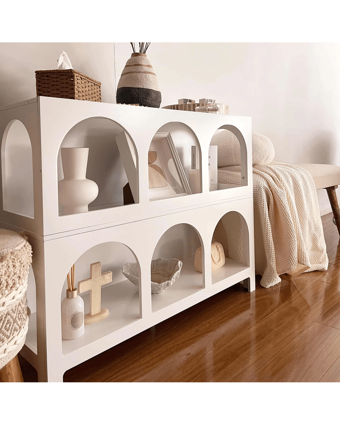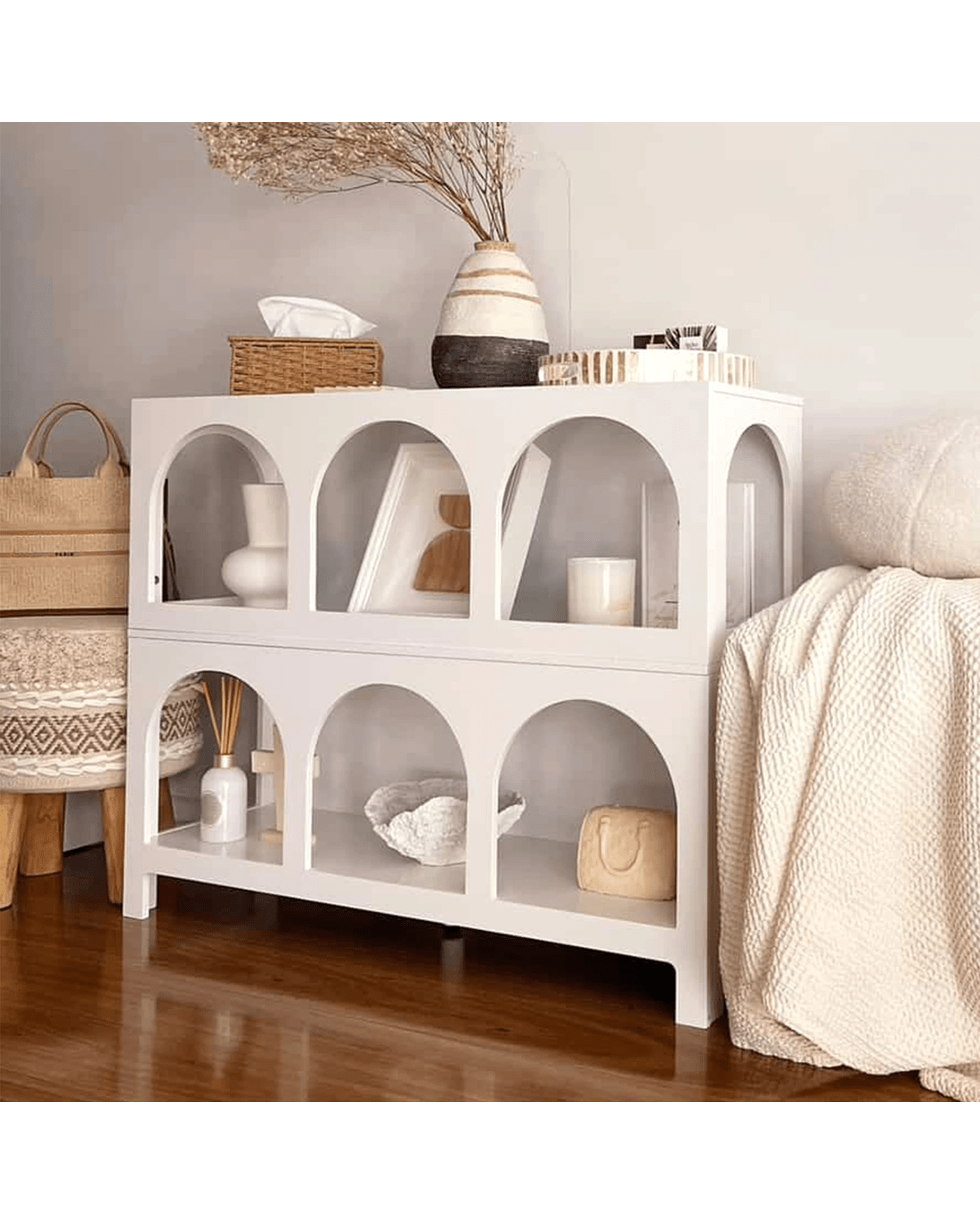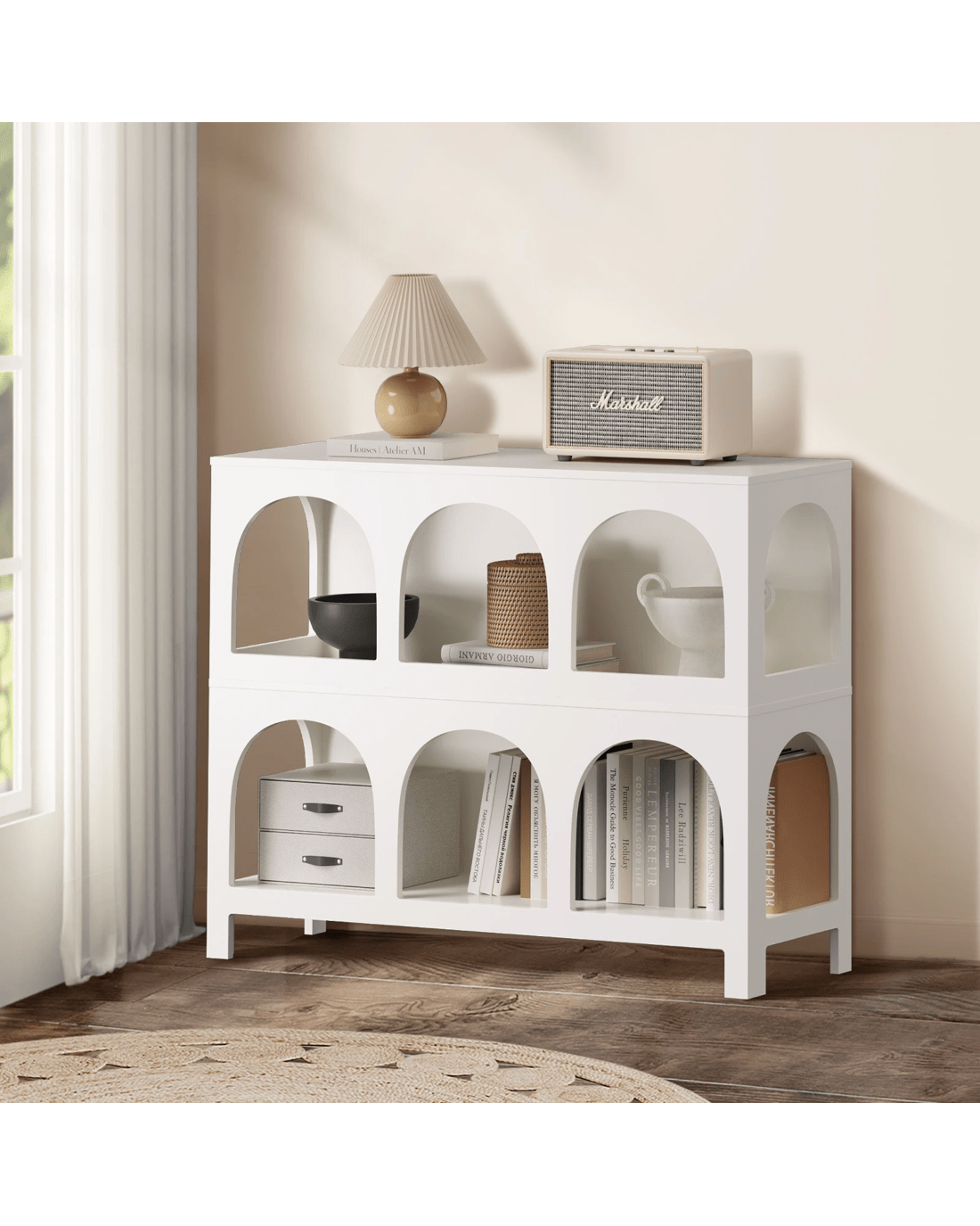 An enduring furniture piece, the Oikiture Display Shelf combines trustworthy functionality with practical aesthetics to make it a fitting choice within your home d茅cor. With an art deco-inspired design structure of arched openings, the display shelf provides 2 tiers of open display shelves to showcase a variety of your favourite items. From books to photographs to mementos and greenery, the display shelf is also highly versatile for use in the living room, bedroom or study to complement your interior requirements.