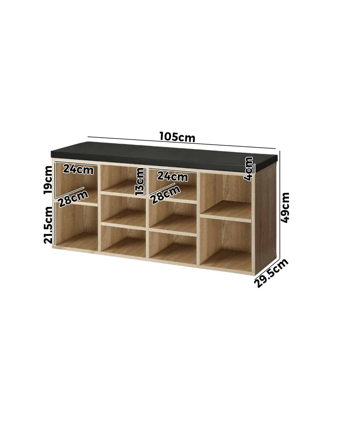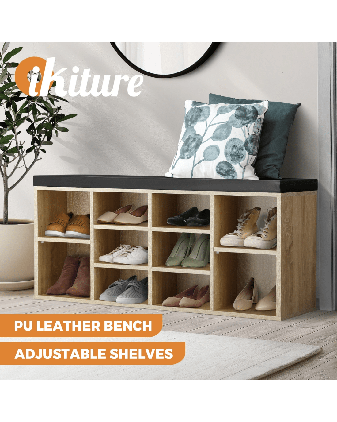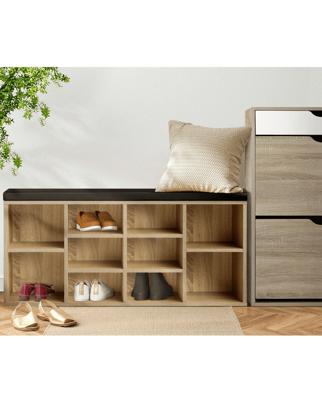 Oikiture Shoe Cabinet Bench Shoe Storage Rack Pu Padded Seat Organiser Cupboard - Multi