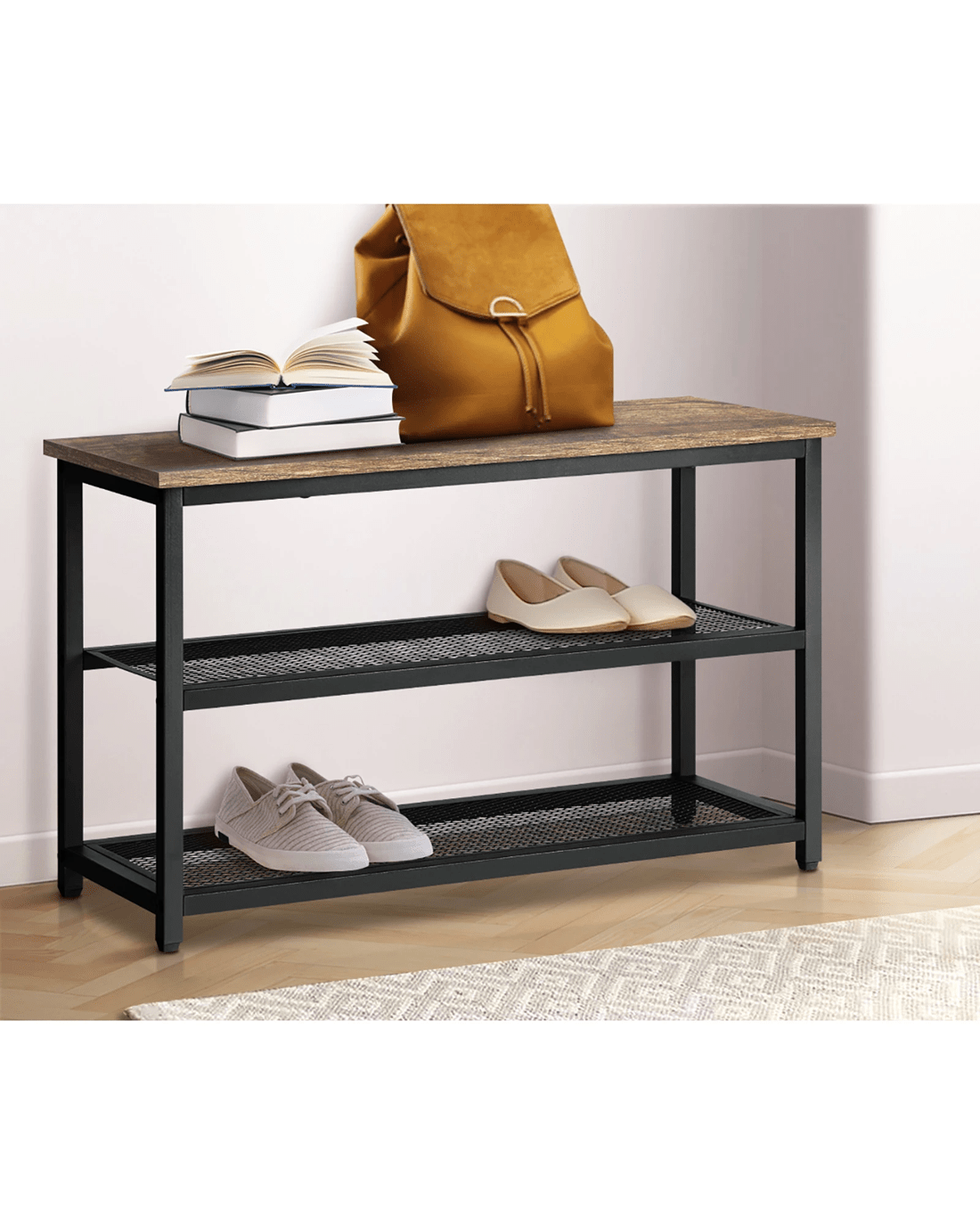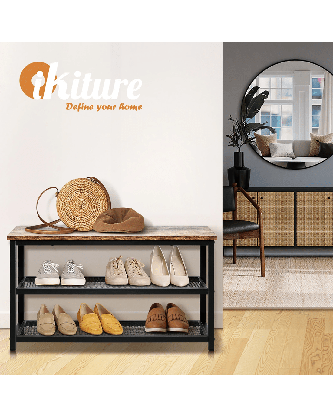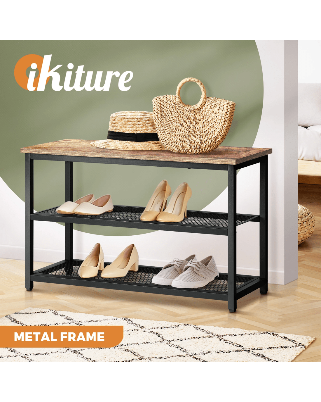 Oikiture Shoe Cabinet Bench Shoes Rack Shelf Storage 3-tier Industrial Furniture - Multi