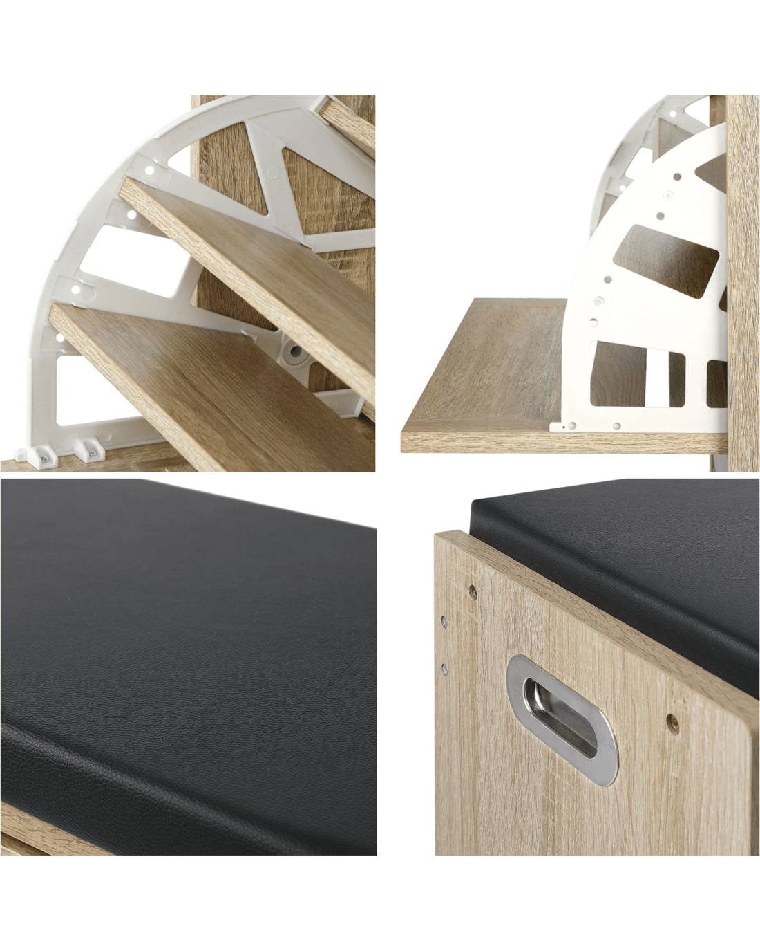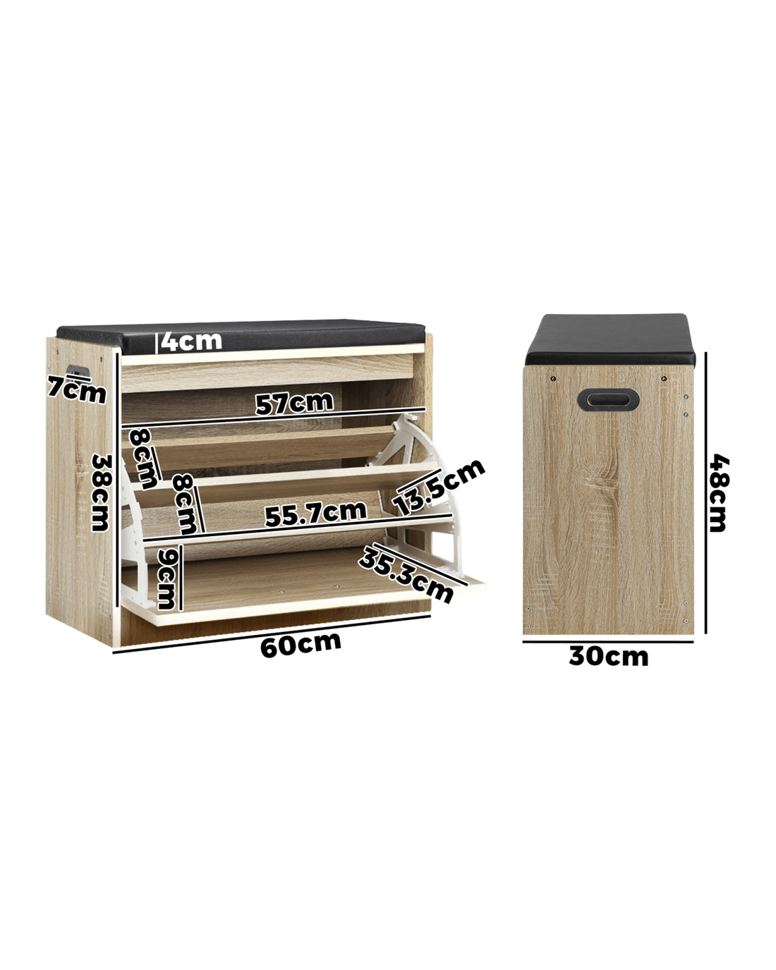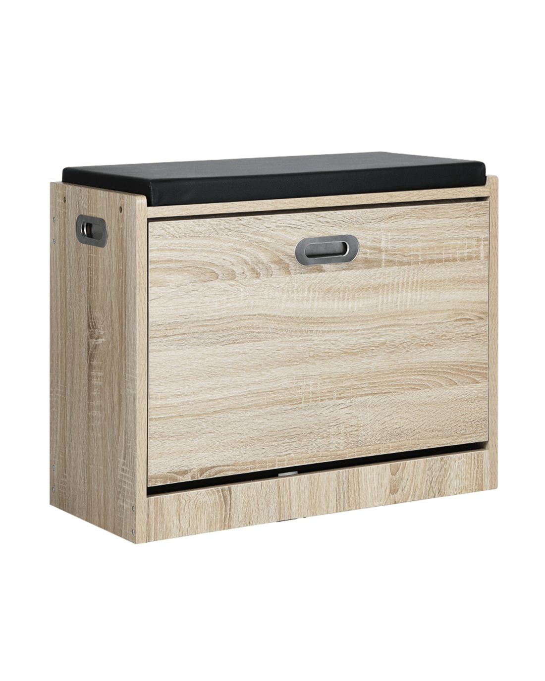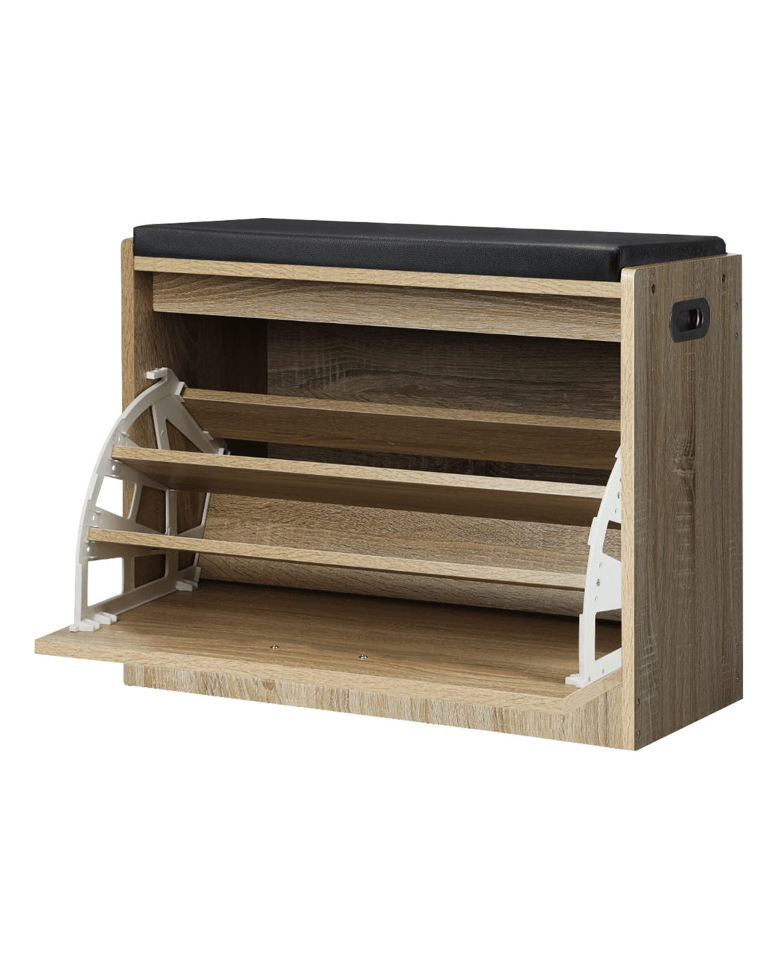 Oikiture Shoe Cabinet Bench Shoes Storage Organiser Cupboard Wooden 15 Pairs - Natural