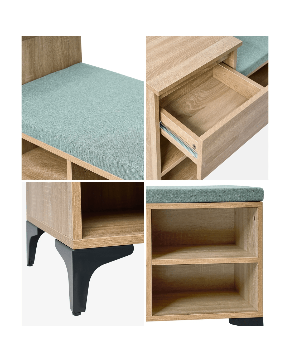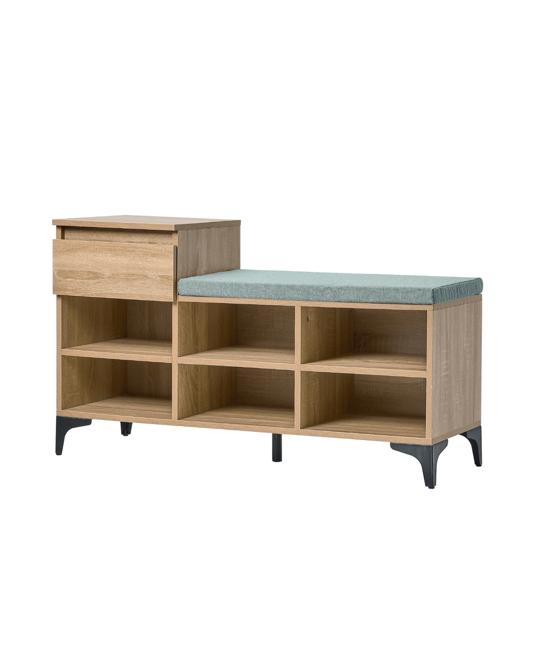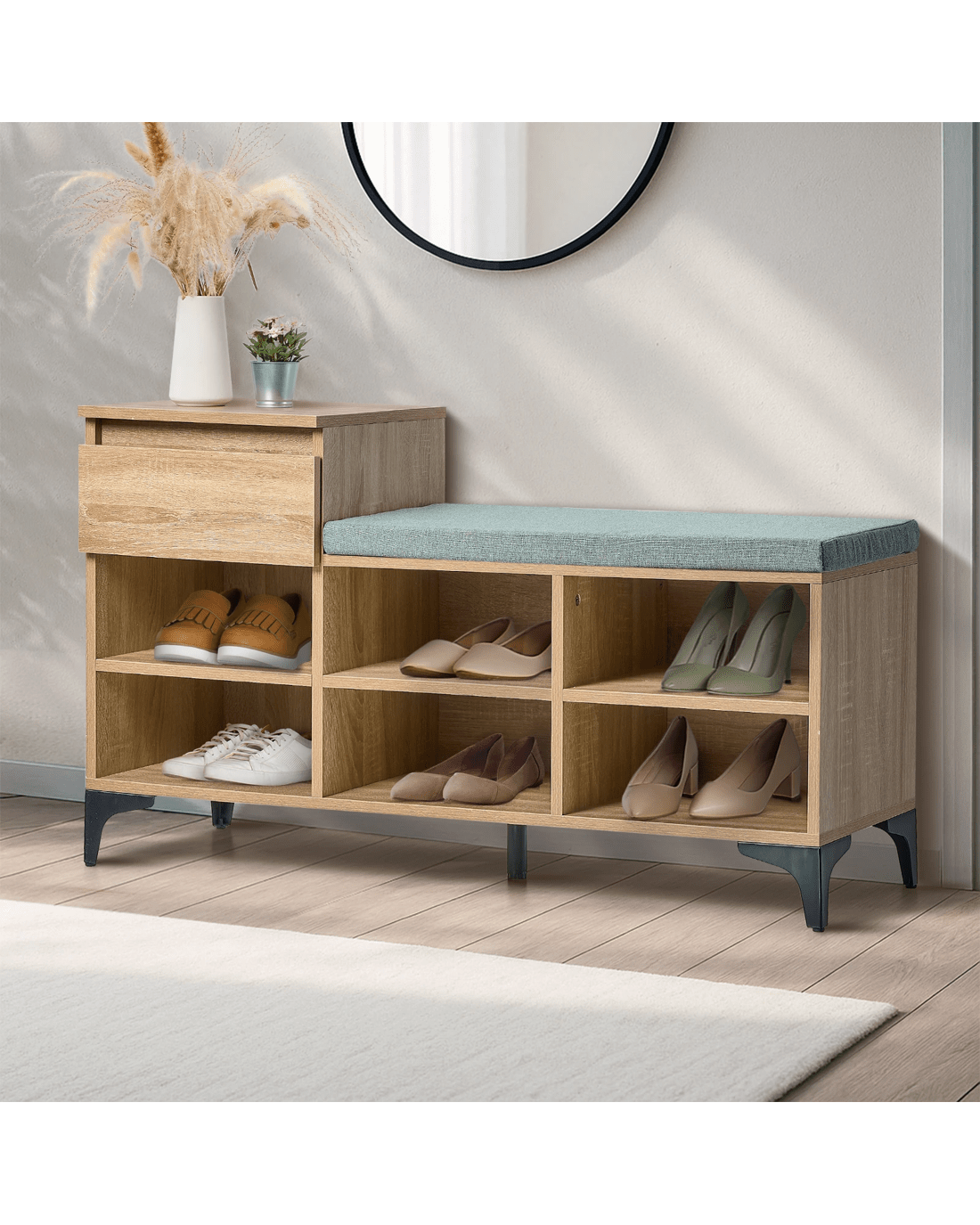 Conveniently integrated with the shoe storage cabinet is a cavernous top drawer that offers more storage for household essentials and a generous top to showcase your treasure mementos, collectibles or even potted plants to add more natural vibes to the entire ensemble. And when putting on your footwear, the comfortable bench will certainly make things a lot less clumsier standing on one foot.