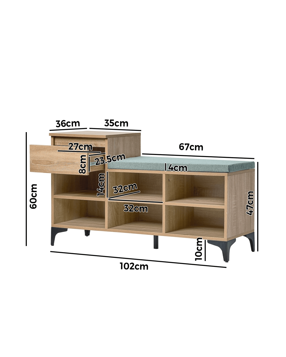 Sold by Kamprad's Oikos 1943Oikiture Shoe Cabinet Bench Storage Organiser Drawer 6 Shelves Polyester Seat - Multi
